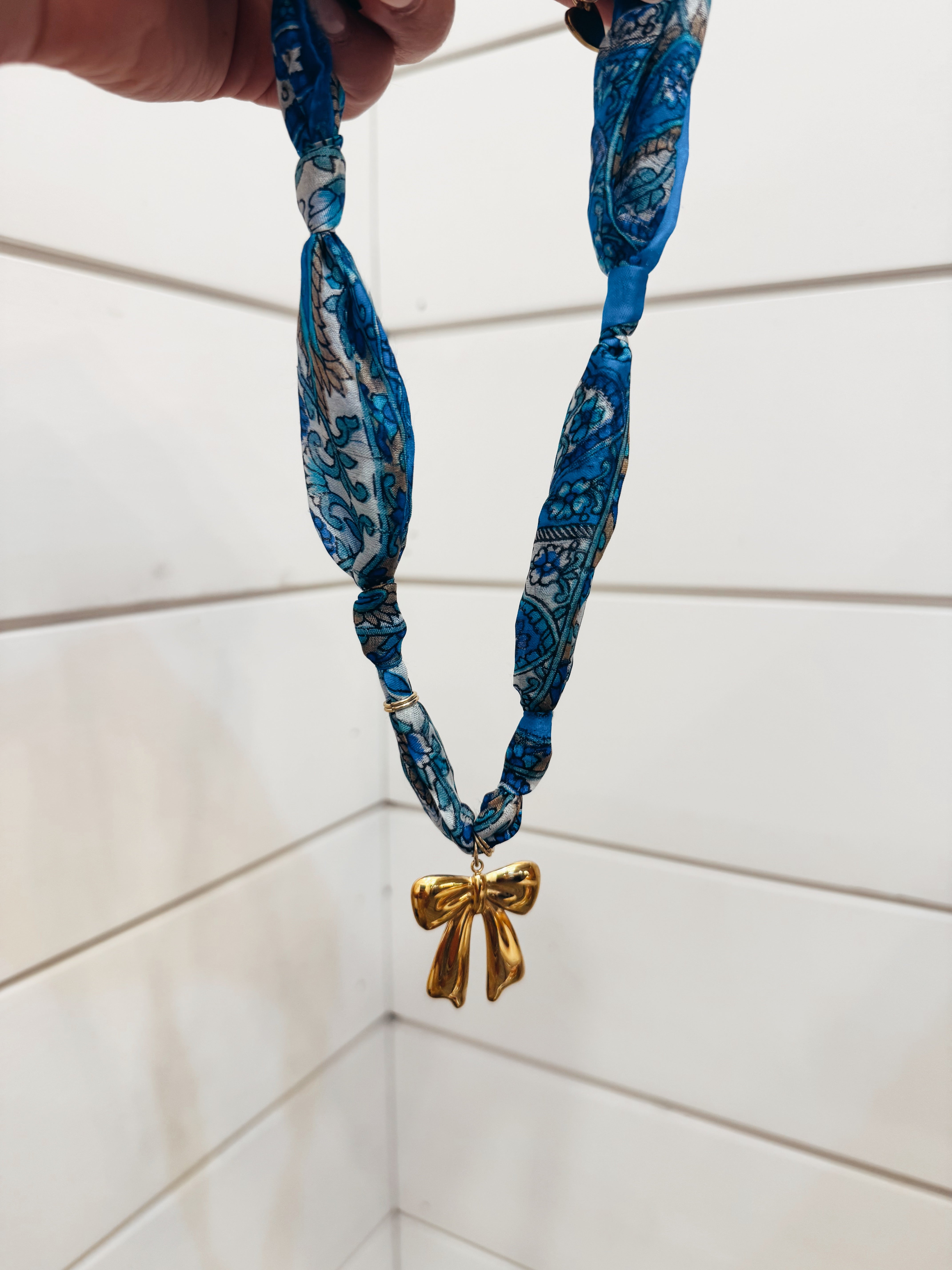 Peacock Scarf & Bow Necklace