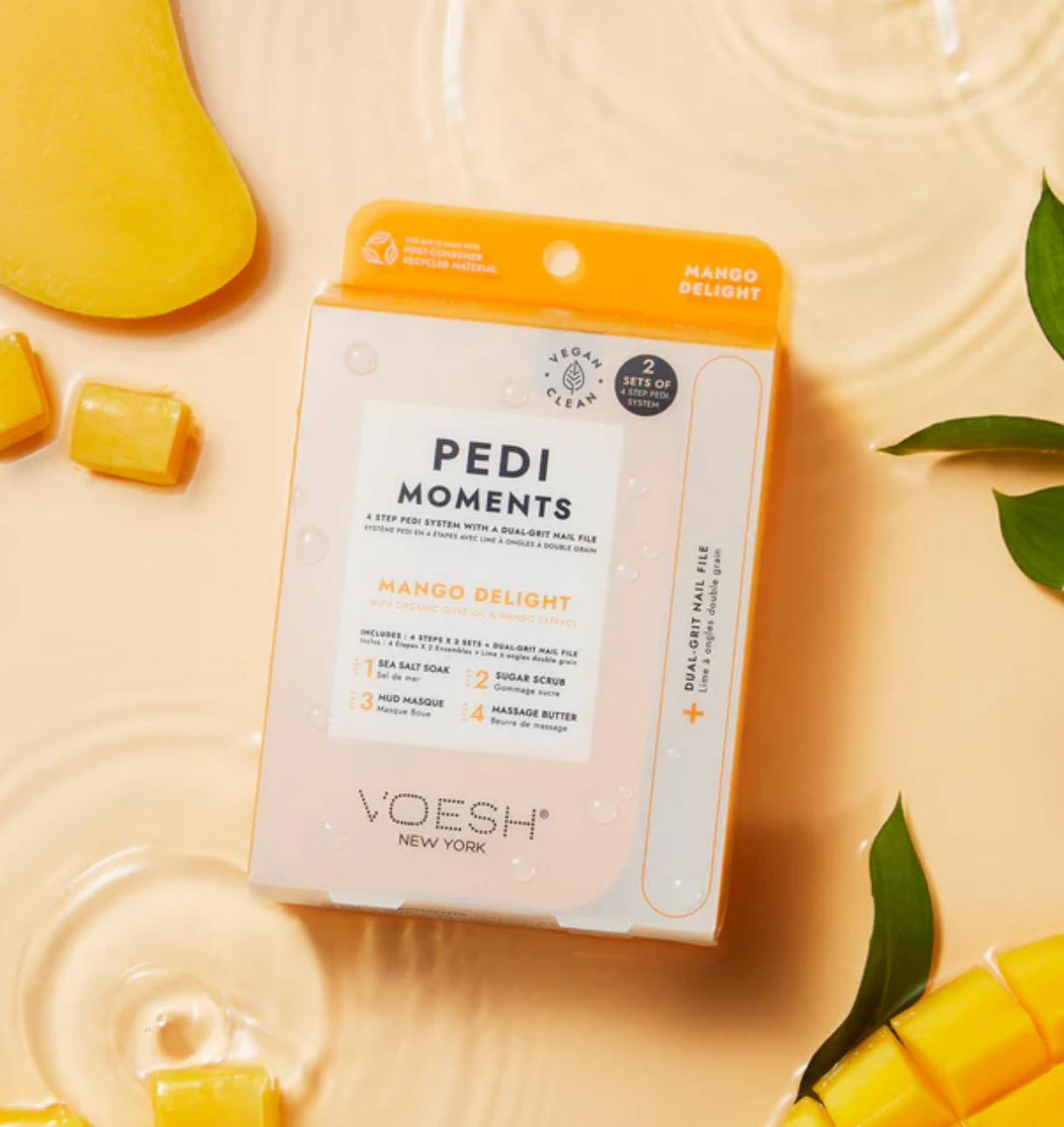 Cherish each self-care moment with Pedi Moments, our newest pedicure kit. Pedi Moments includes 2 sets of Mango Delight Pedi in a Box 4 Step and a dual grit Zebra Nail File, so you have everything you need to give yourself a nourishing, soothing pedi from the comfort of your own home.