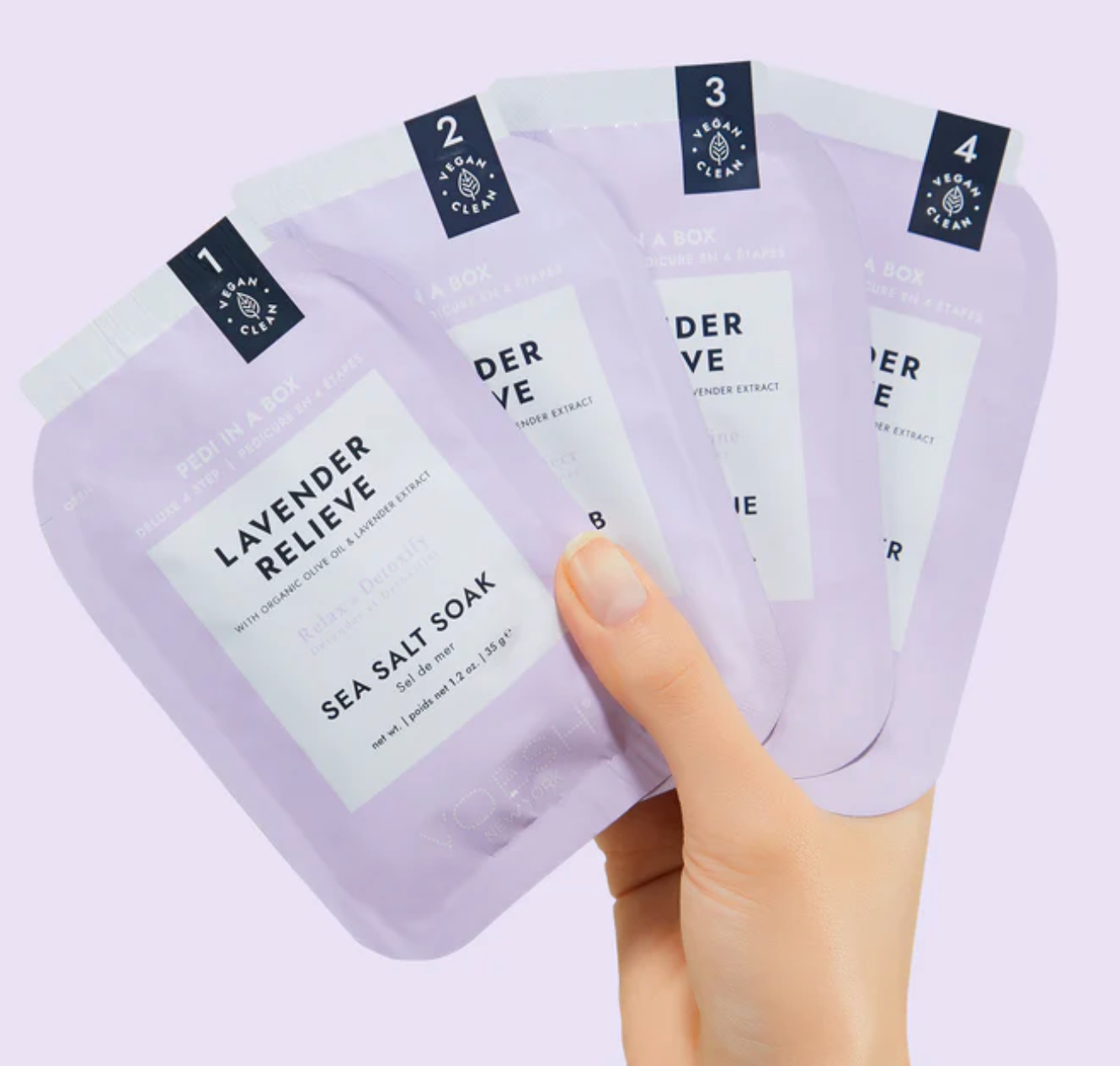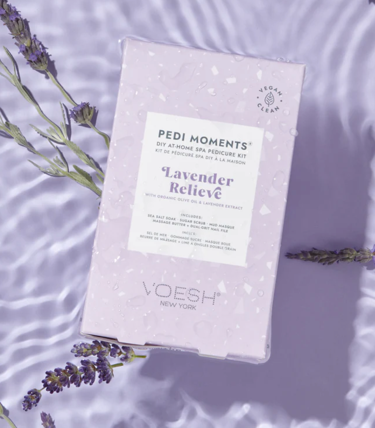 Experience pure indulgence with Pedi Moments Lavender Relieve: the luxurious pedicure kit that brings the spa to your doorstep. With one lavender-scented pedi kit and a dual-grit nail file, this kit has everything you need for a nourishing, soothing, and salon-worthy pedi at home.