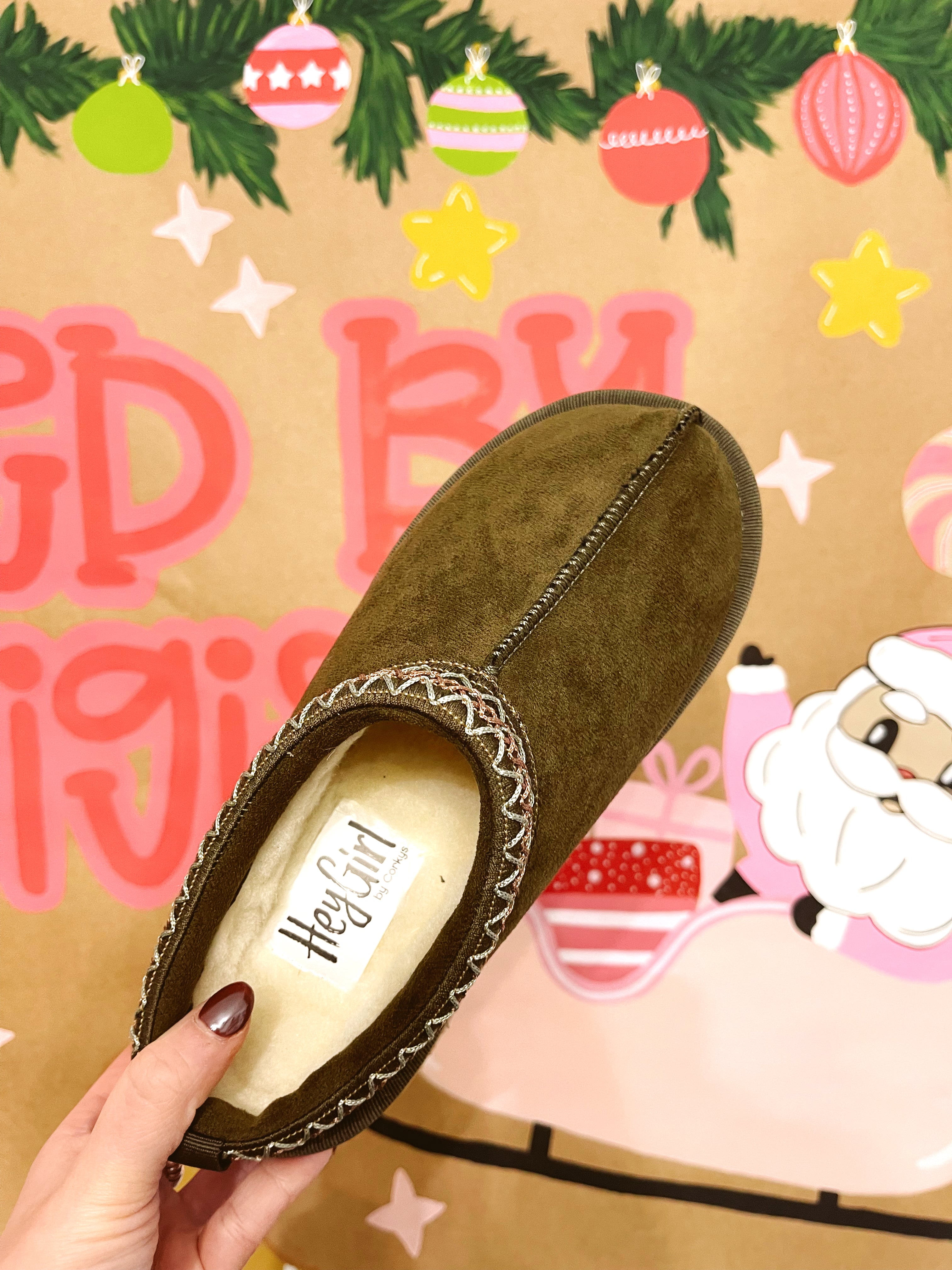 Pillow Talk Slipper - Khaki Faux Suede - FINAL SALE