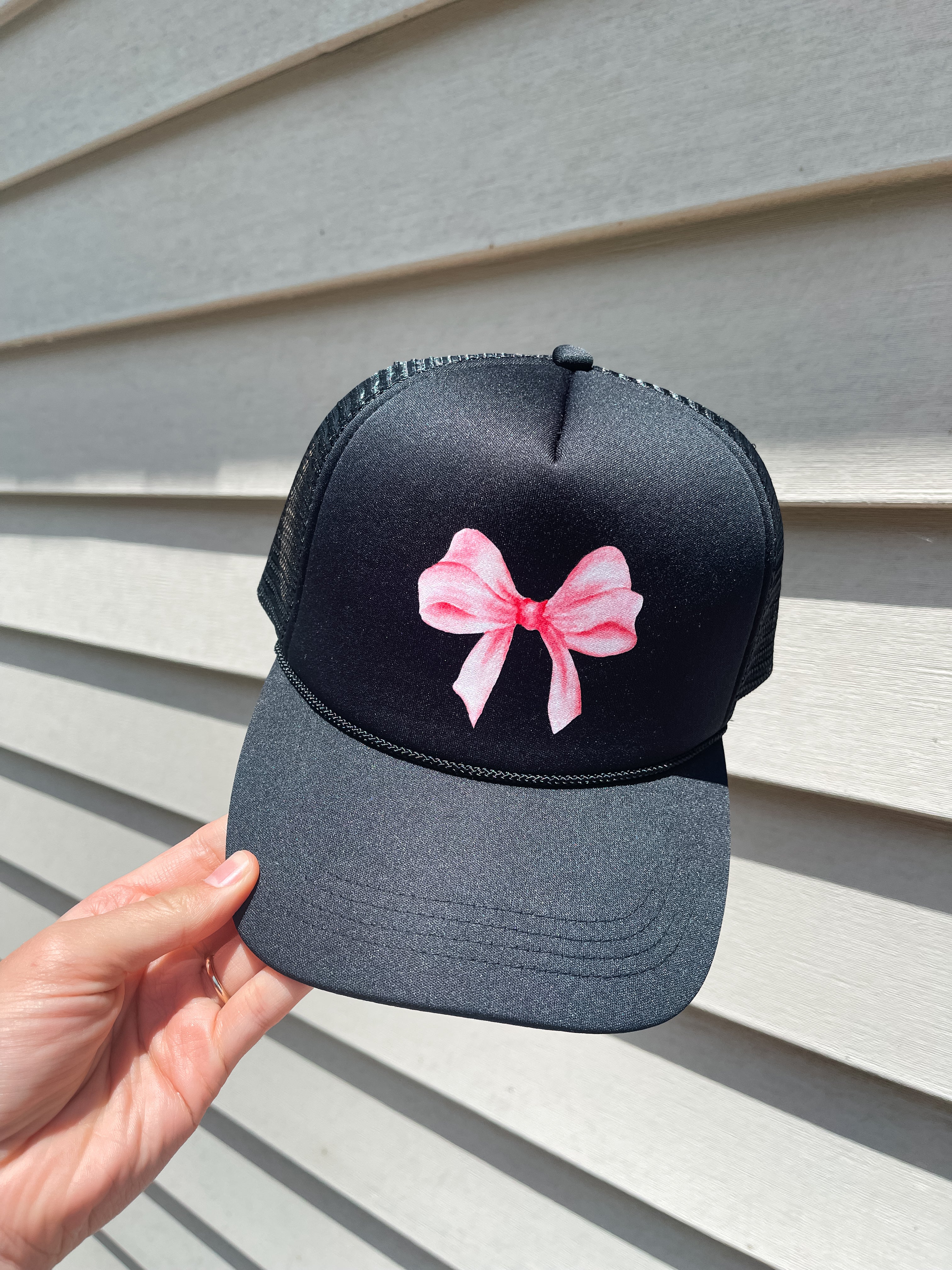 Pink Bow Trucker Hat- Black