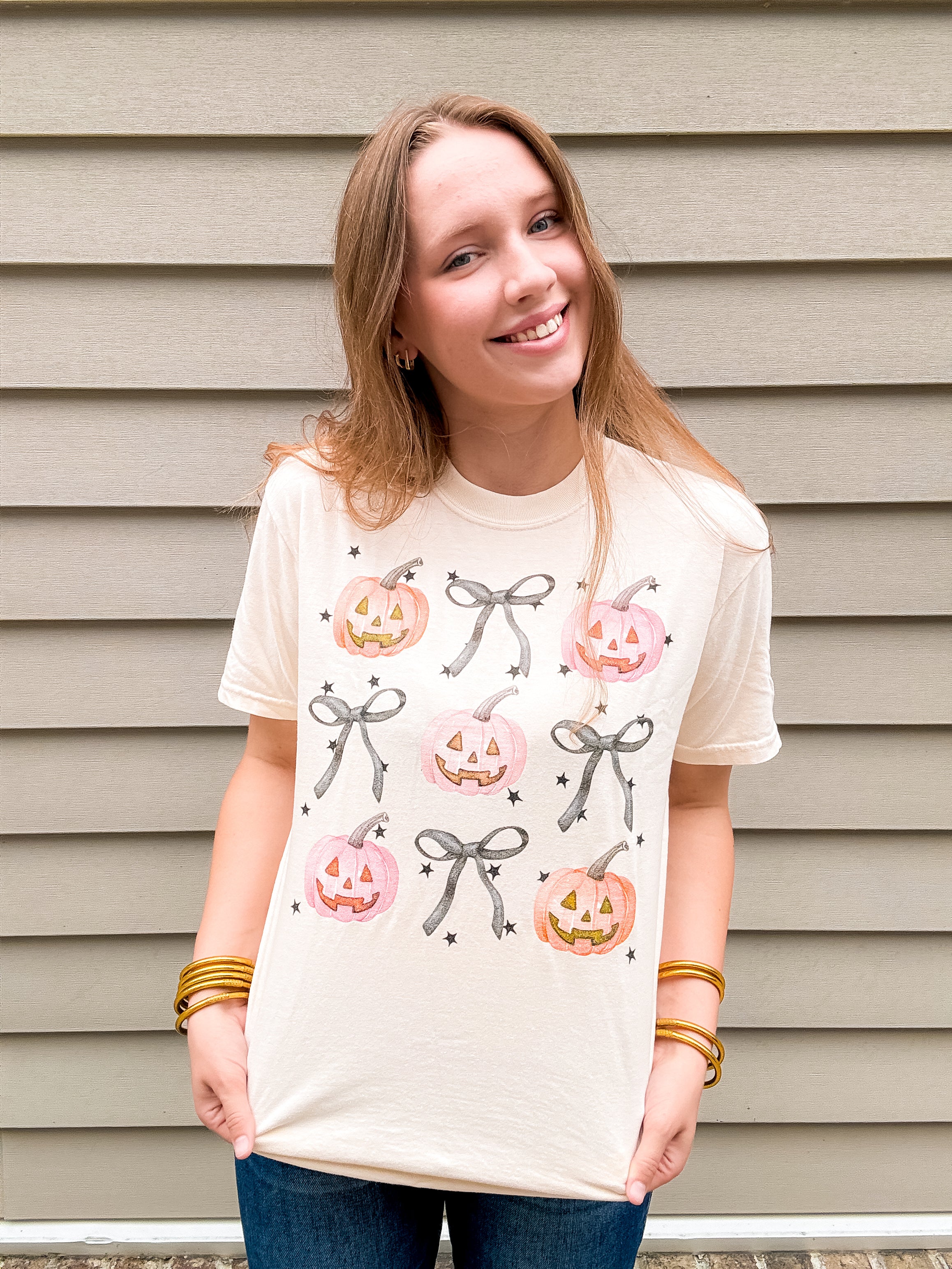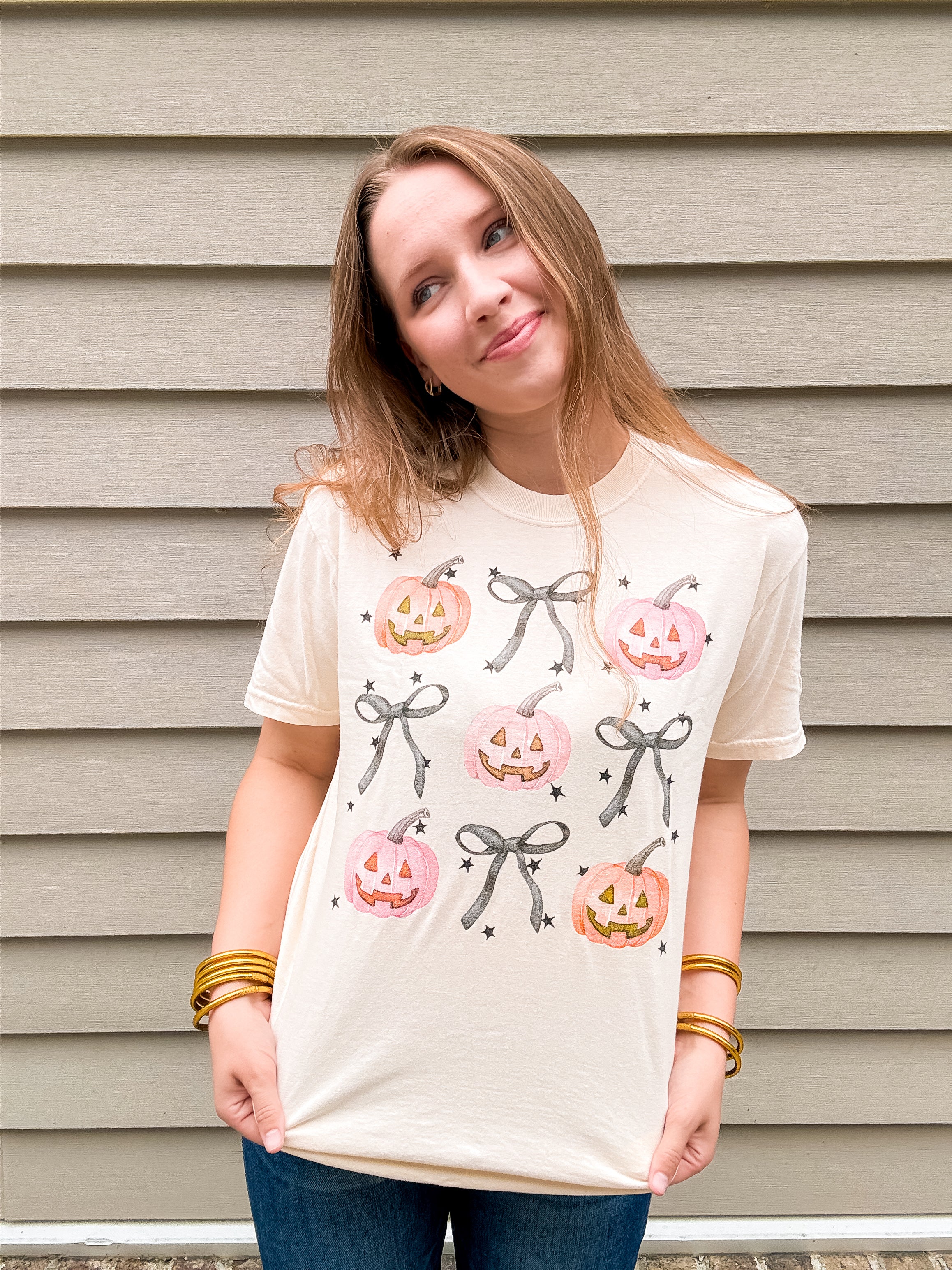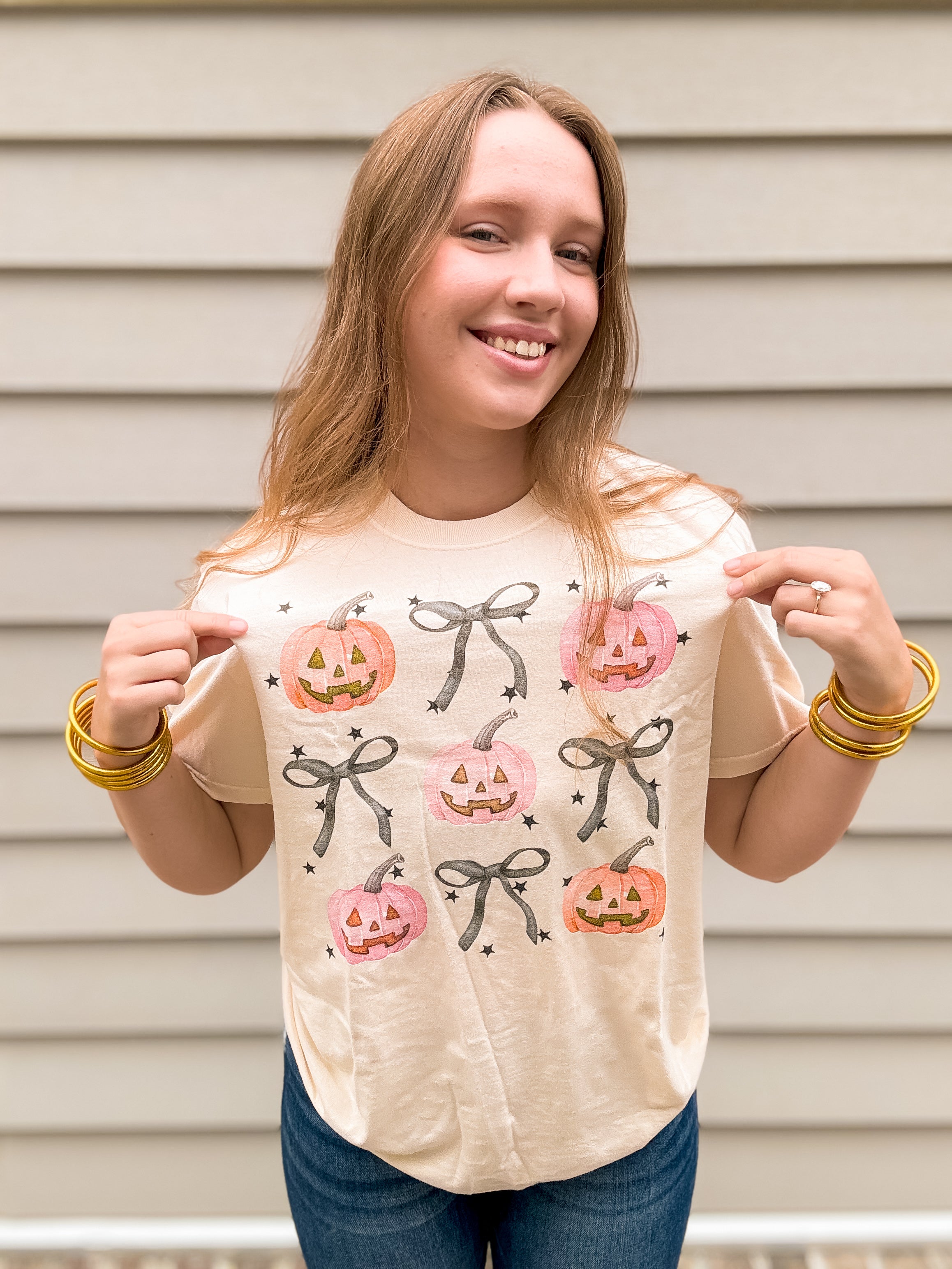 Pink Pumpkins & Bows Tee - Ivory - Final Sale