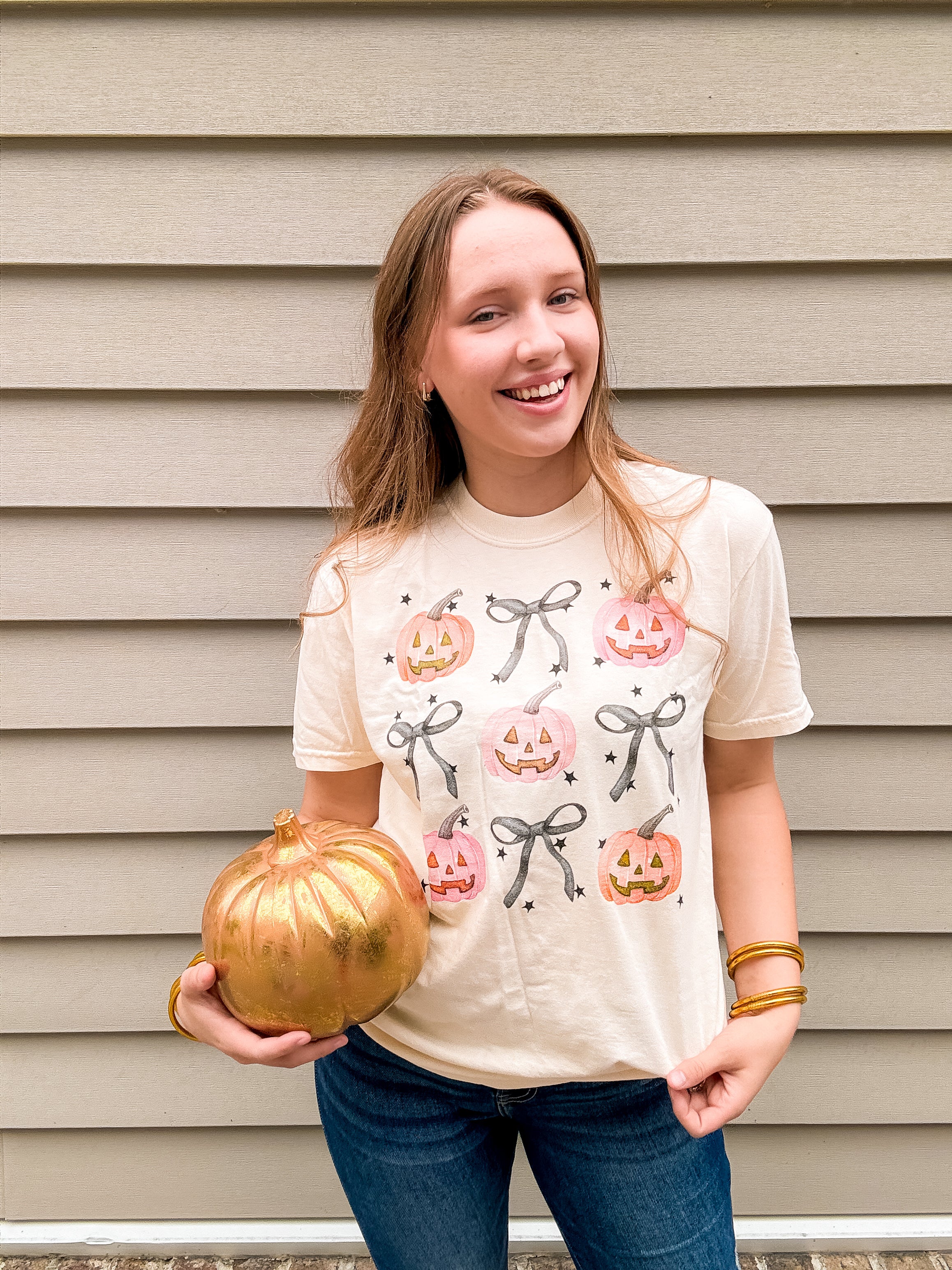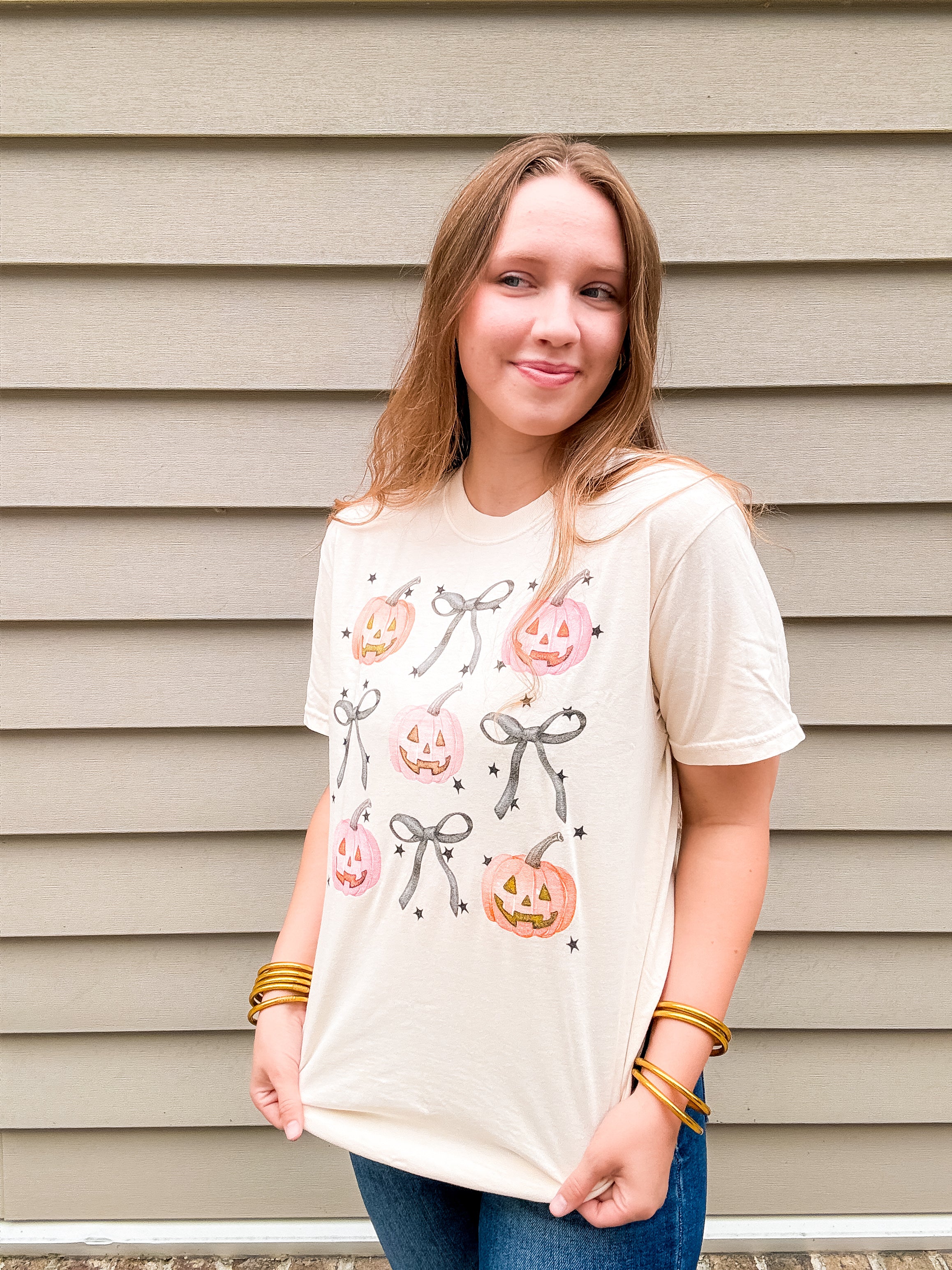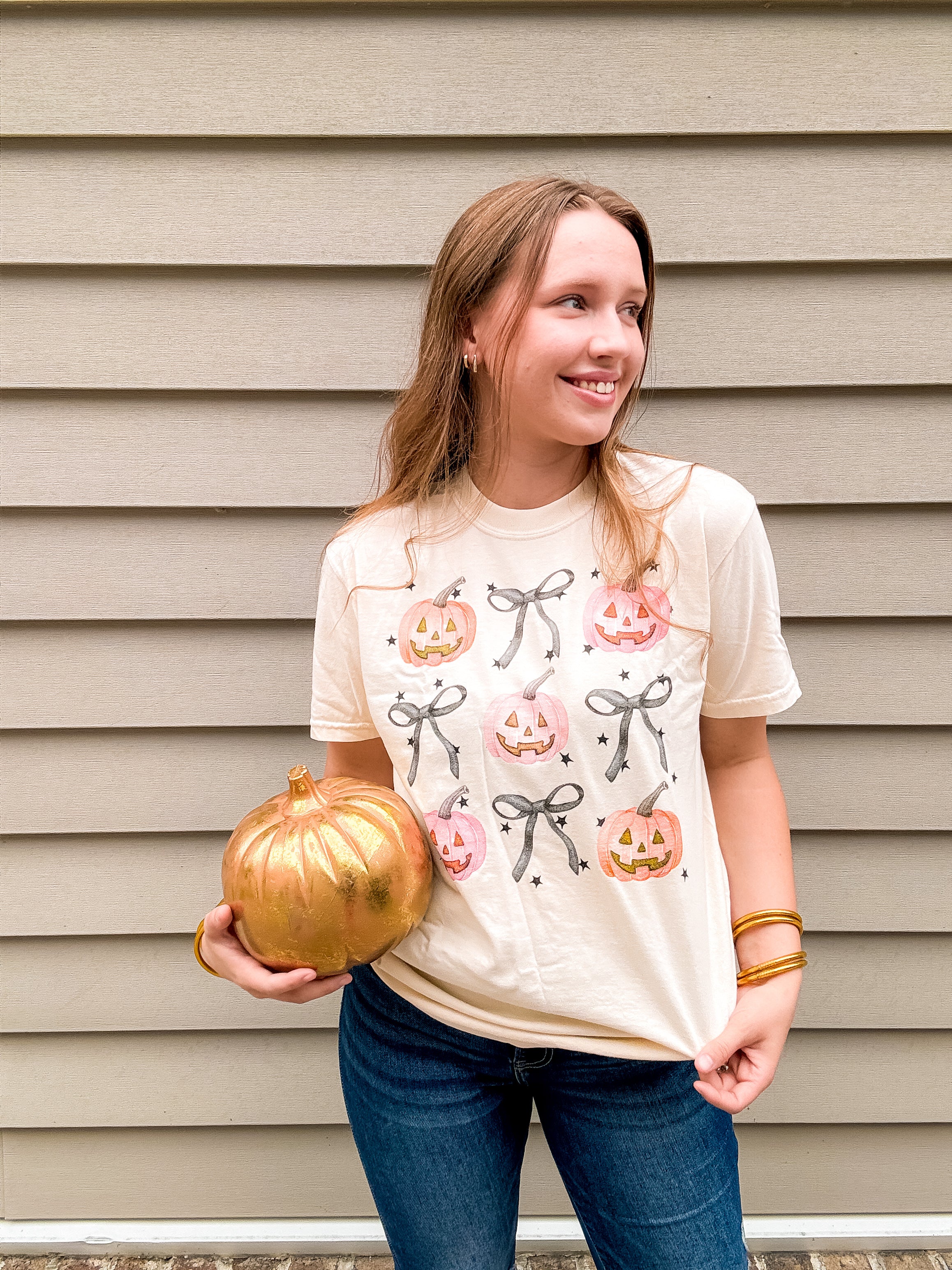 Pink Pumpkins & Bows Tee - Ivory - Final Sale