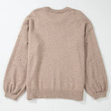 Plus Size Pearl Detail Round Neck Long Sleeve Sweater