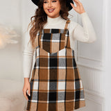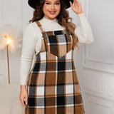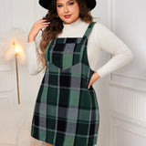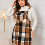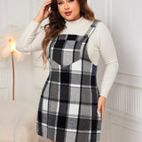 Plus Size Plaid Wide Strap Overall Dress