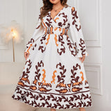 Plus Size Printed Surplice Flounce Sleeve Dress