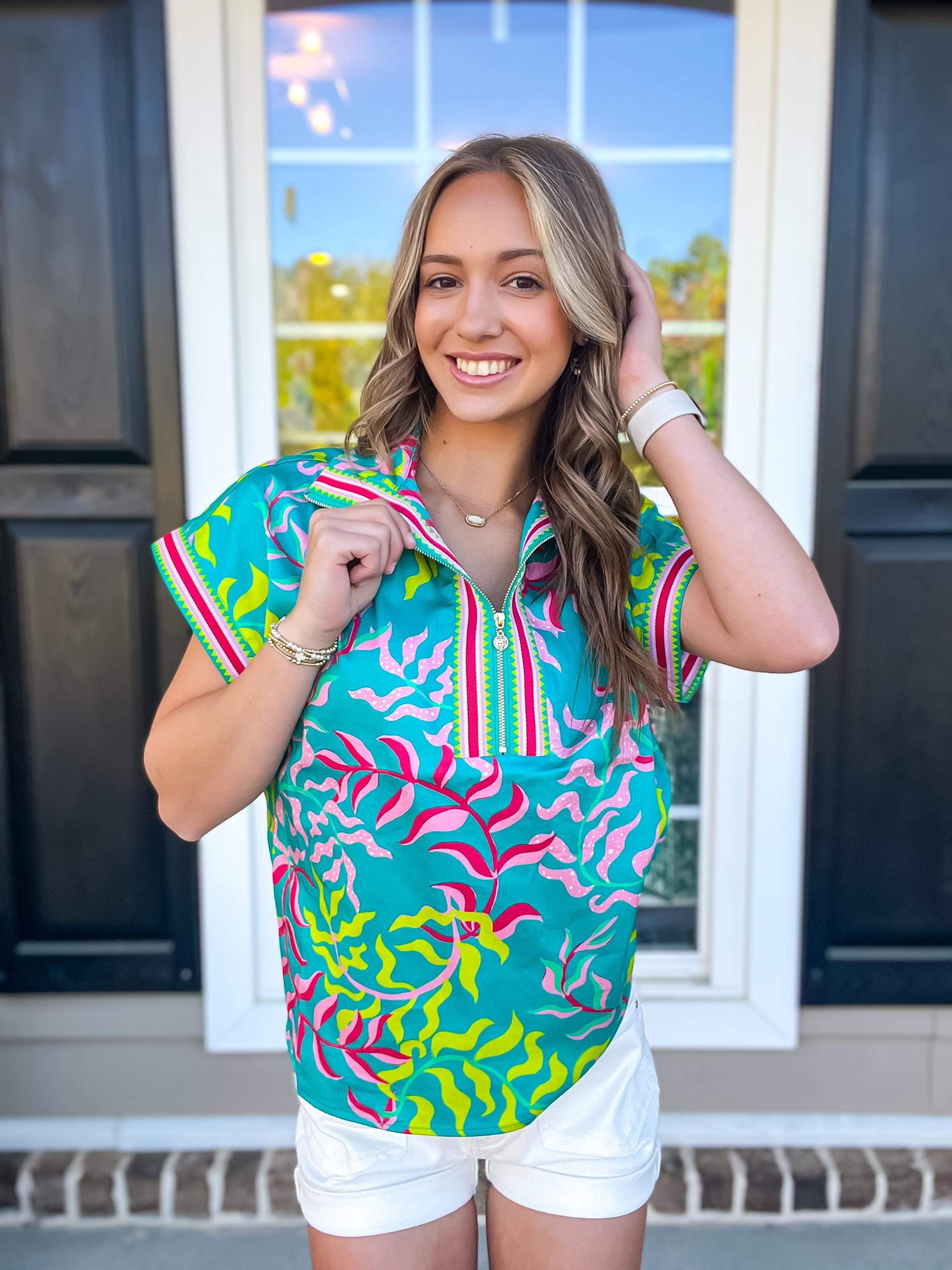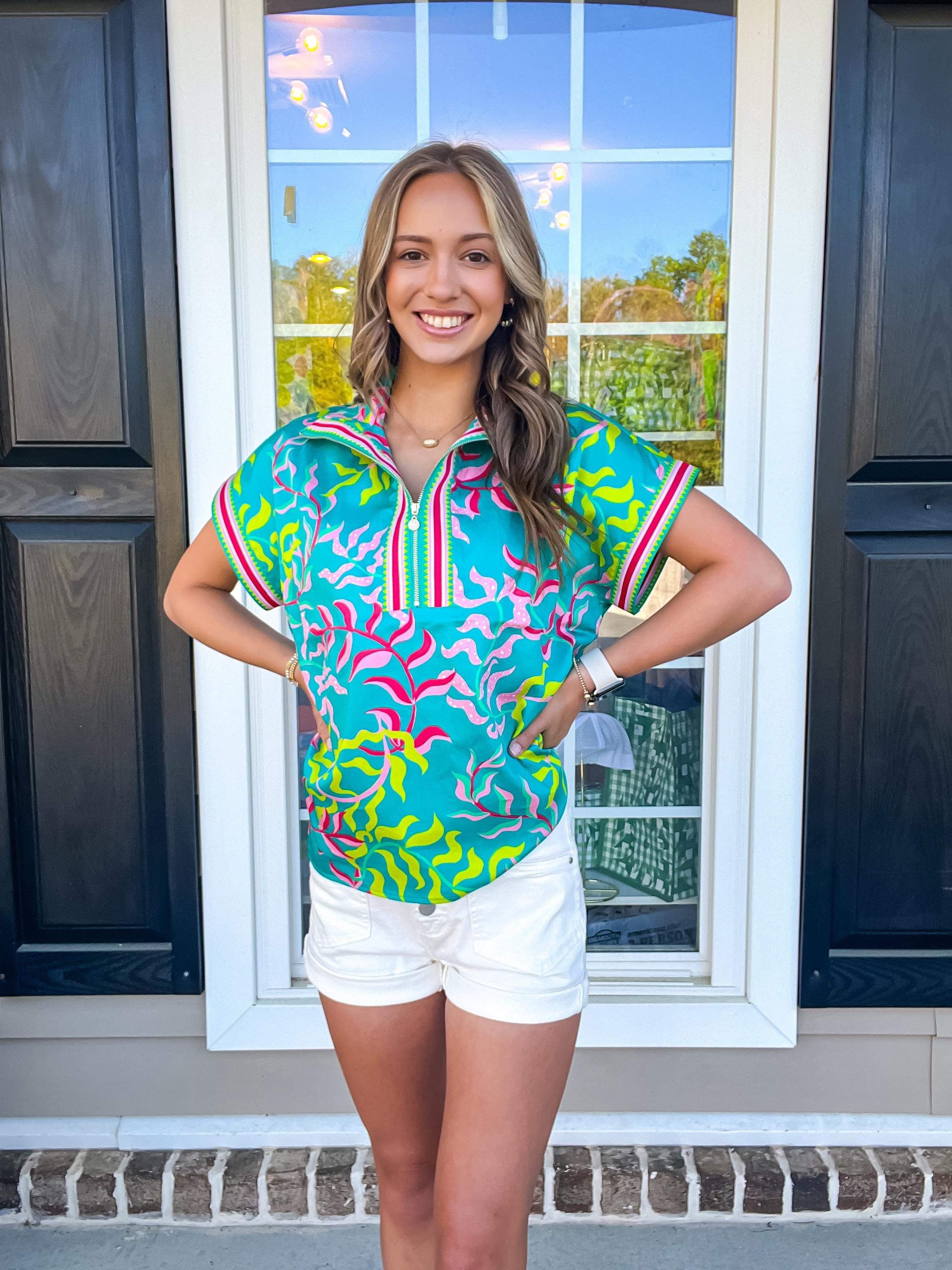 The Poppy Pullover is one of our new, most popular styles, with everything you love about the Poppy reimagined in a 3/4 zip with a trimmed and tailored look. Crisp, cool and a completion to any look, the Poppy Pullover exudes everyday style featuring short dolman style sleeve complimented by contrasting trim.