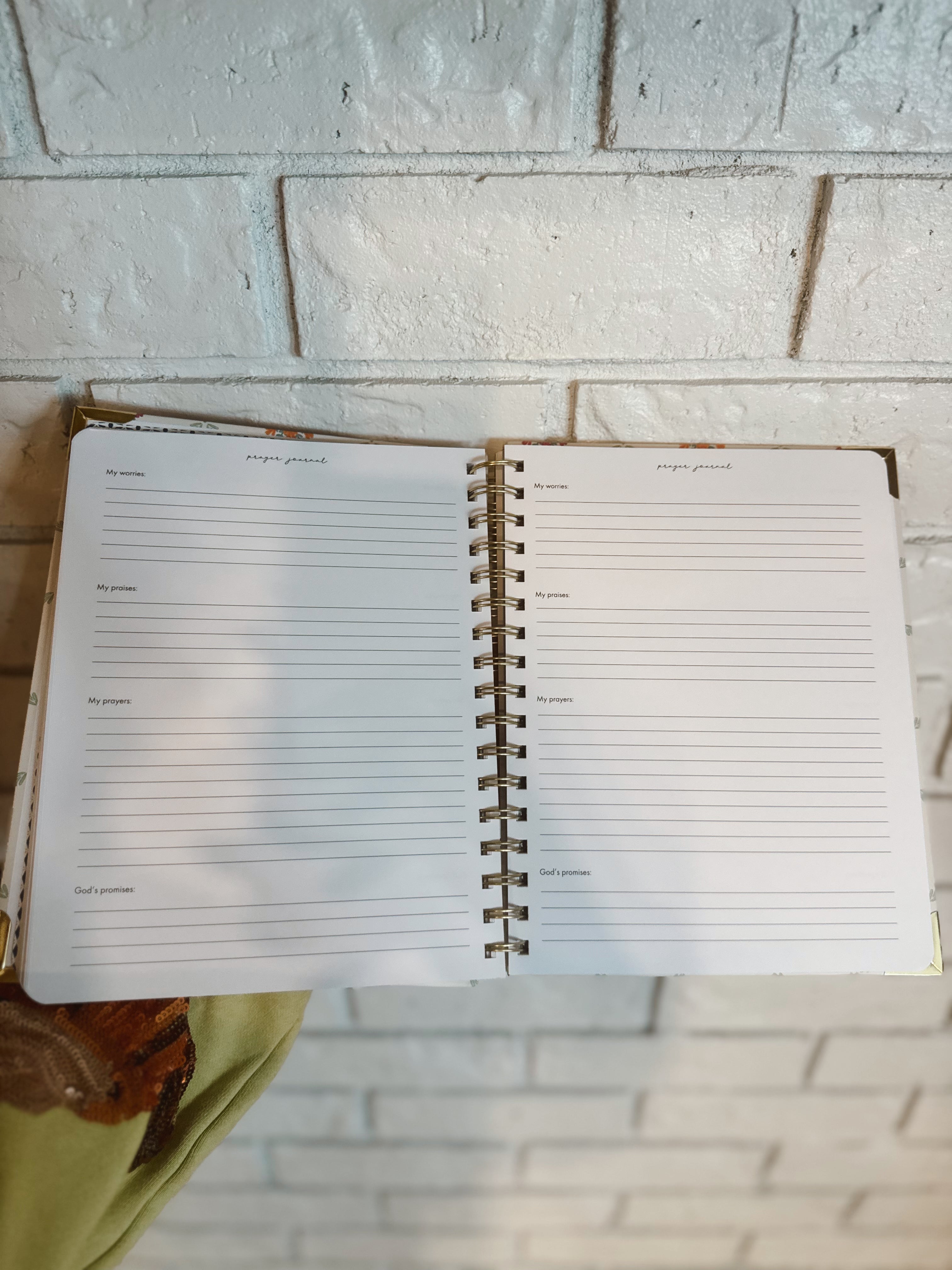 - Daily journal offers 4 guided promptings: My Worries, My Praises, My Prayers, and God's Promises