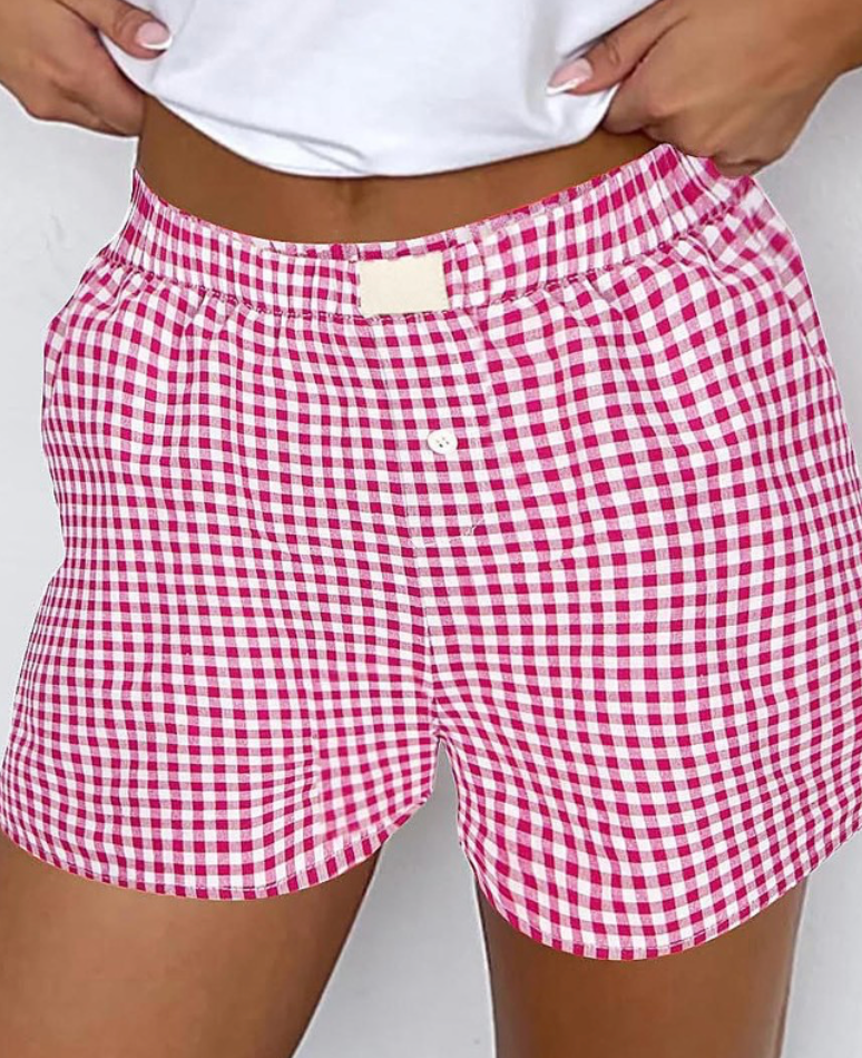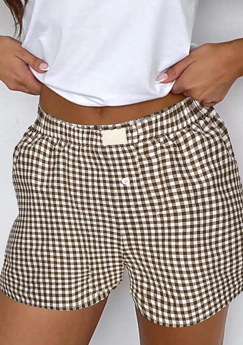 Checkered Pattern Casual Shorts, featuring a comfortable fit and