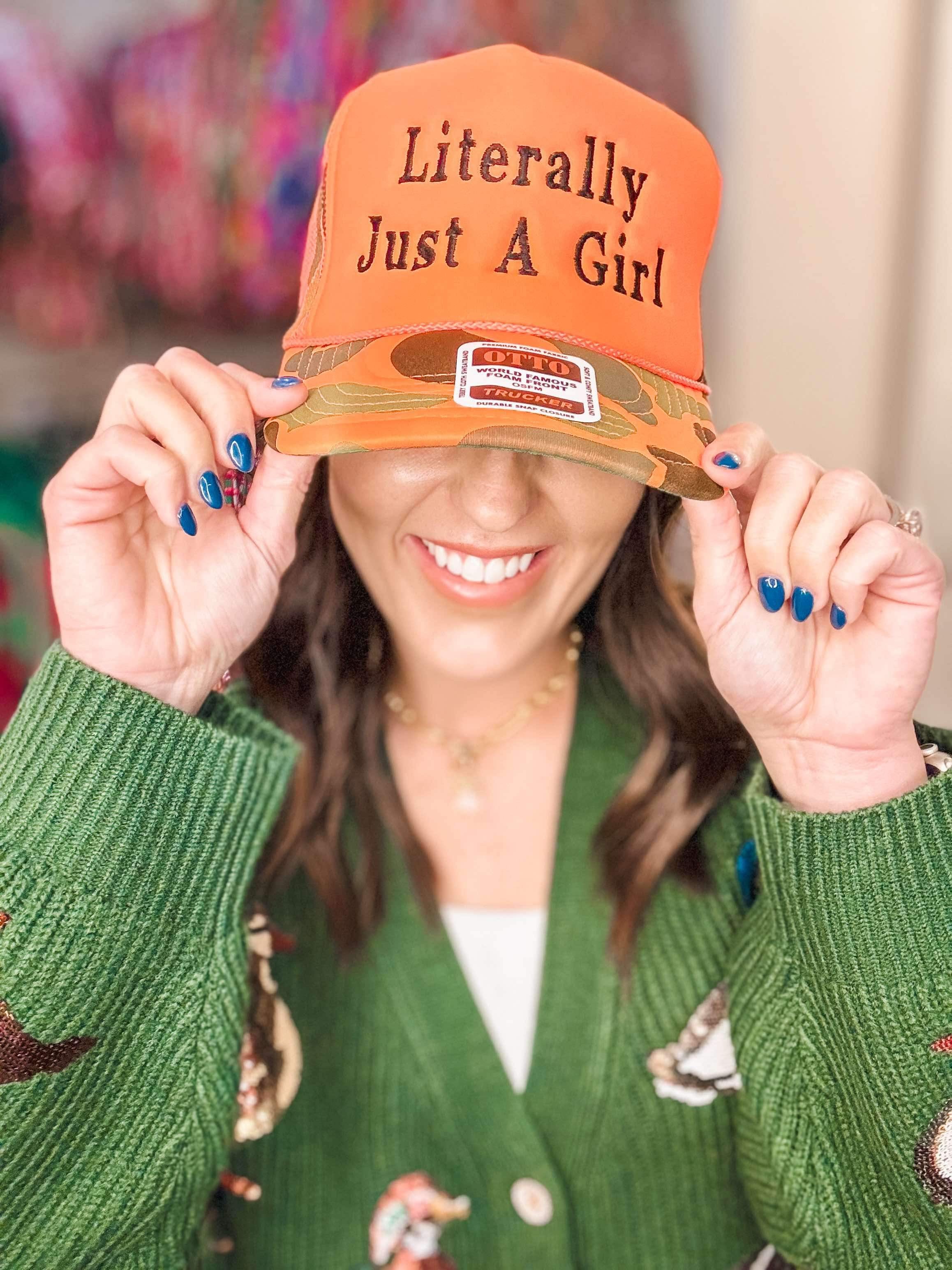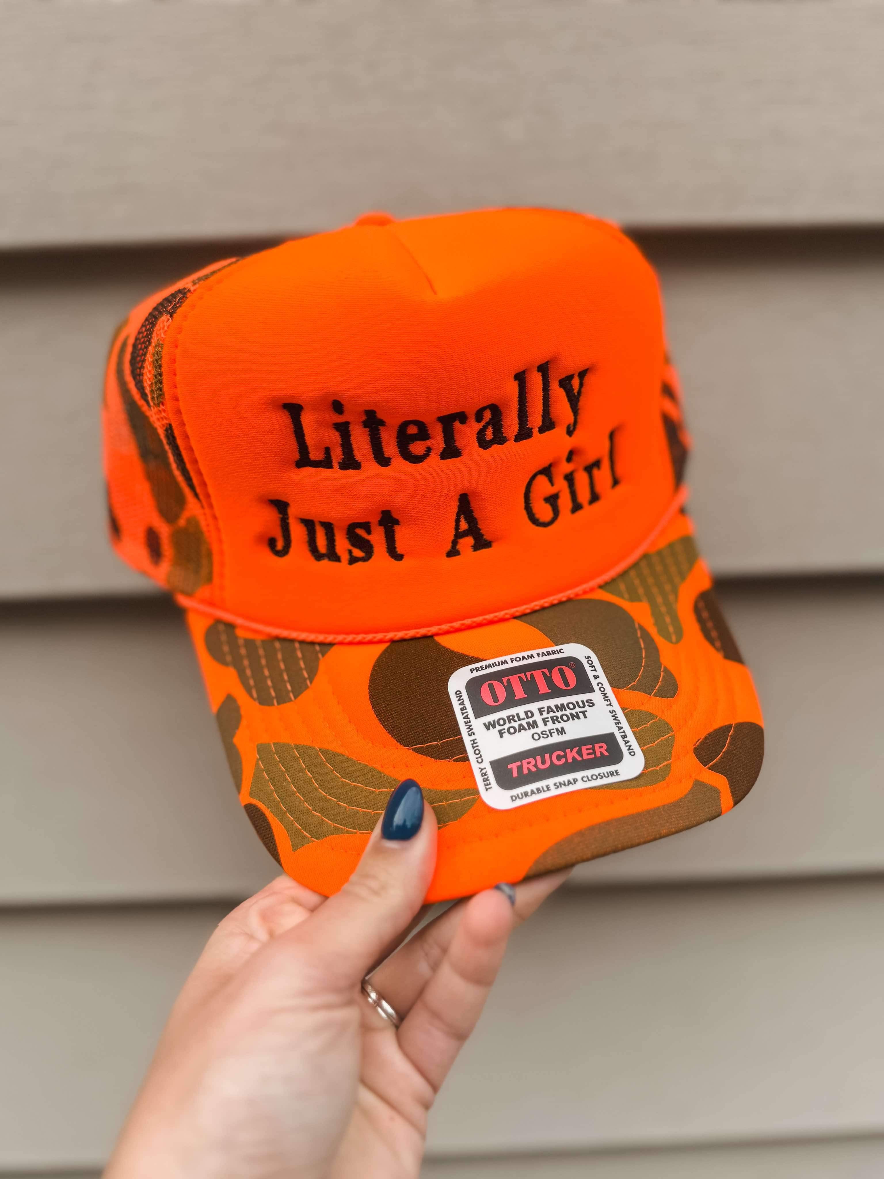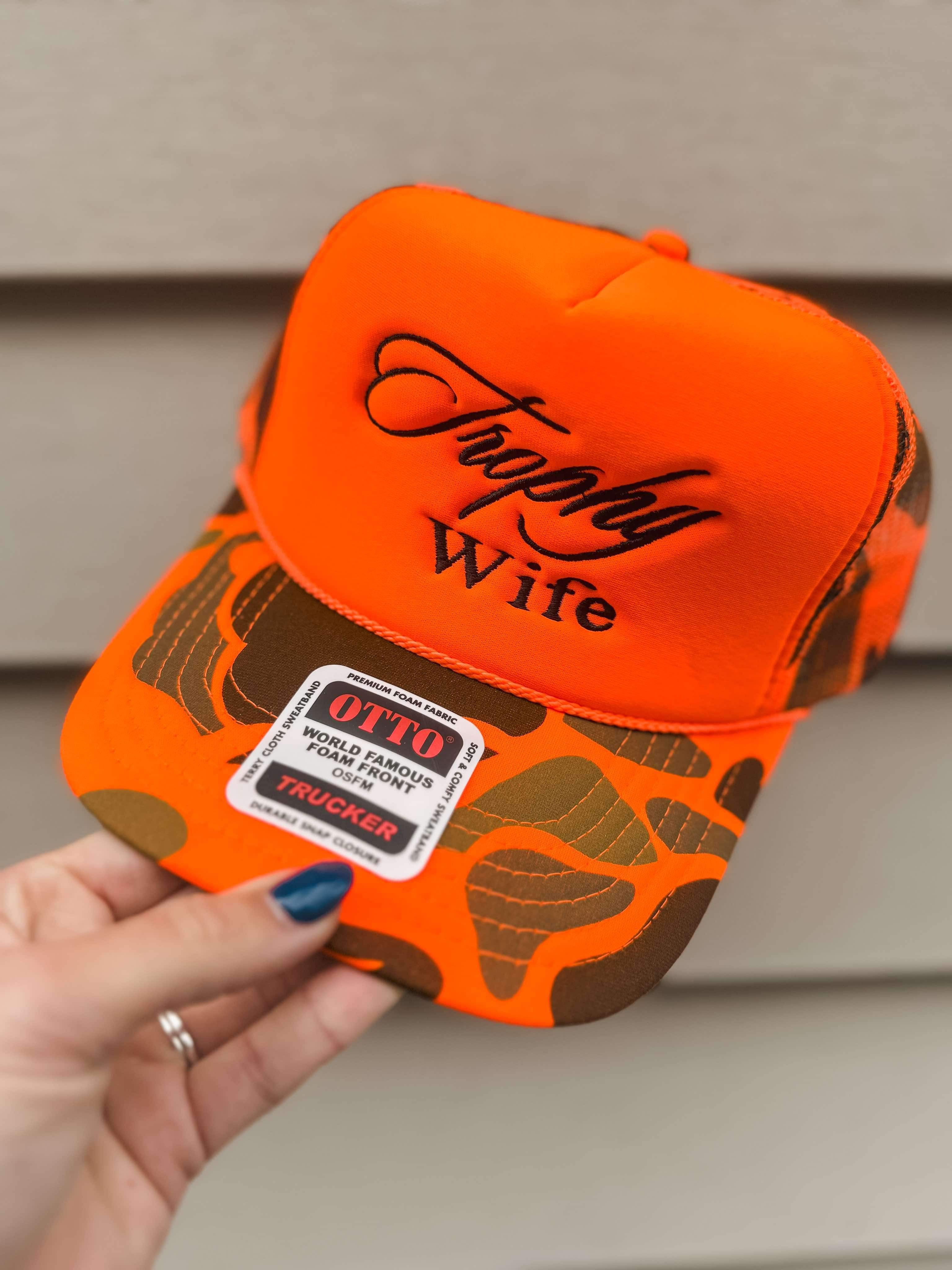 Deer season, but make it girly! Whether you are out there willingly or not, we have a hat for that! Our orange camo hat features our usual otto brand foam hat with snapback closure.
