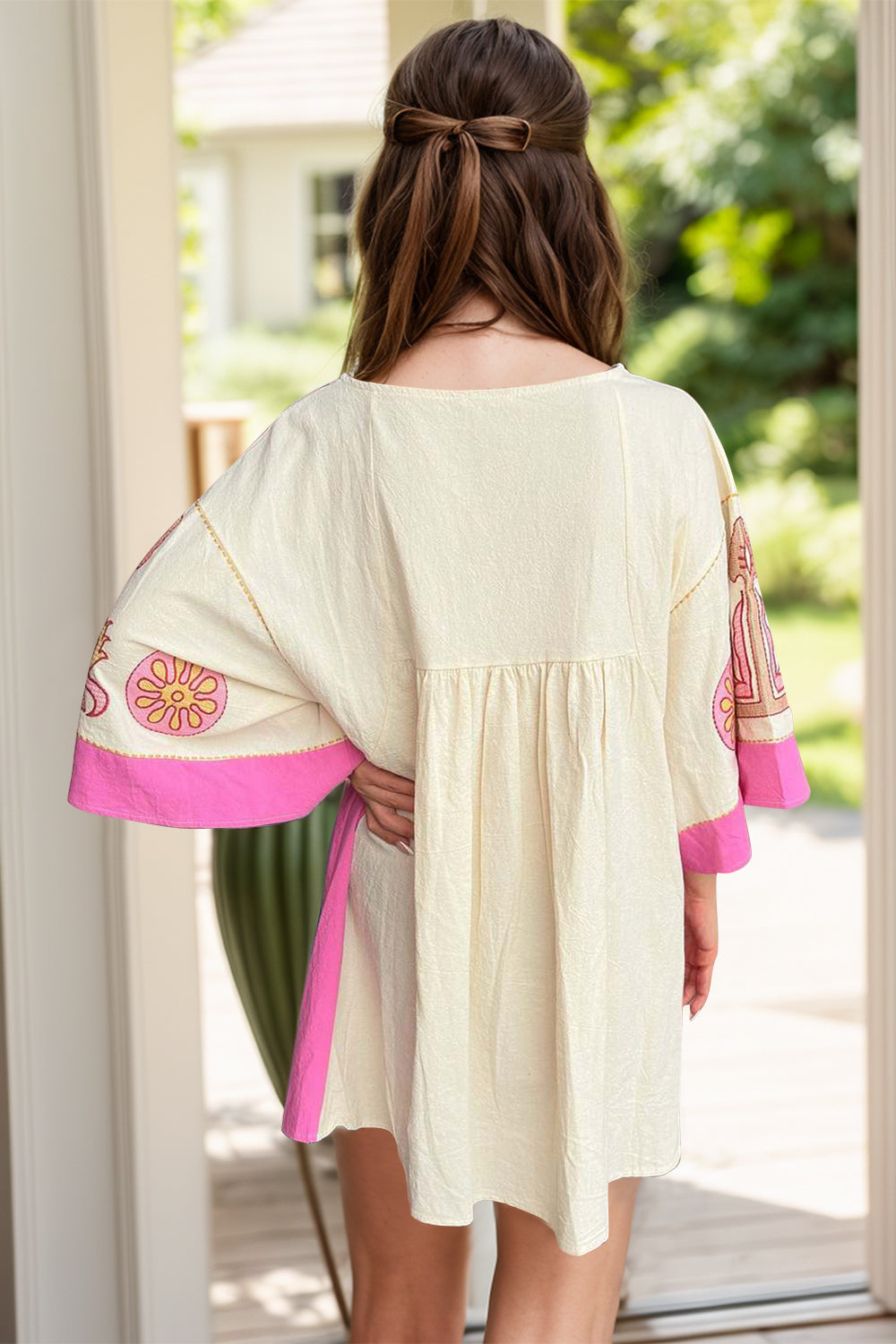 Printed V-Neck Three-Quarter Sleeve Mini Dress