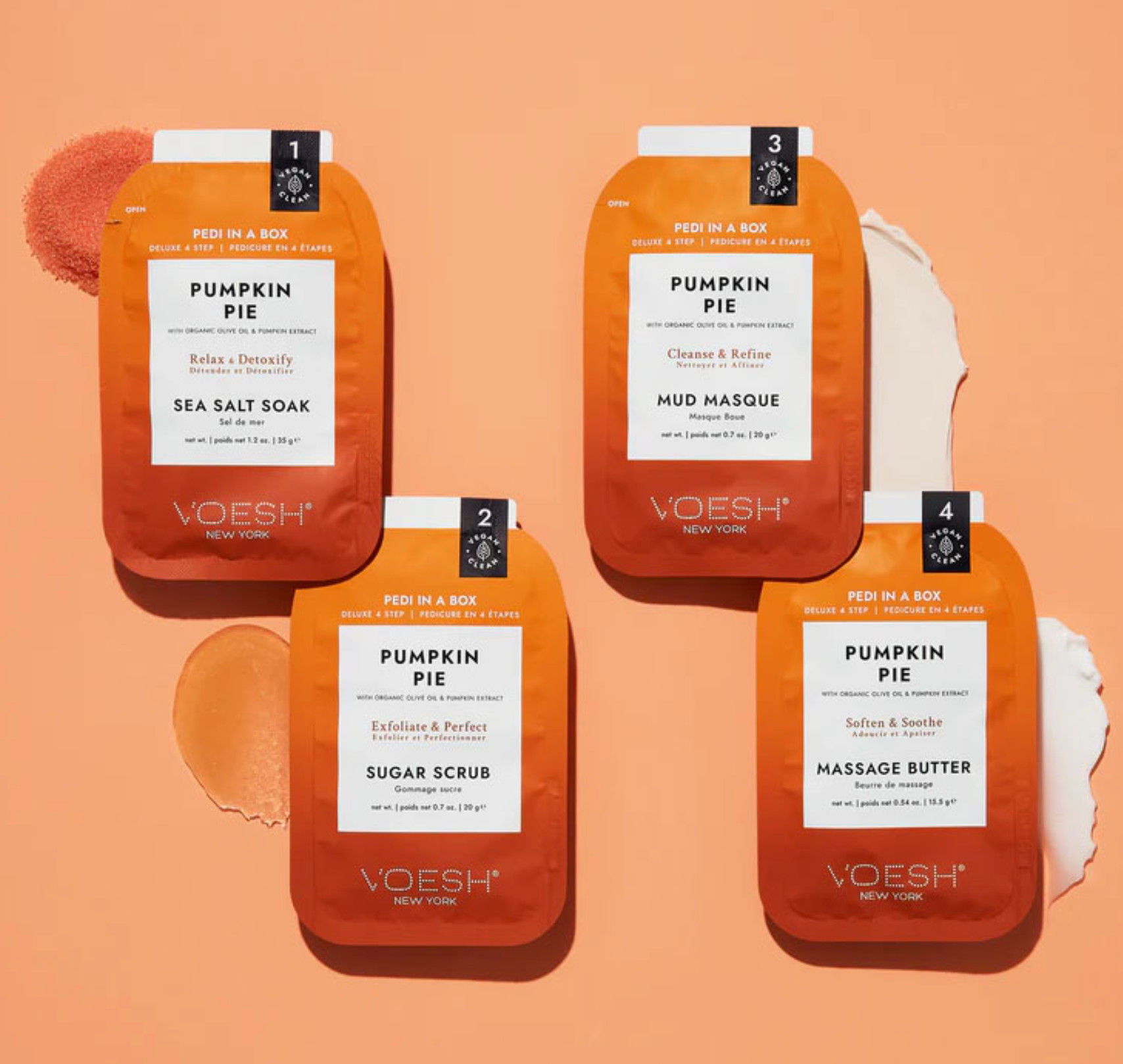 The 4-step spa pedicure kit comes with a Sea Salt Soak, Sugar Scrub, Mud Masque, and Massage Butter for a salon-quality pedicure right at home. The Pumpkin Pie Duo is 100% allergen-free and includes clean ingredients like organic virgin olive oil and pumpkin extract to hydrate and strengthen the skin’s moisture barrier. The Pumpkin Pie Duo is the sweetest and most satisfying treat for your feet!