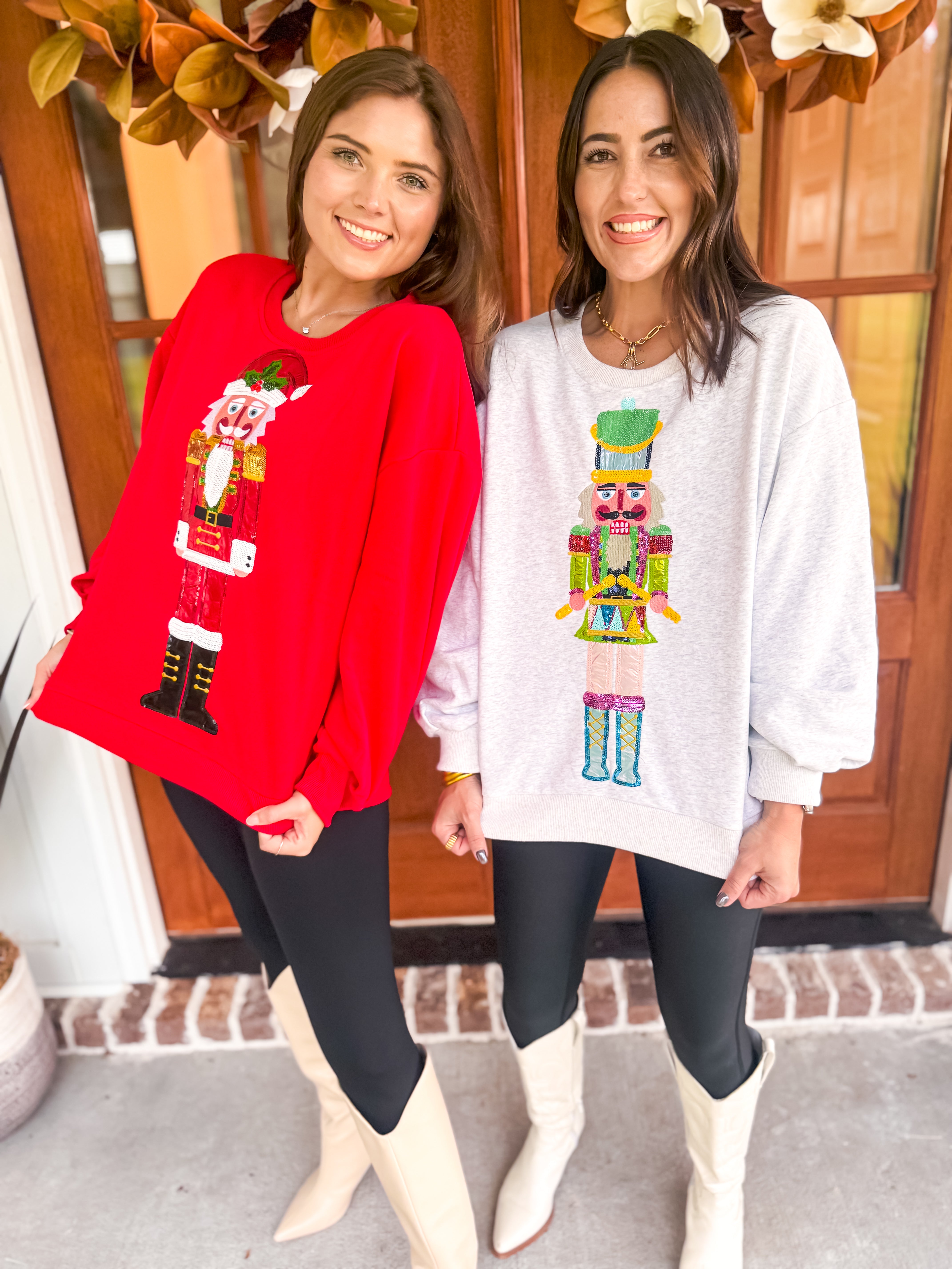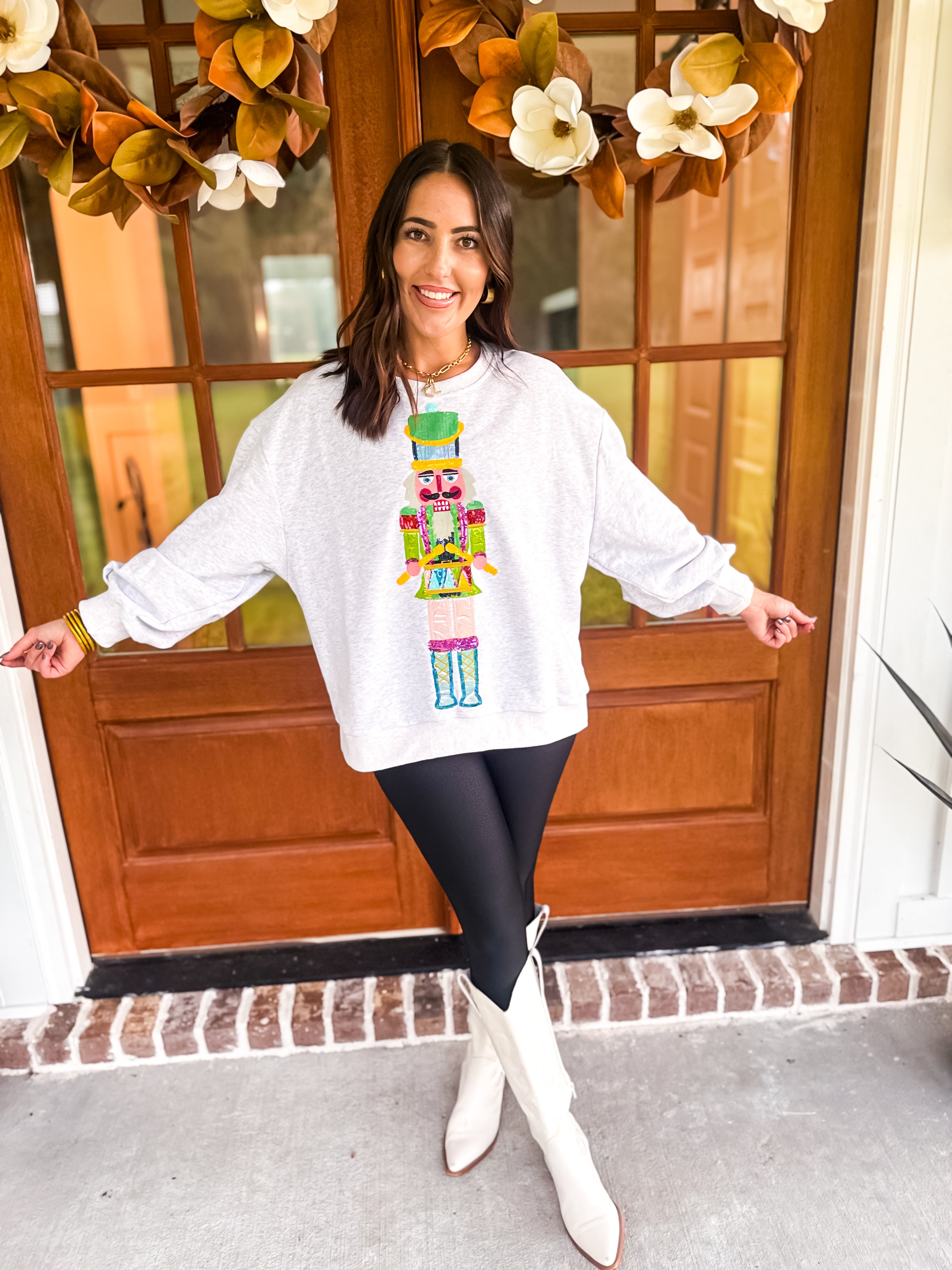 QOS Grey Colorblock Drummer Nutcracker Sweatshirt