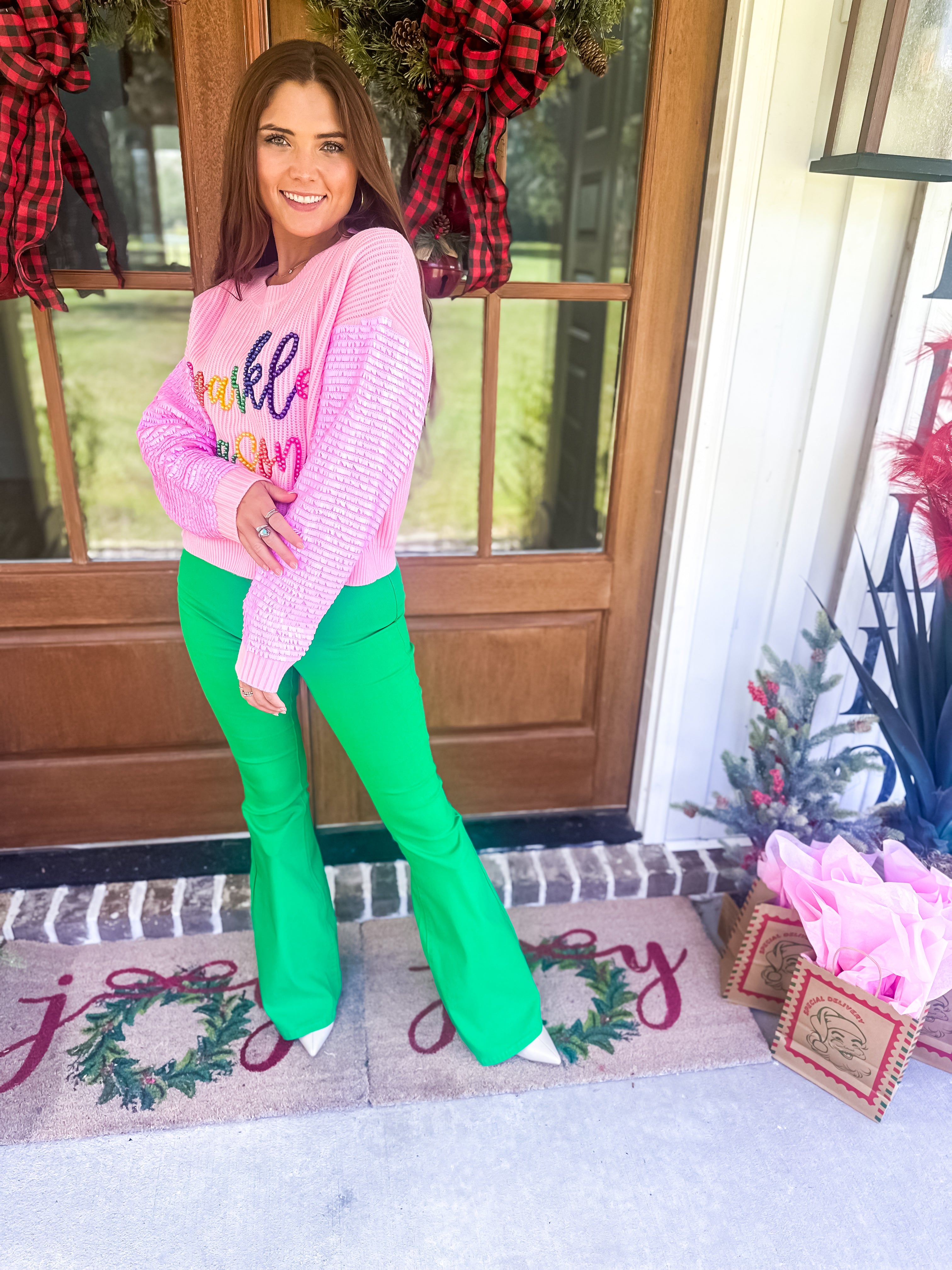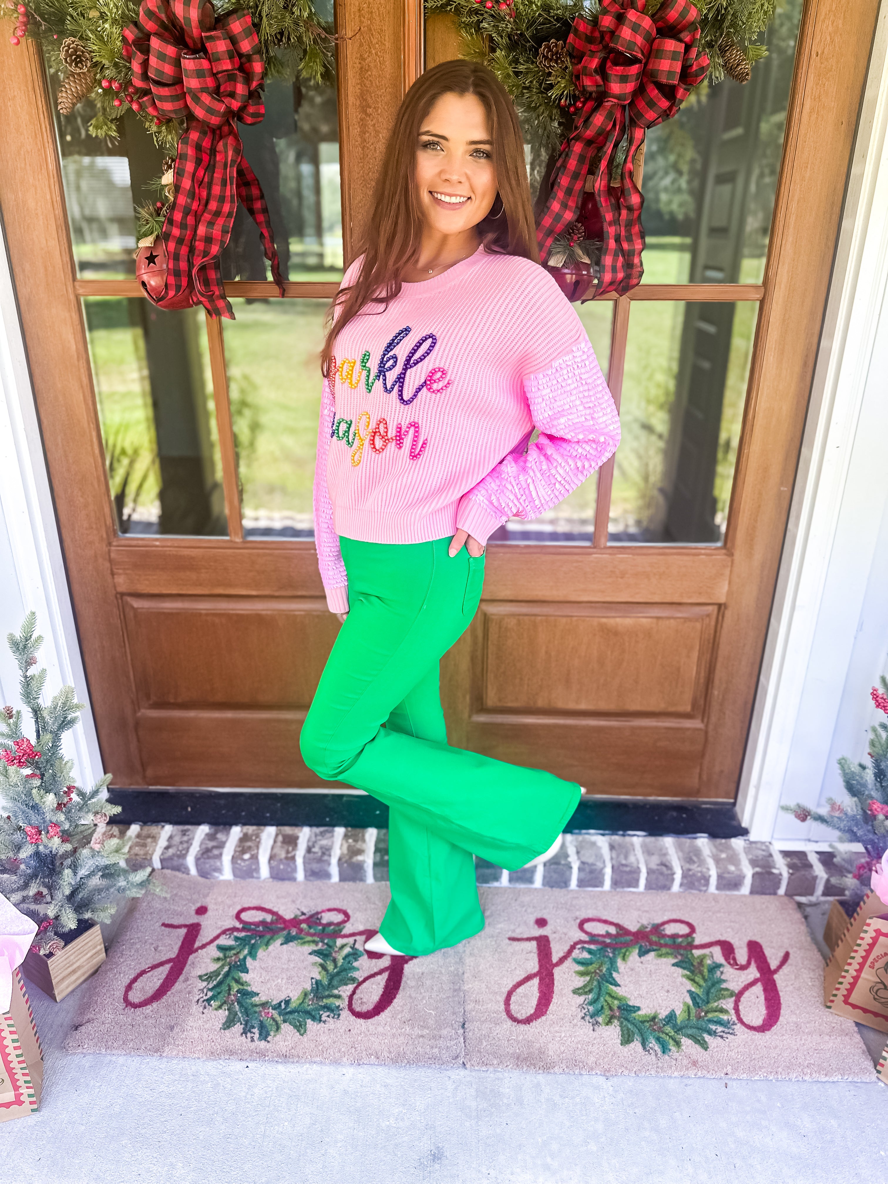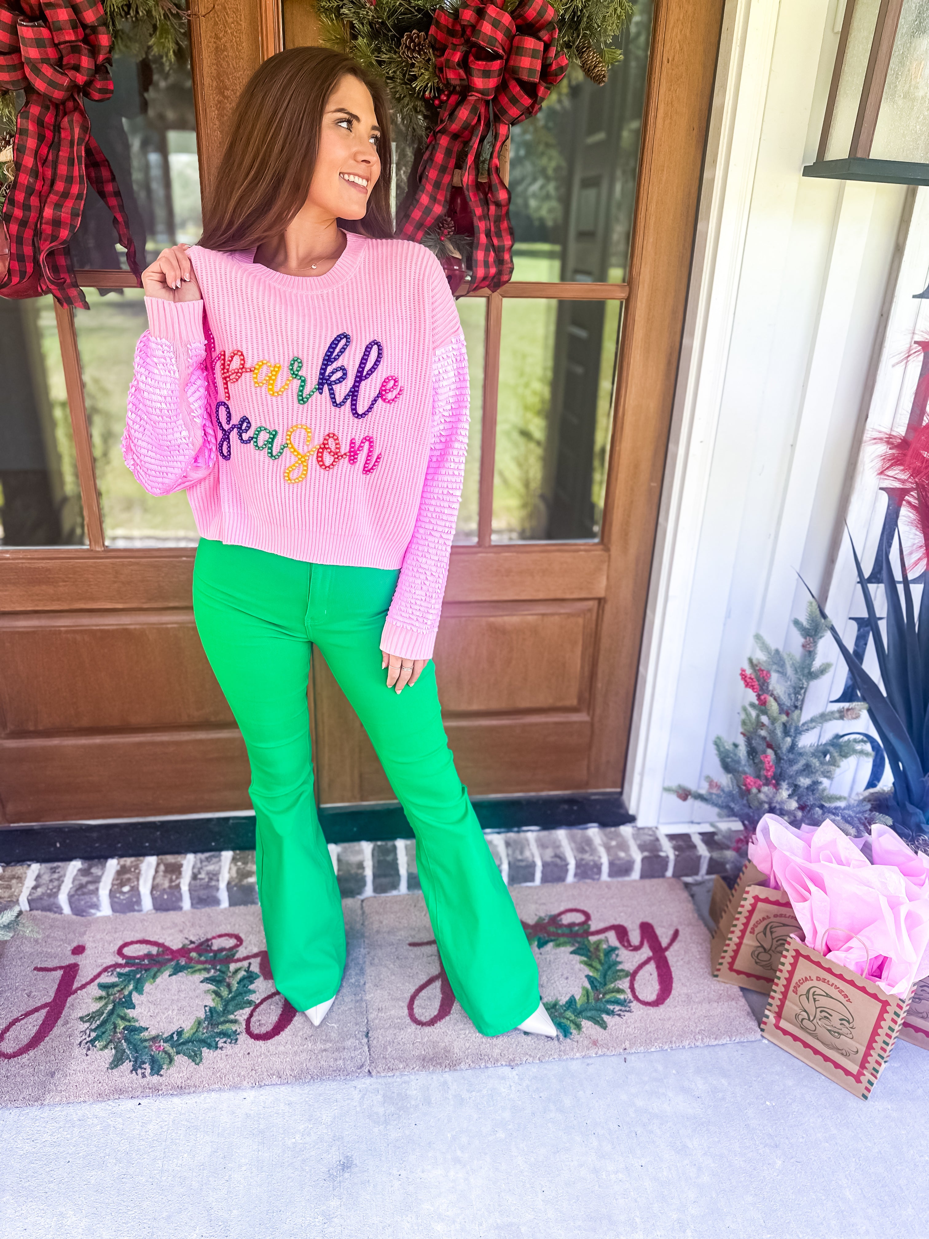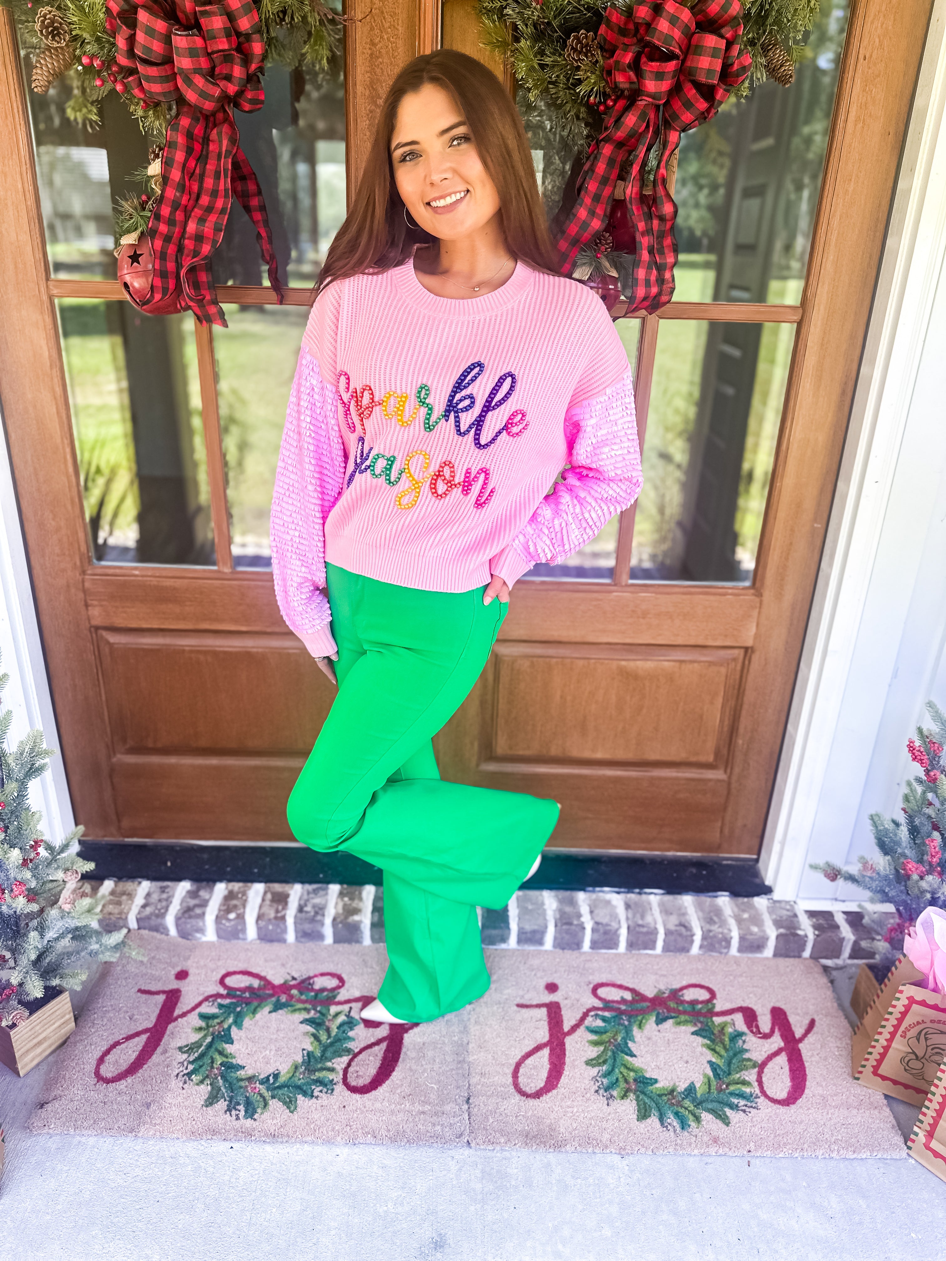 QOS Pink Sequin Sleeve Multi Pearl 'Sparkle Season'