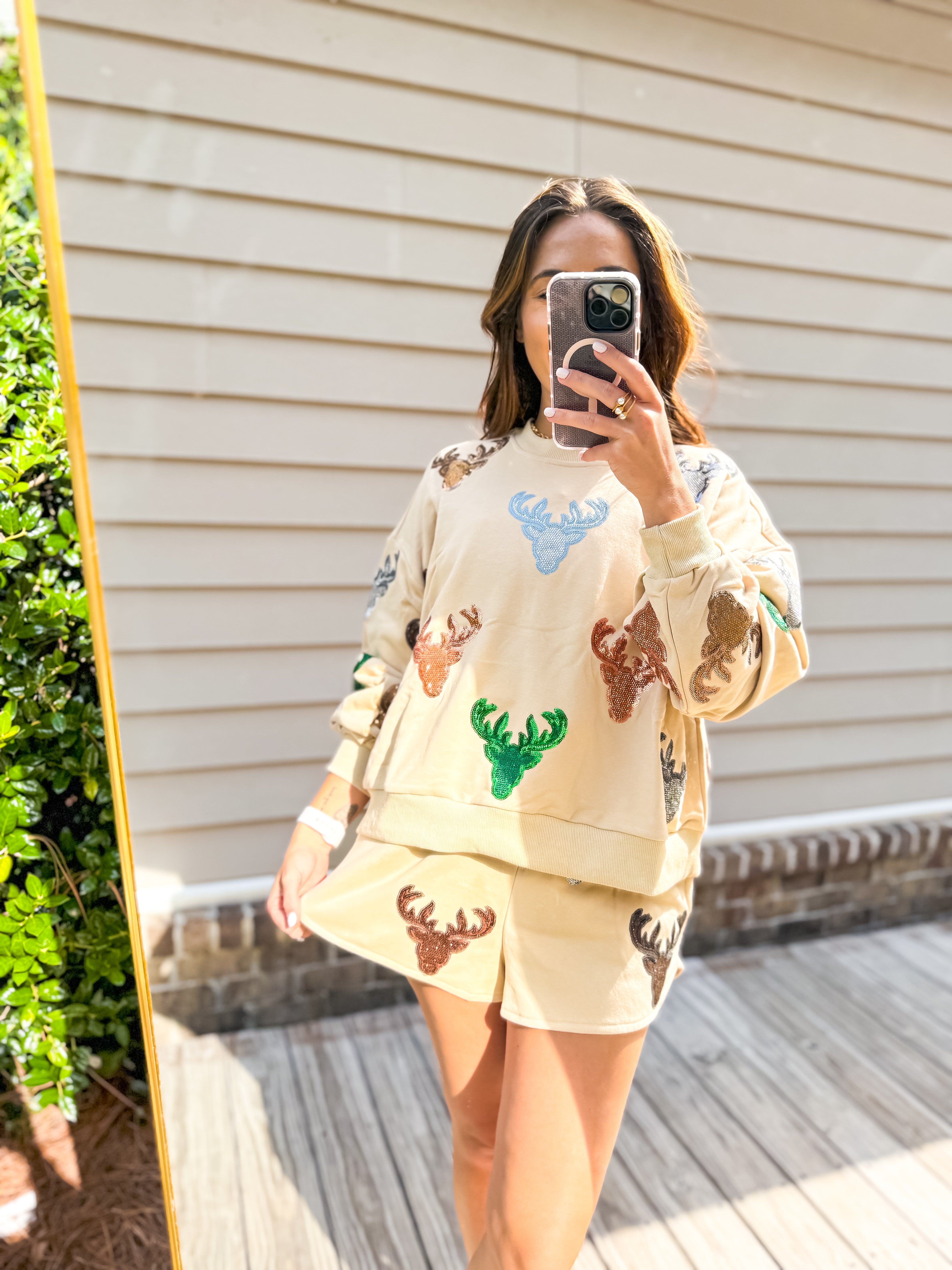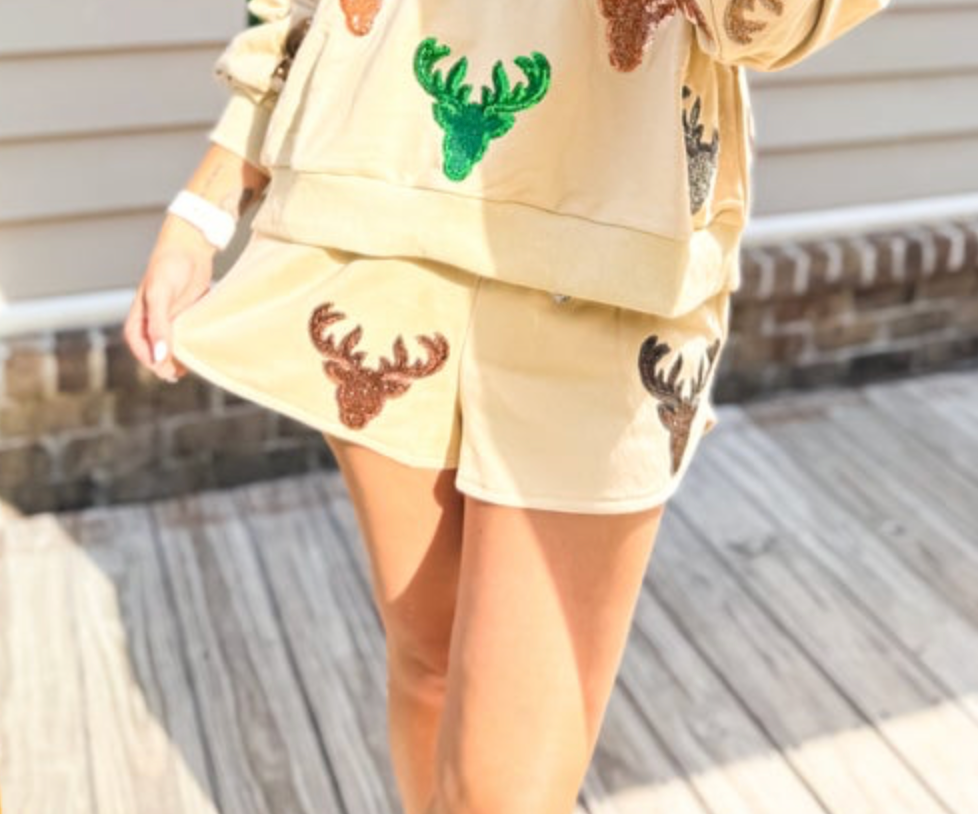 Queen Of Sparkles Beige Deer Head Short - Final Sale