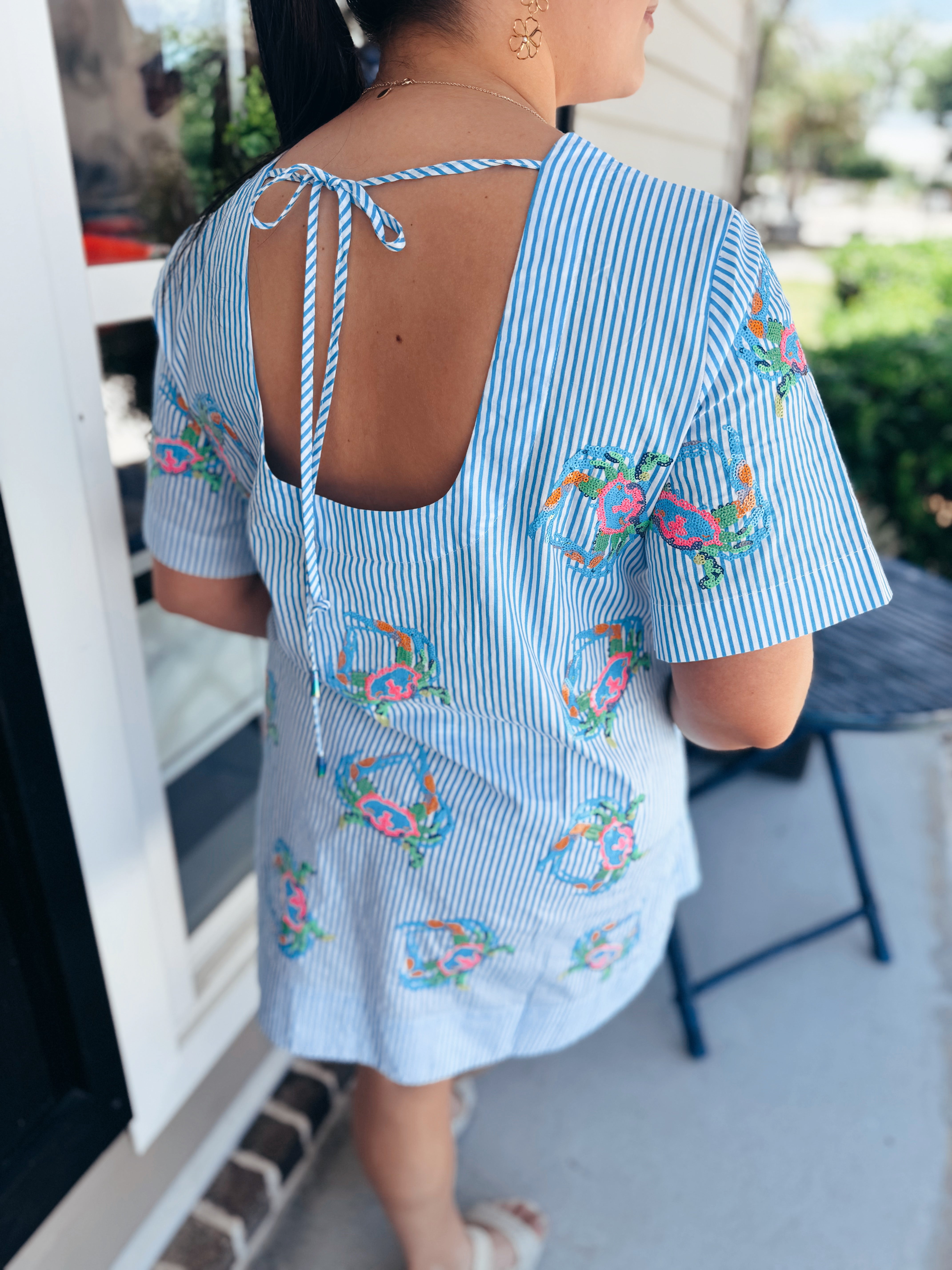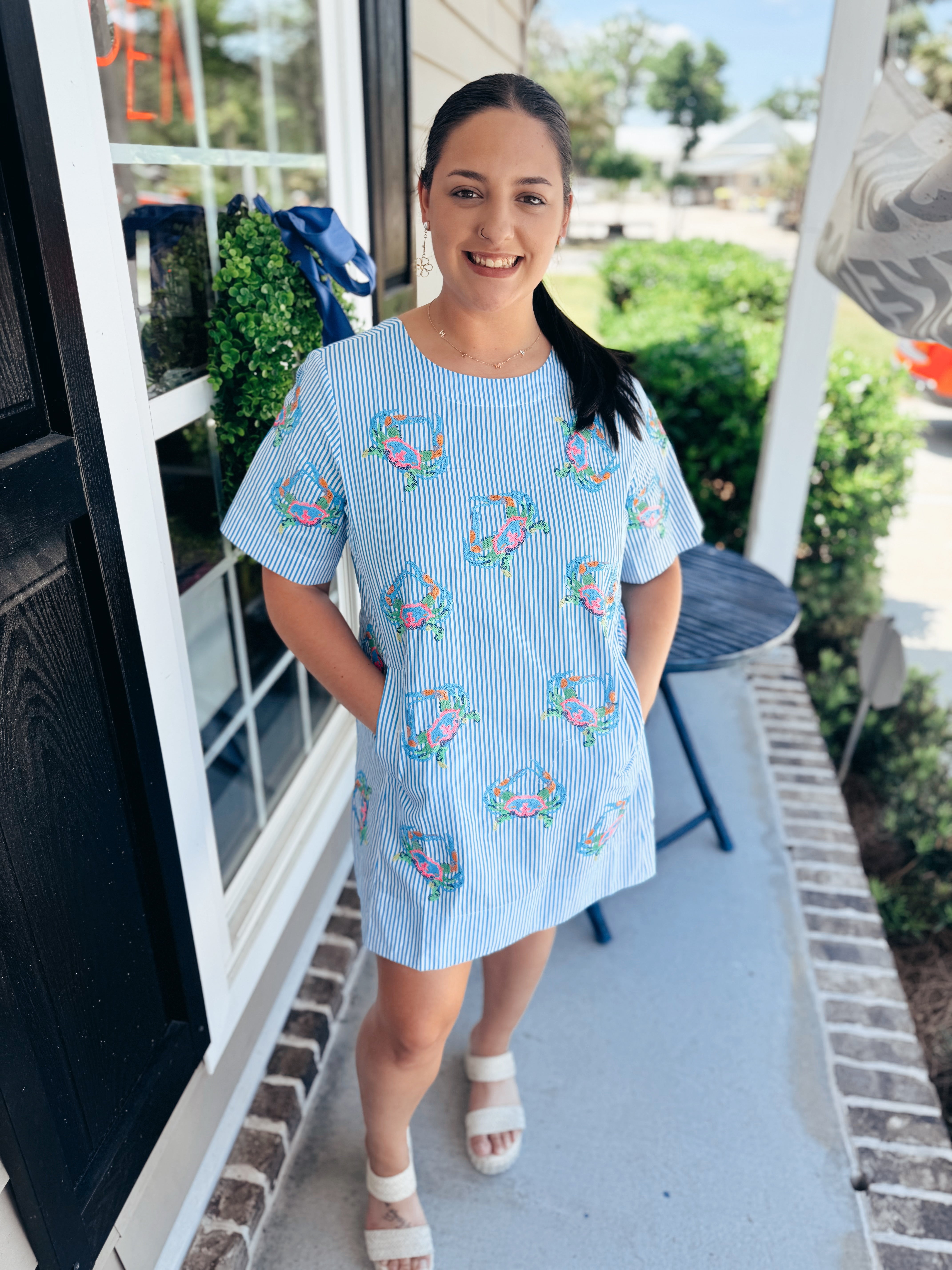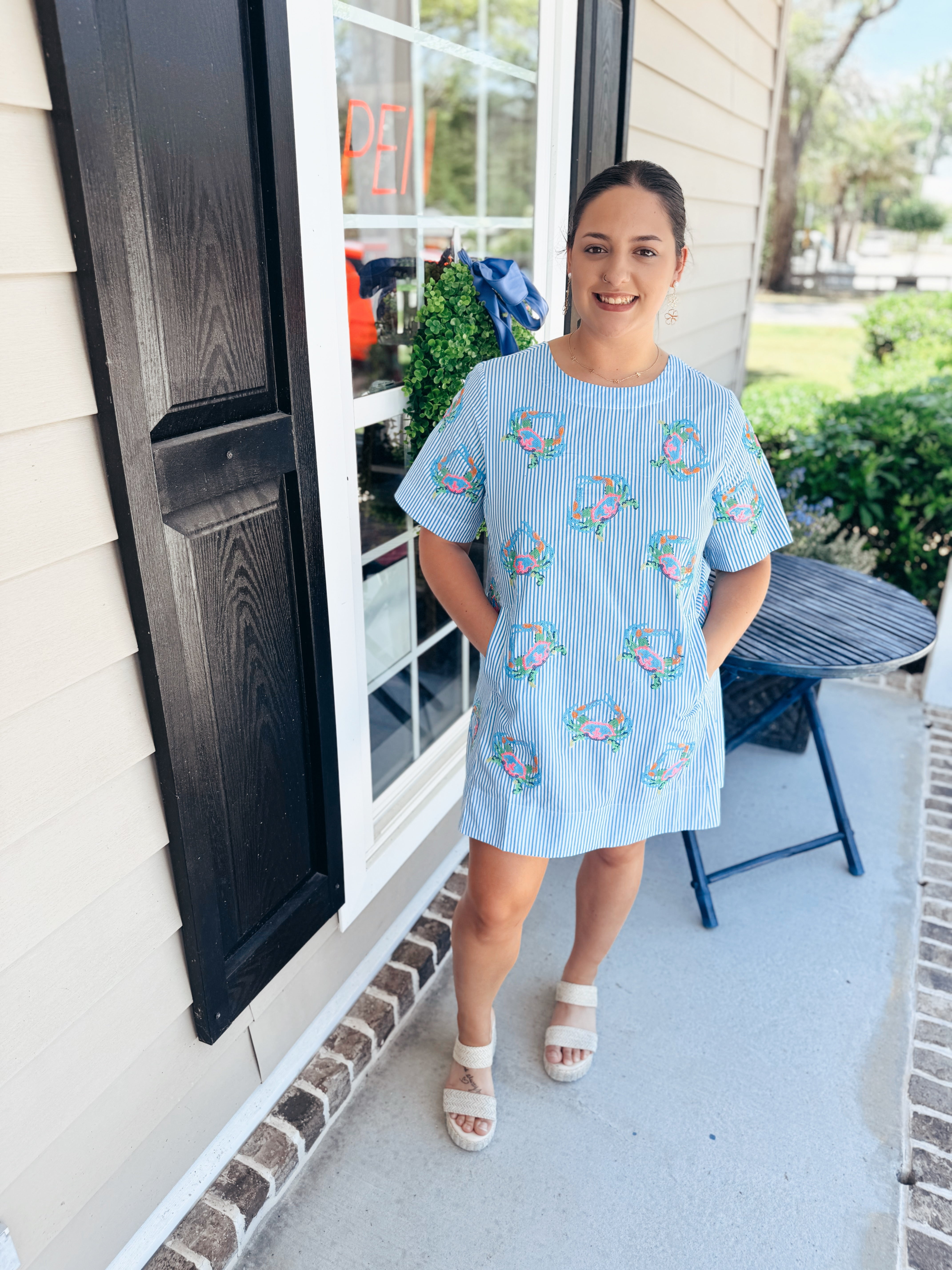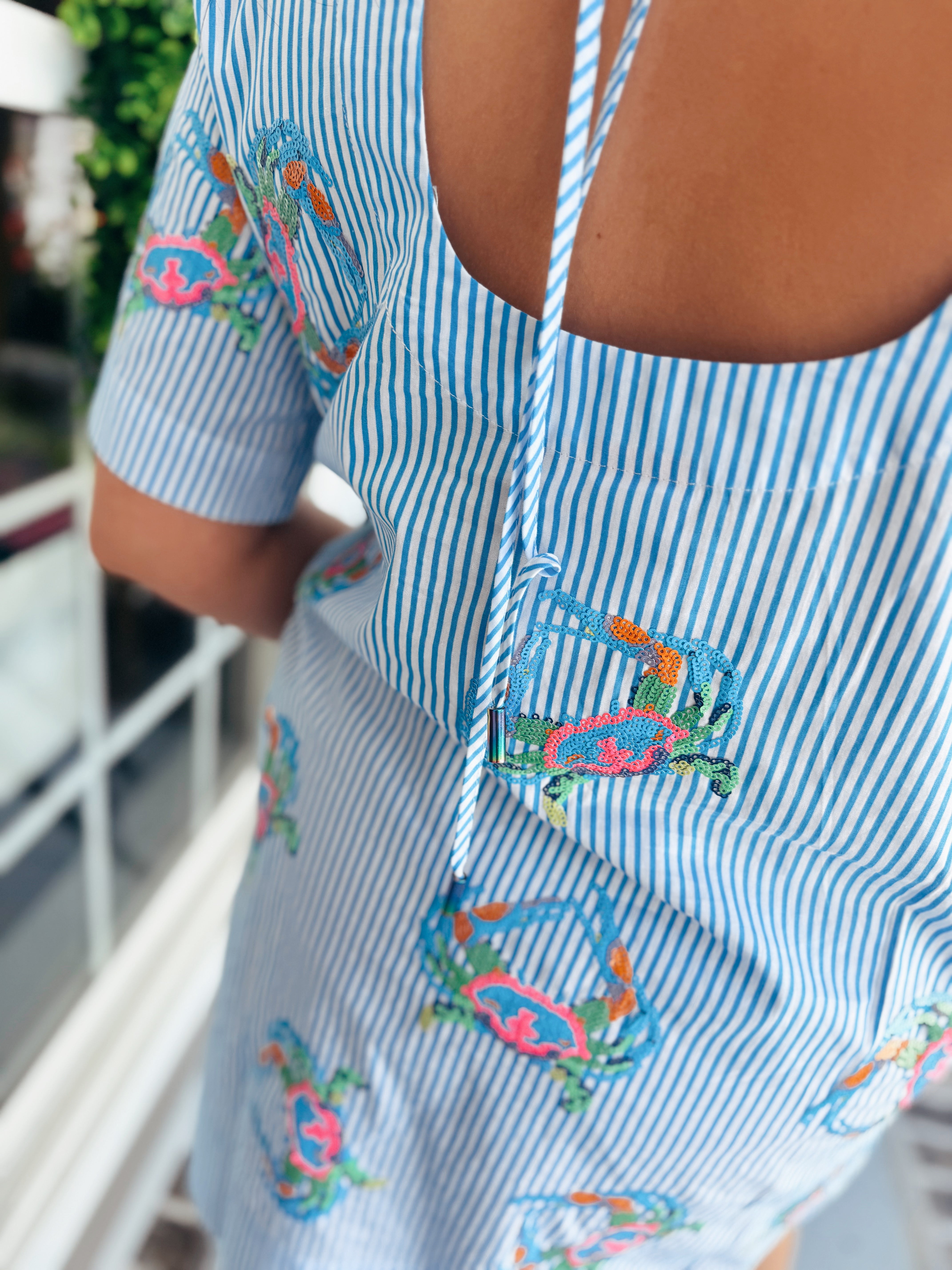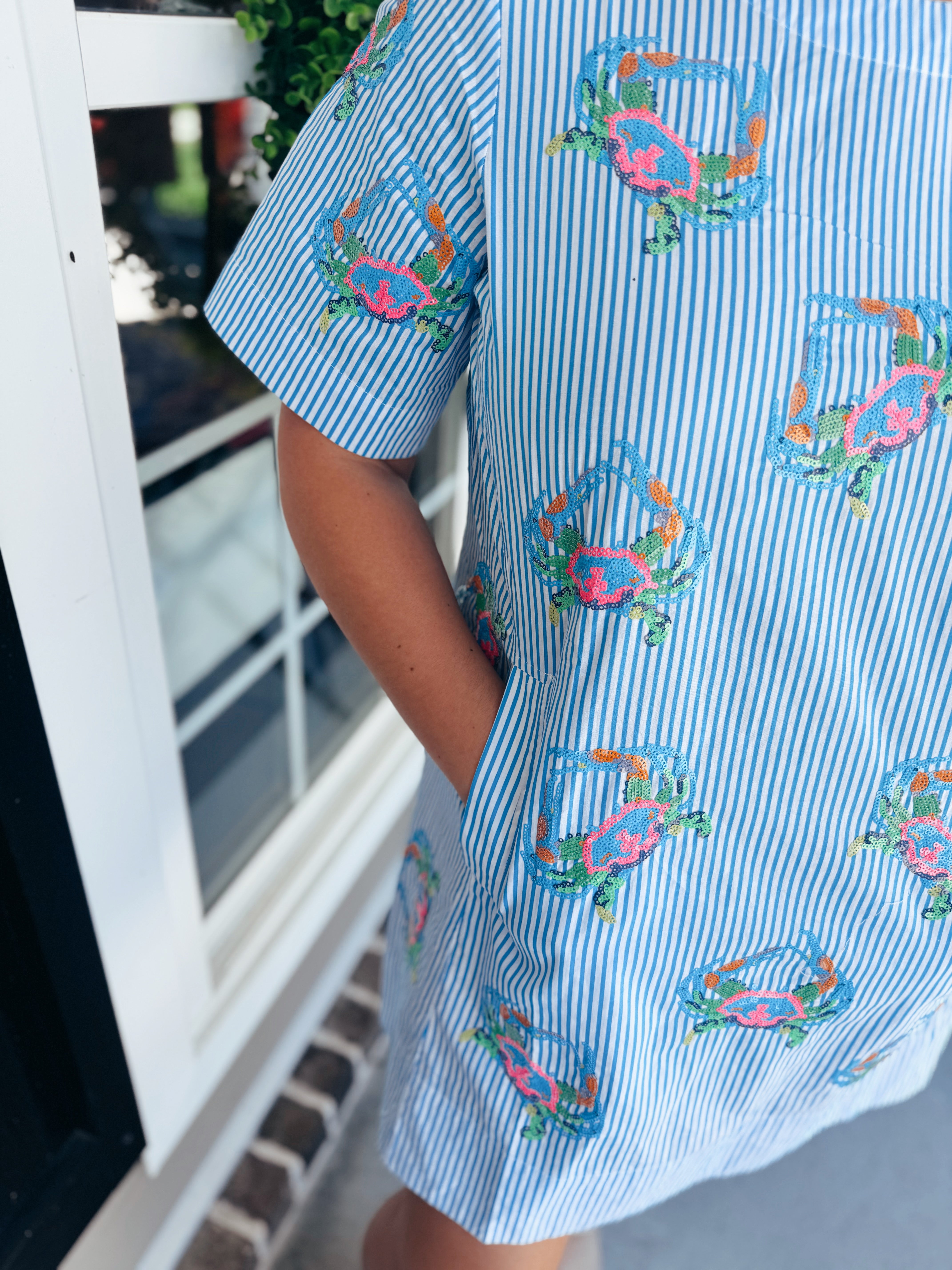 Queen Of Sparkles | Blue Striped Rainbow Crab Cotton Dress - Final Sale