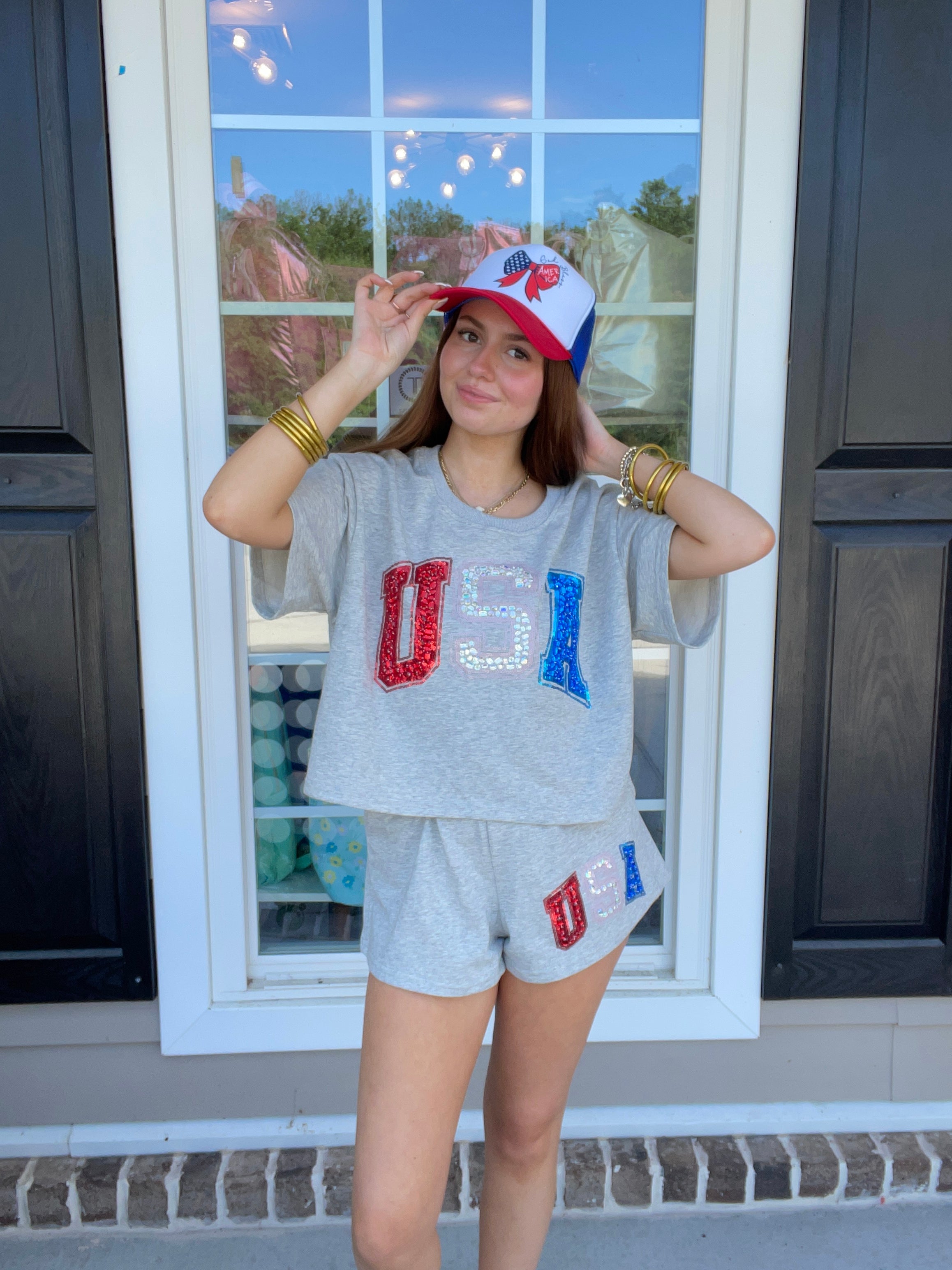 Queen Of Sparkles Grey Beaded 'USA' Top