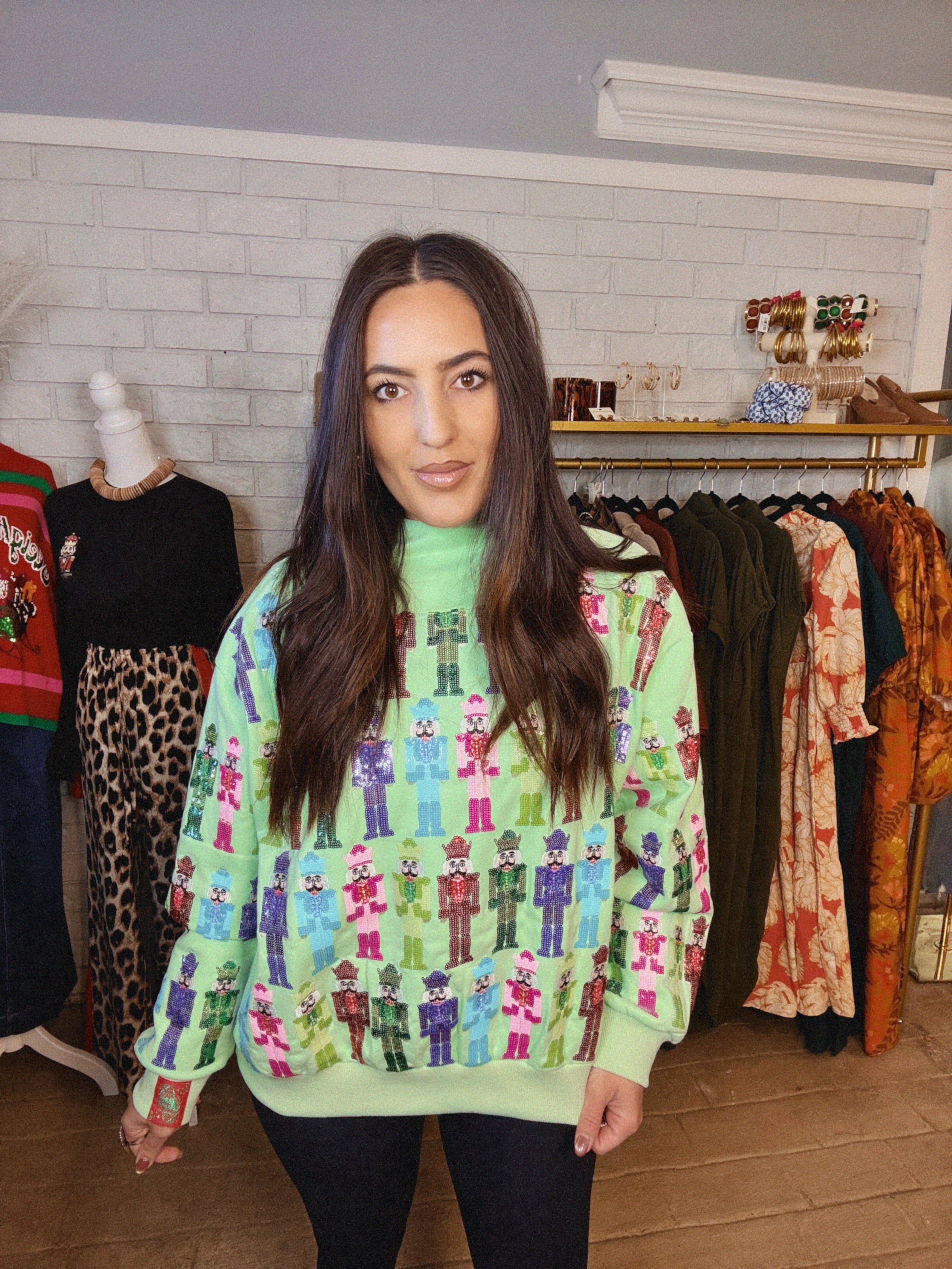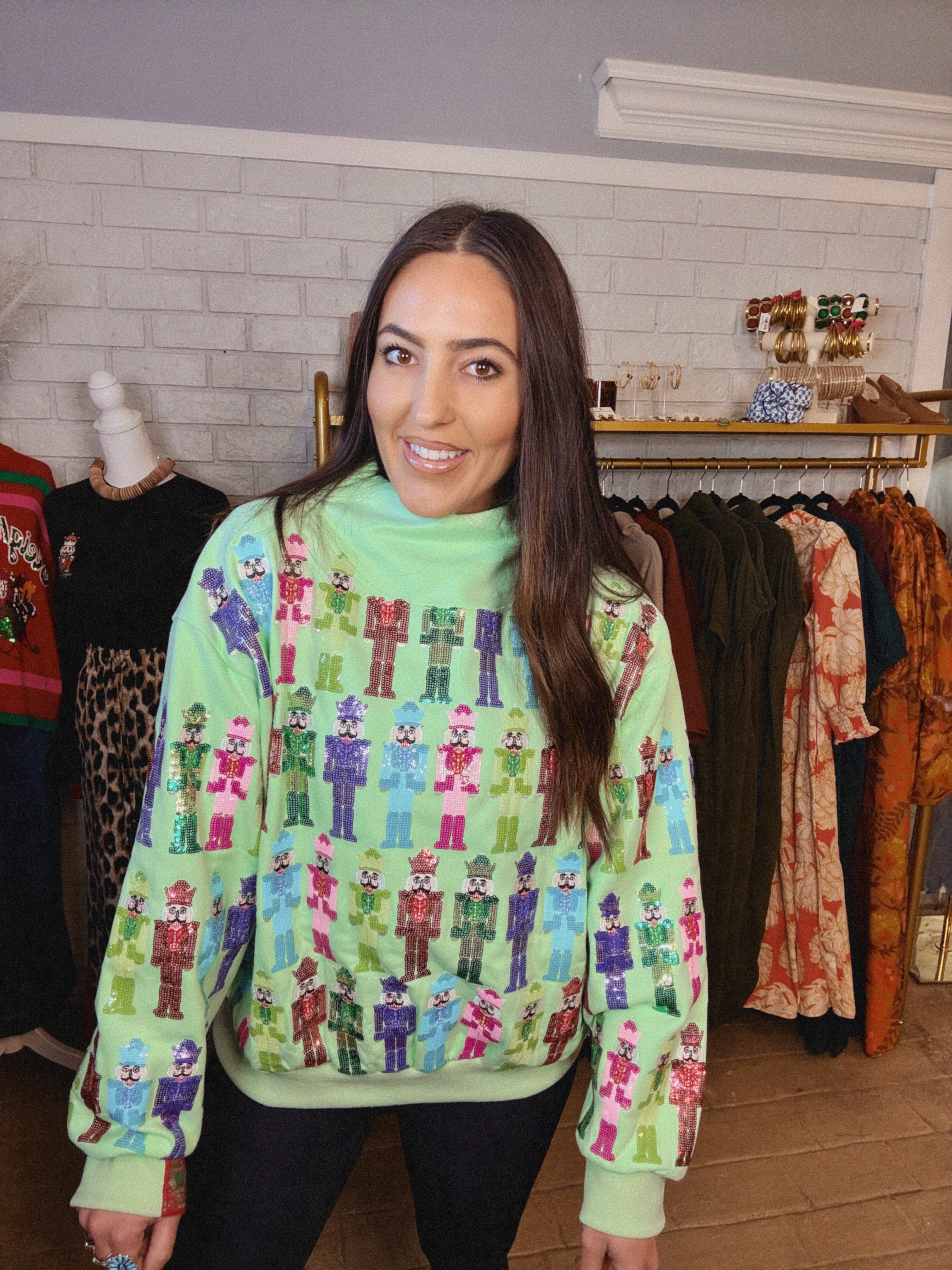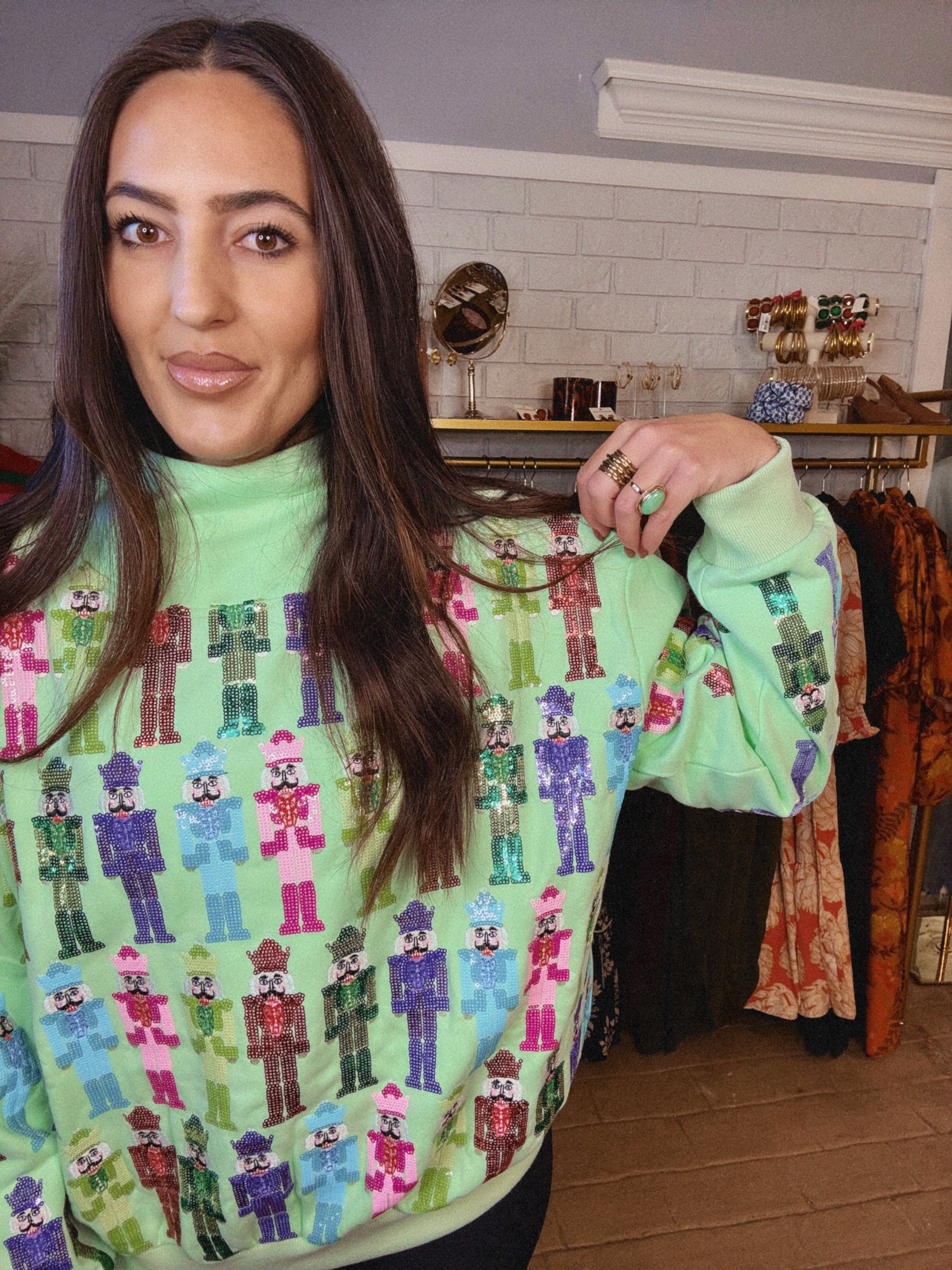 Queen Of Sparkles Mint Multi Nutcracker Sweatshirt - Final Sale