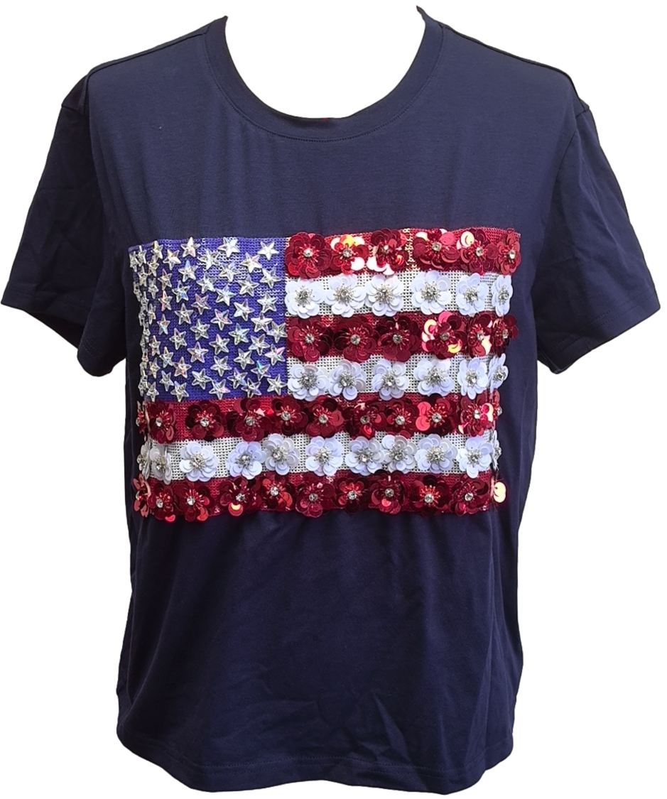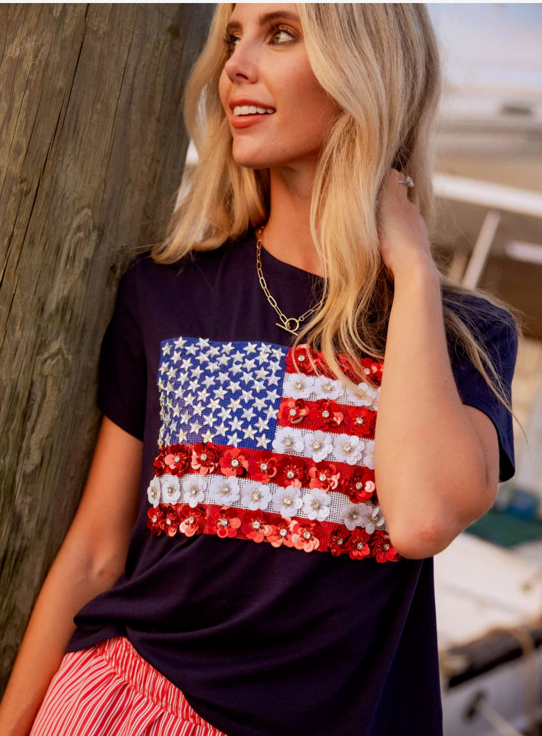Queen Of Sparkles | Navy Flower American Flag Tee - Final Sale