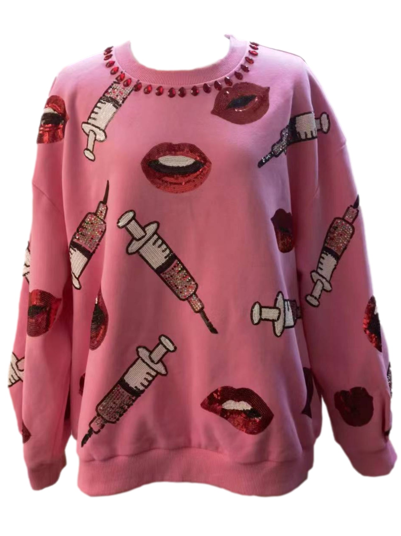 Queen Of Sparkles Pink Lip & Syringe Sweatshirt - Final Sale