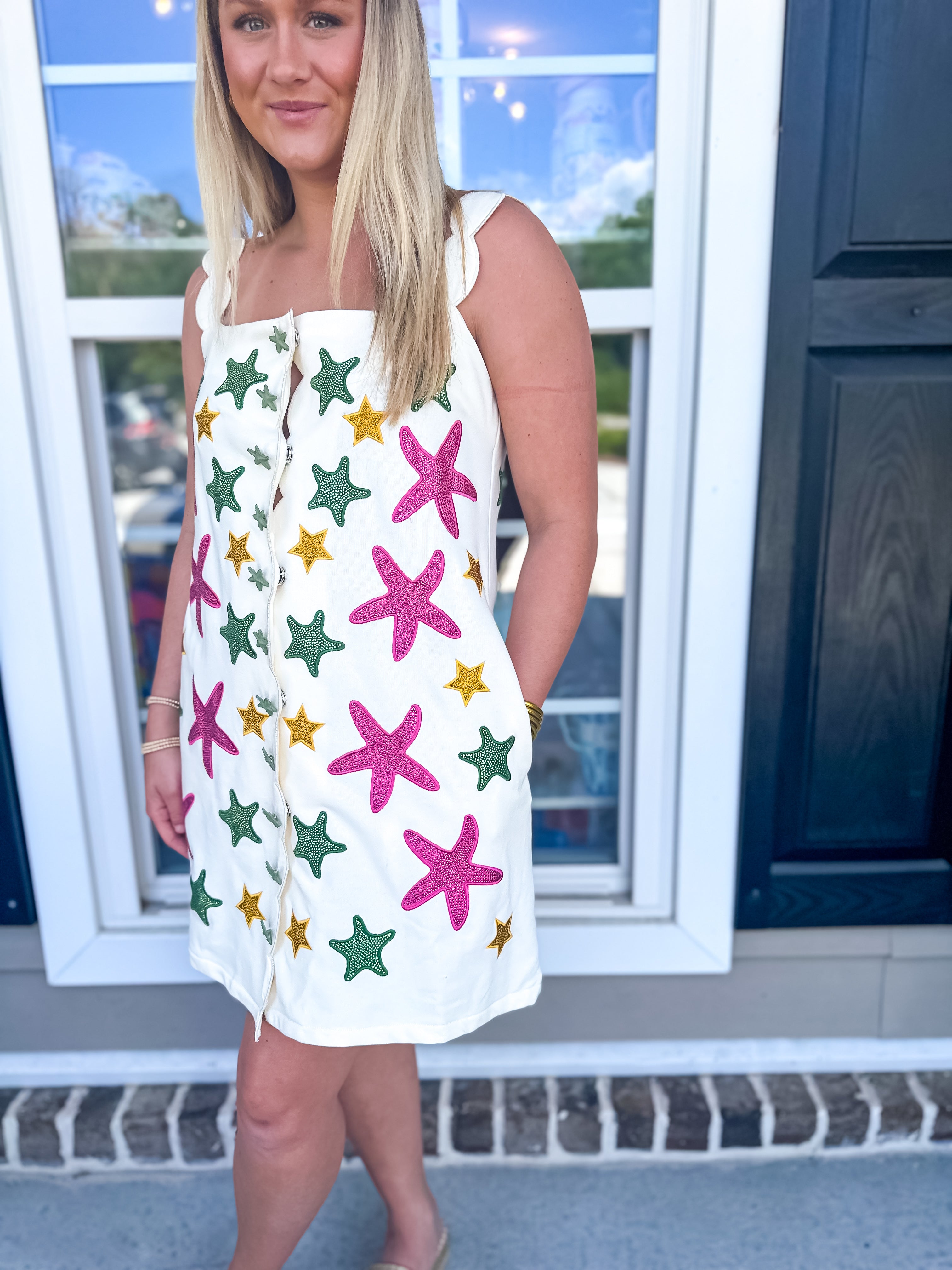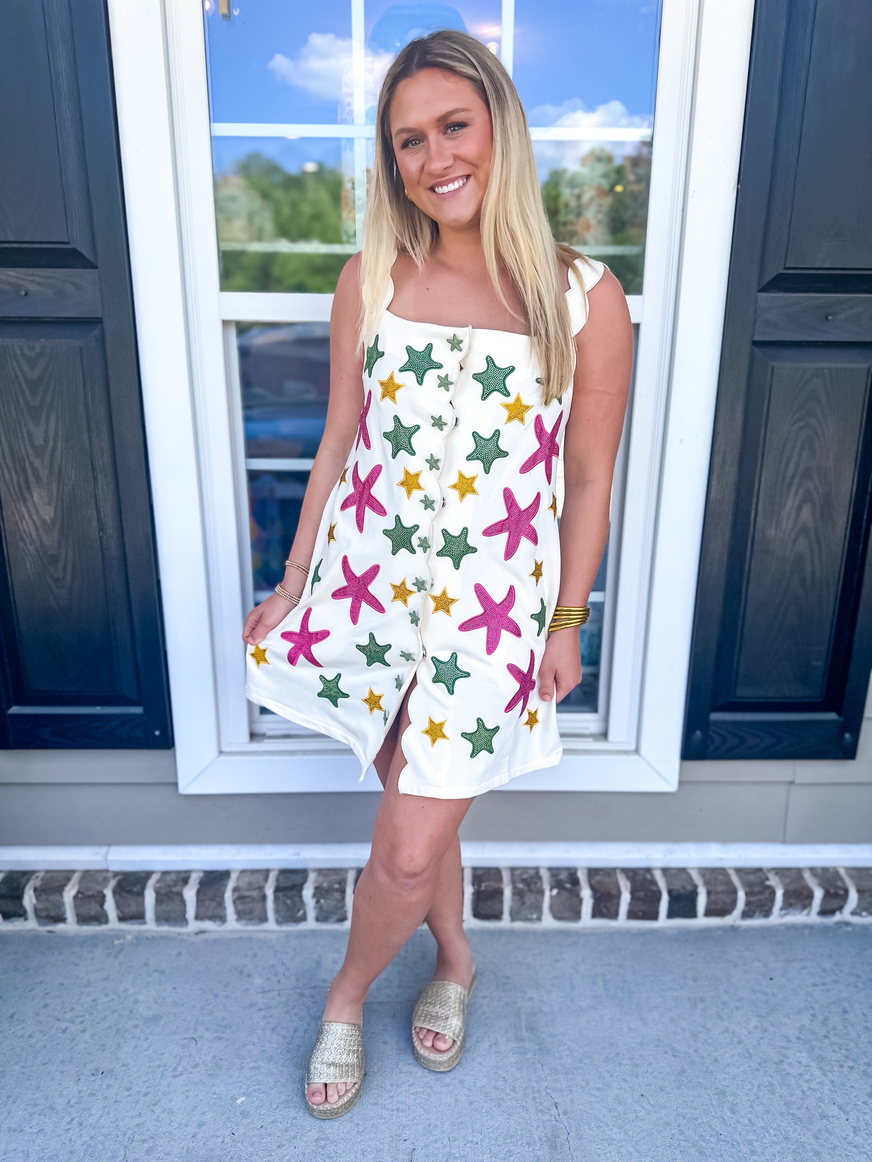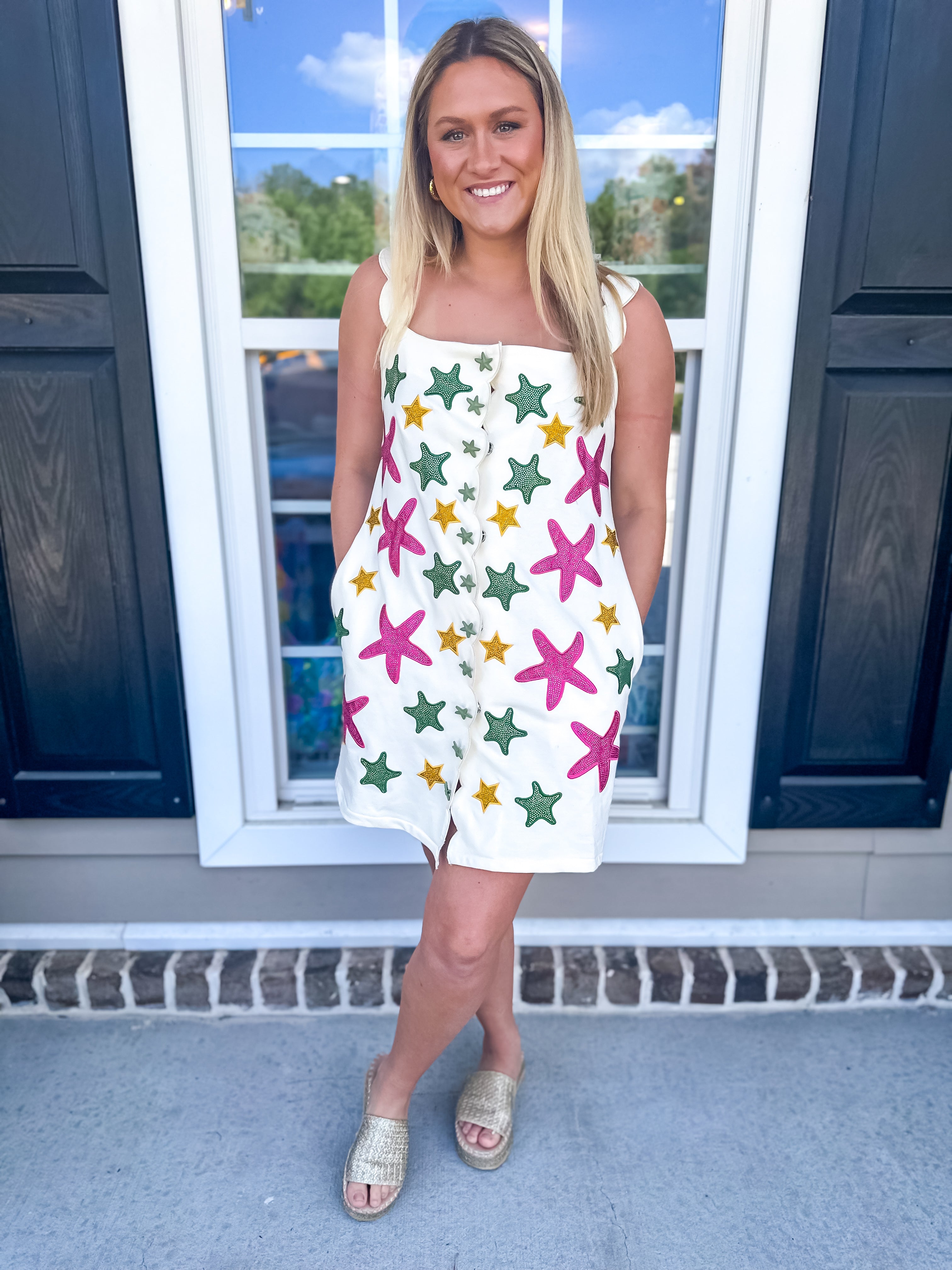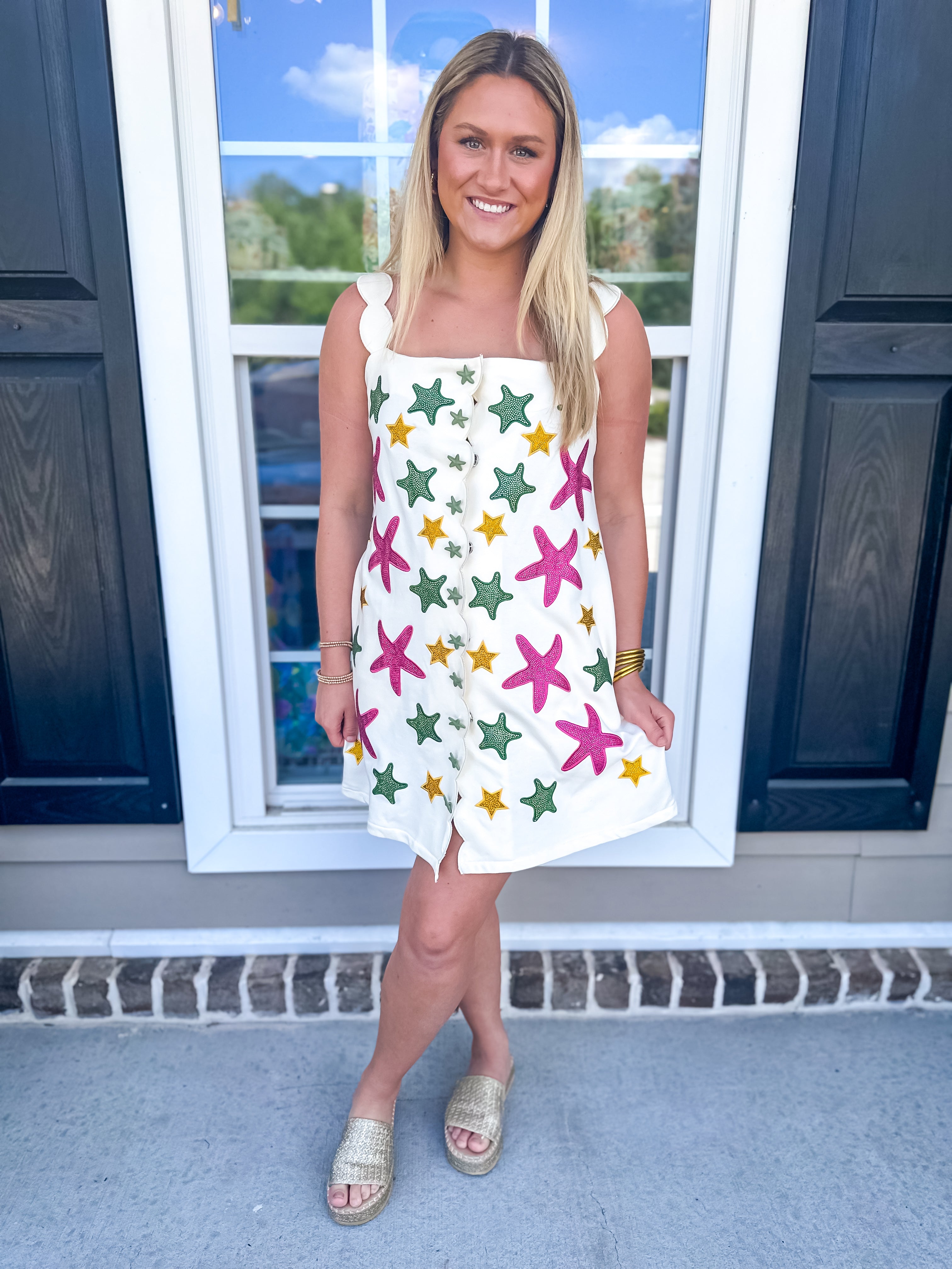 Queen Of Sparkles Scallop Sleeve Starfish Tank Dress - Ivory * Final Sale
