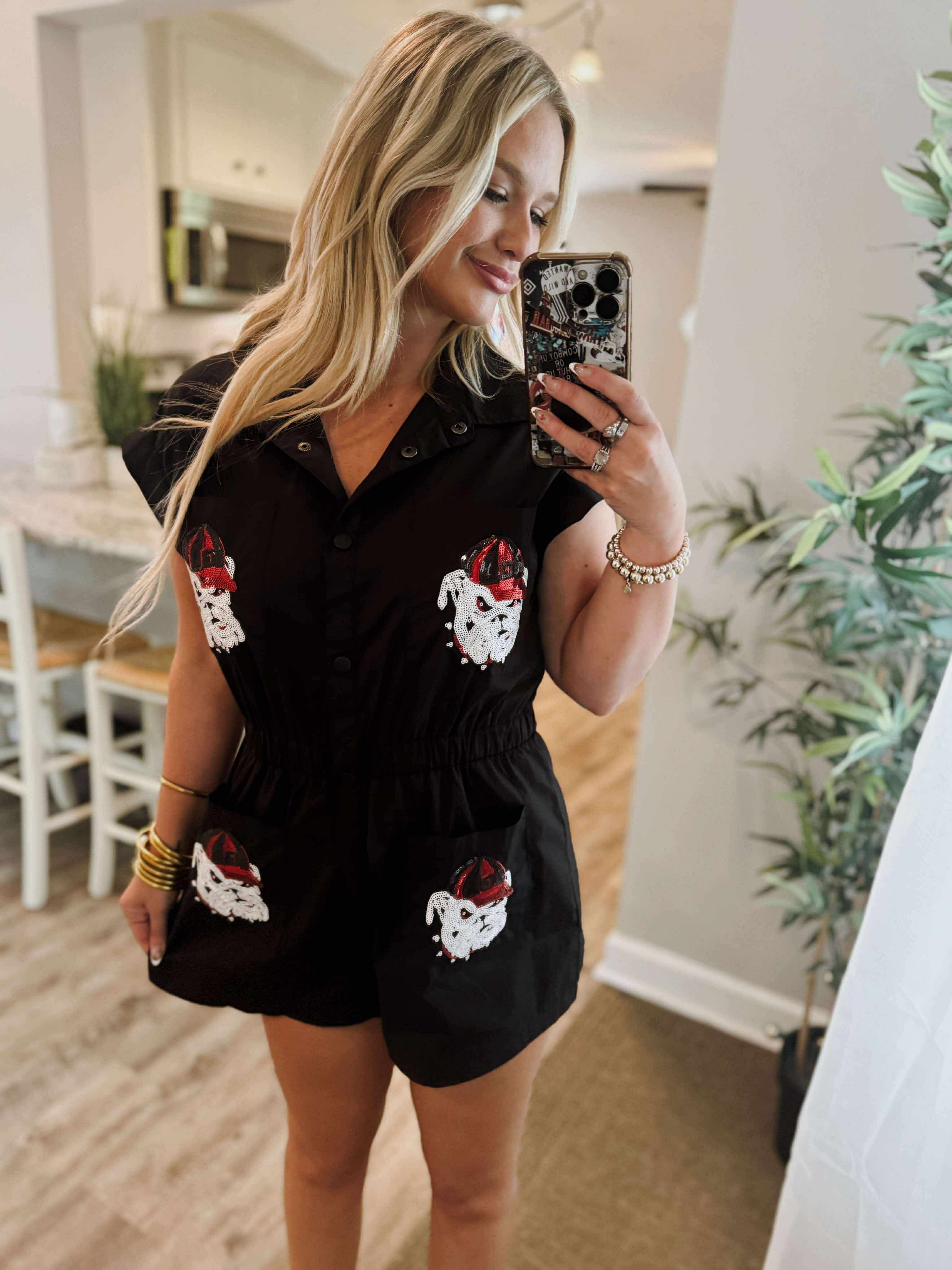 Queen Of Sparkles | UGA Black Mascot Pocket Romper - Final Sale
