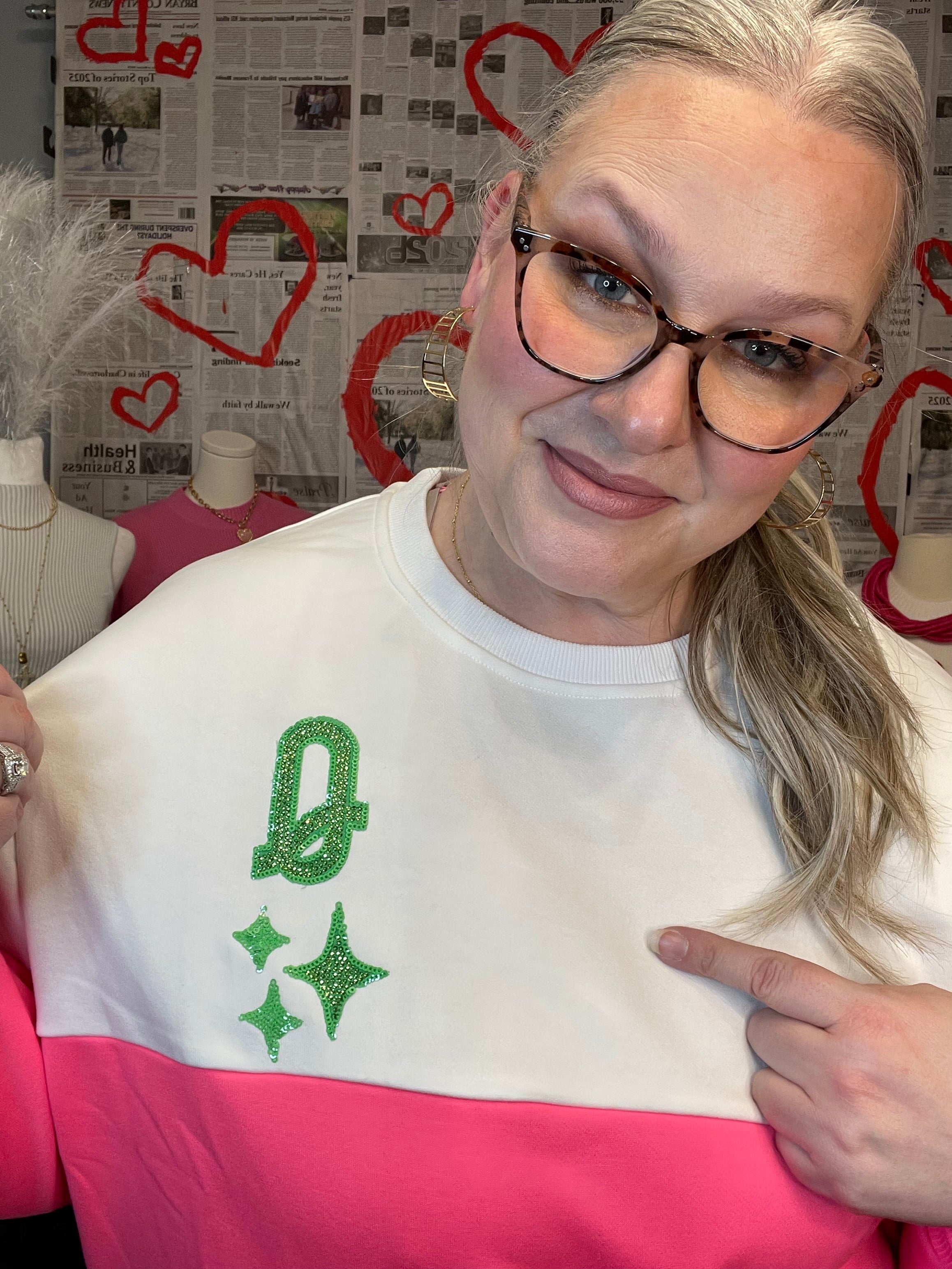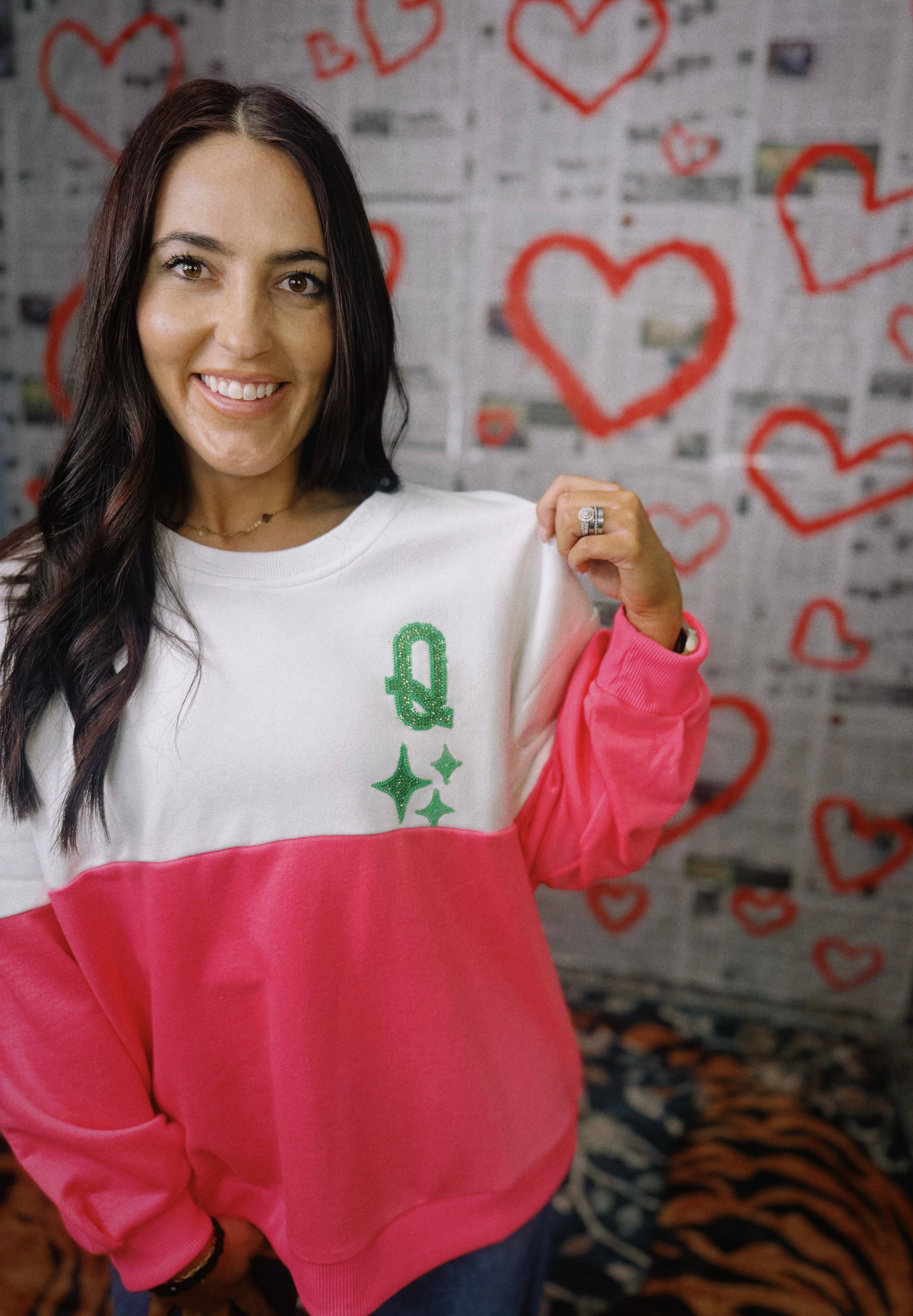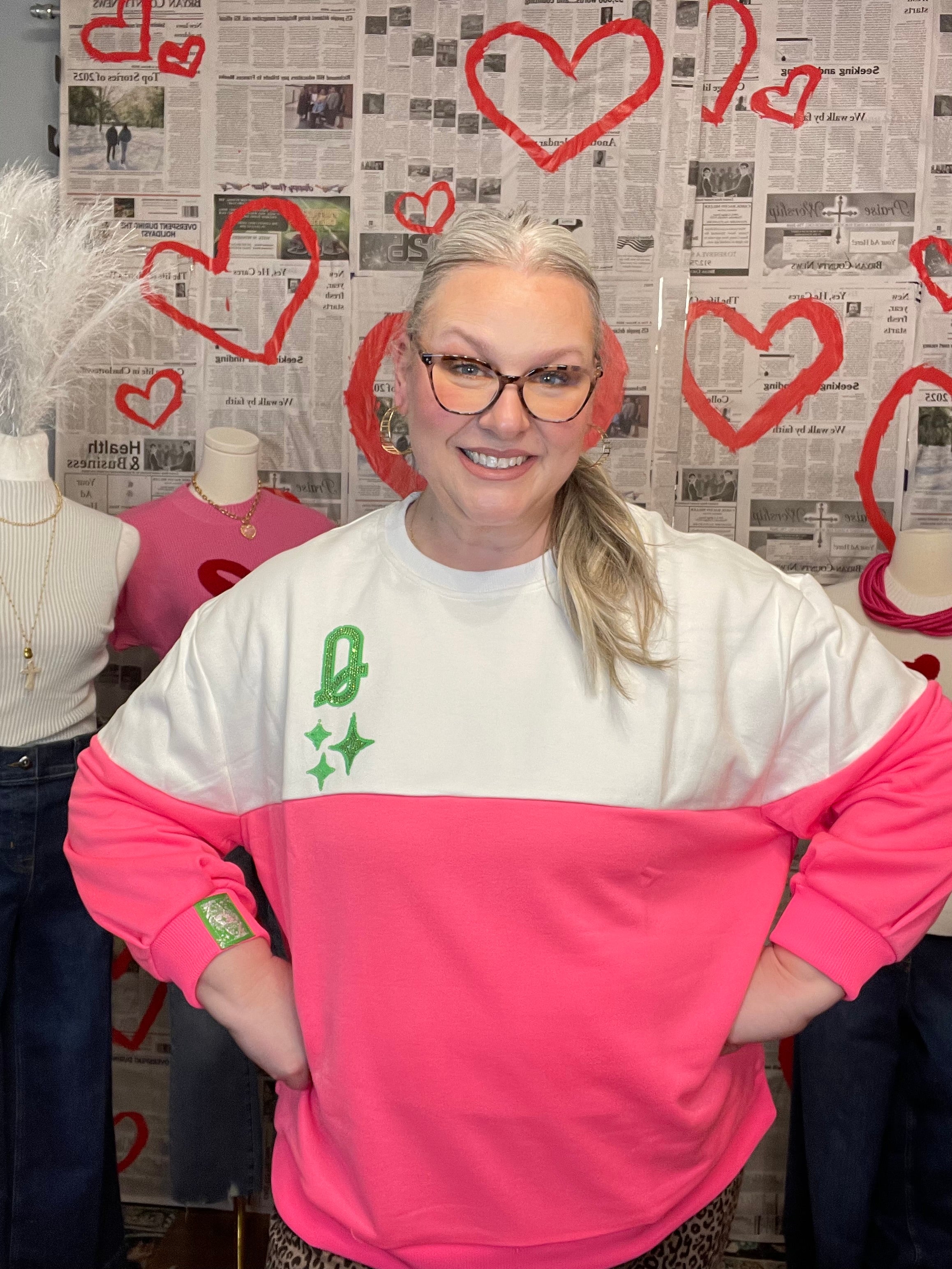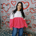 Queen Of Sparkles | White & Neon Pink Colorblock Logo Sweatshirt - Final Sale