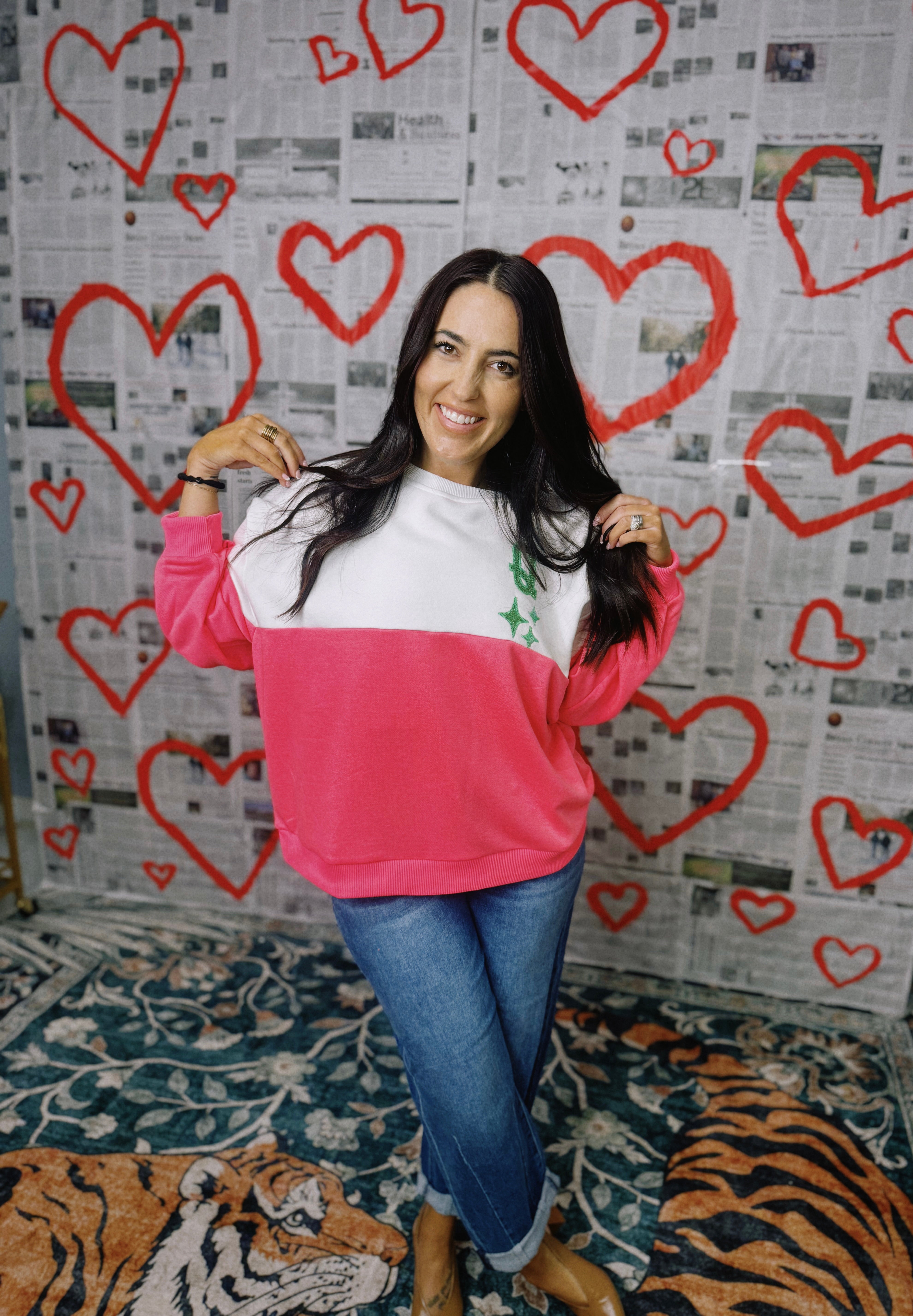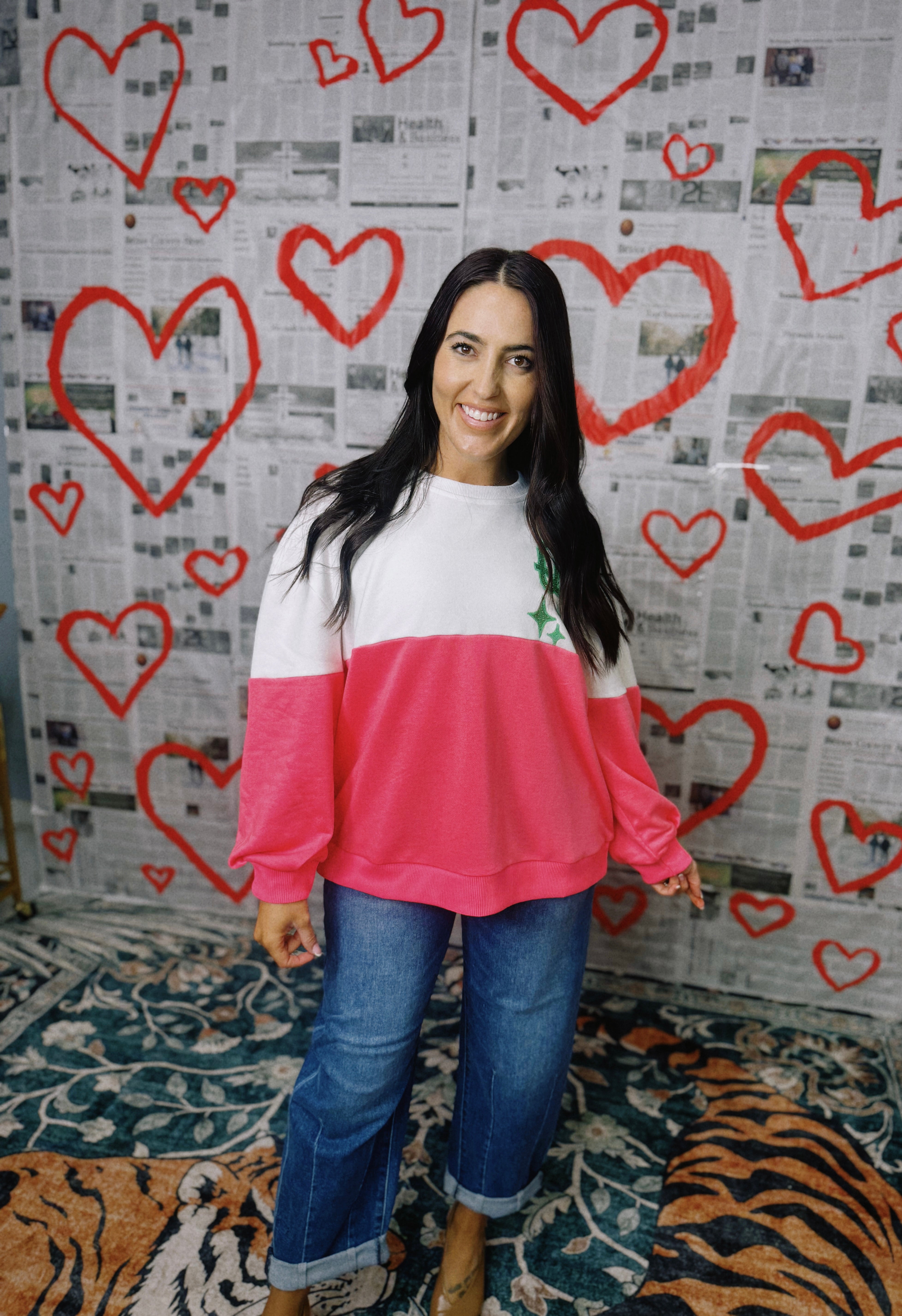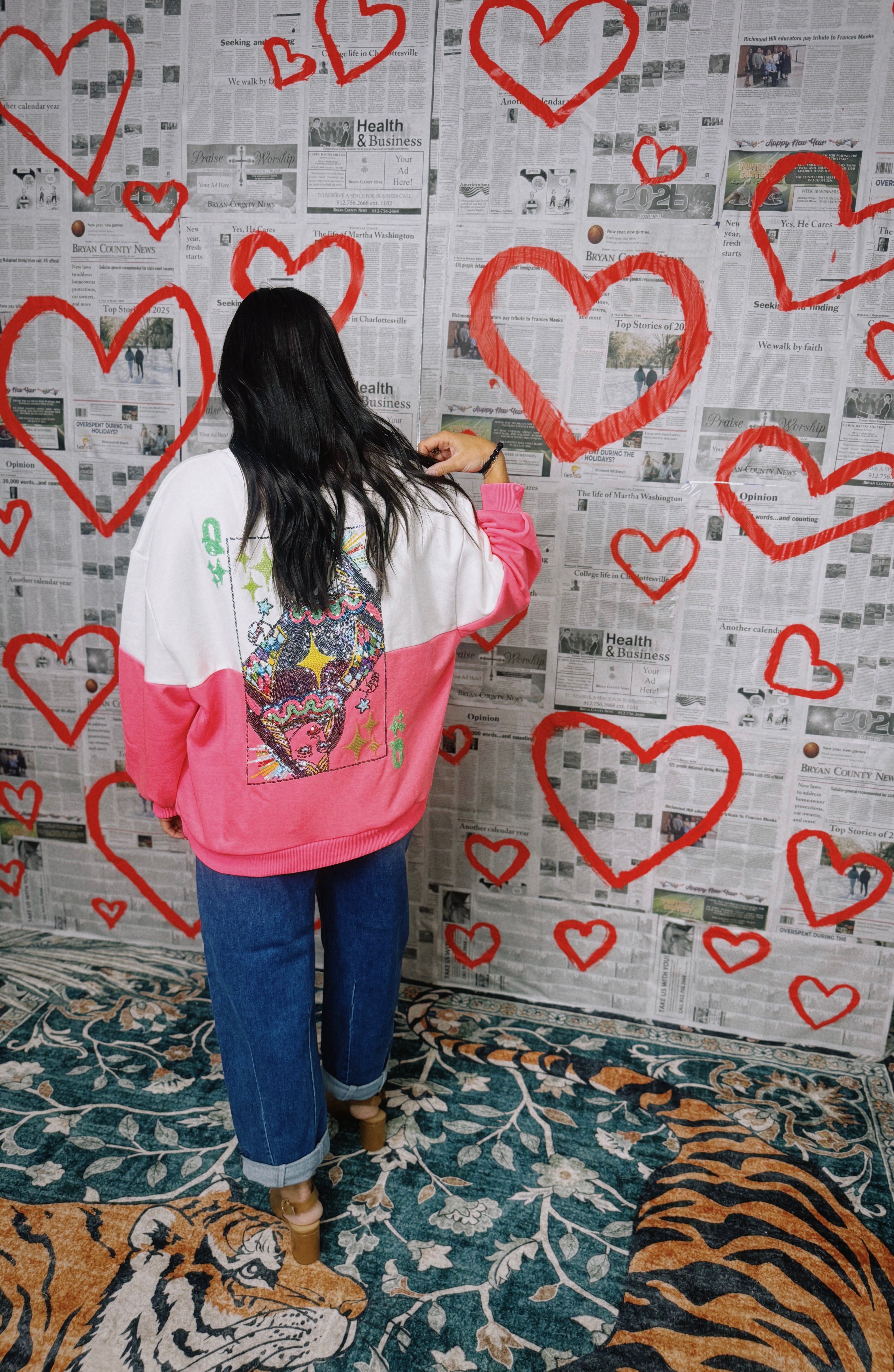 Queen Of Sparkles | White & Neon Pink Colorblock Logo Sweatshirt - Final Sale