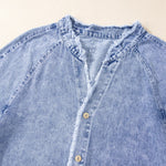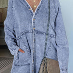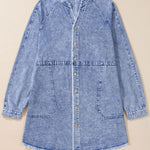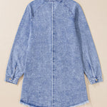 Raw Hem Button Down Long Sleeve Denim Dress