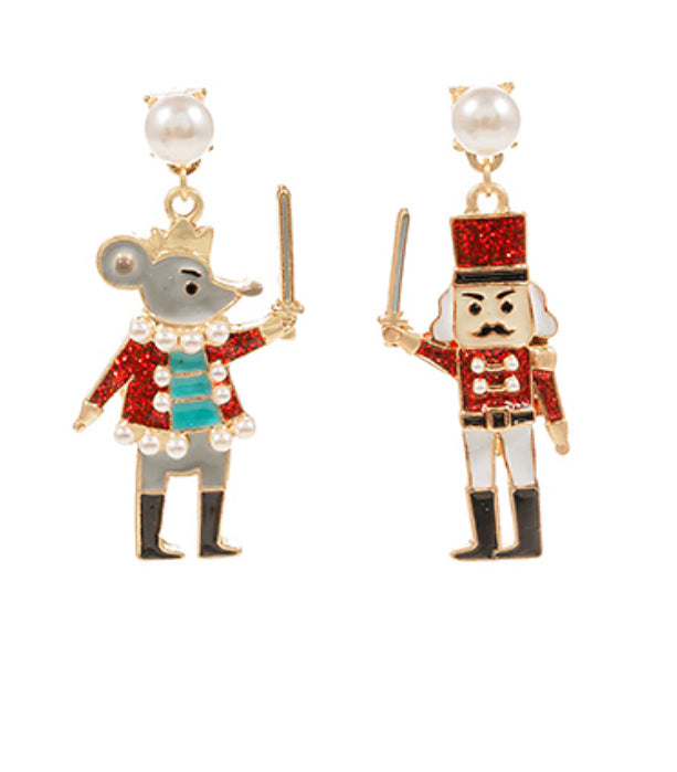 Red Nutcracker + Mouse Drop Earring - Final Sale