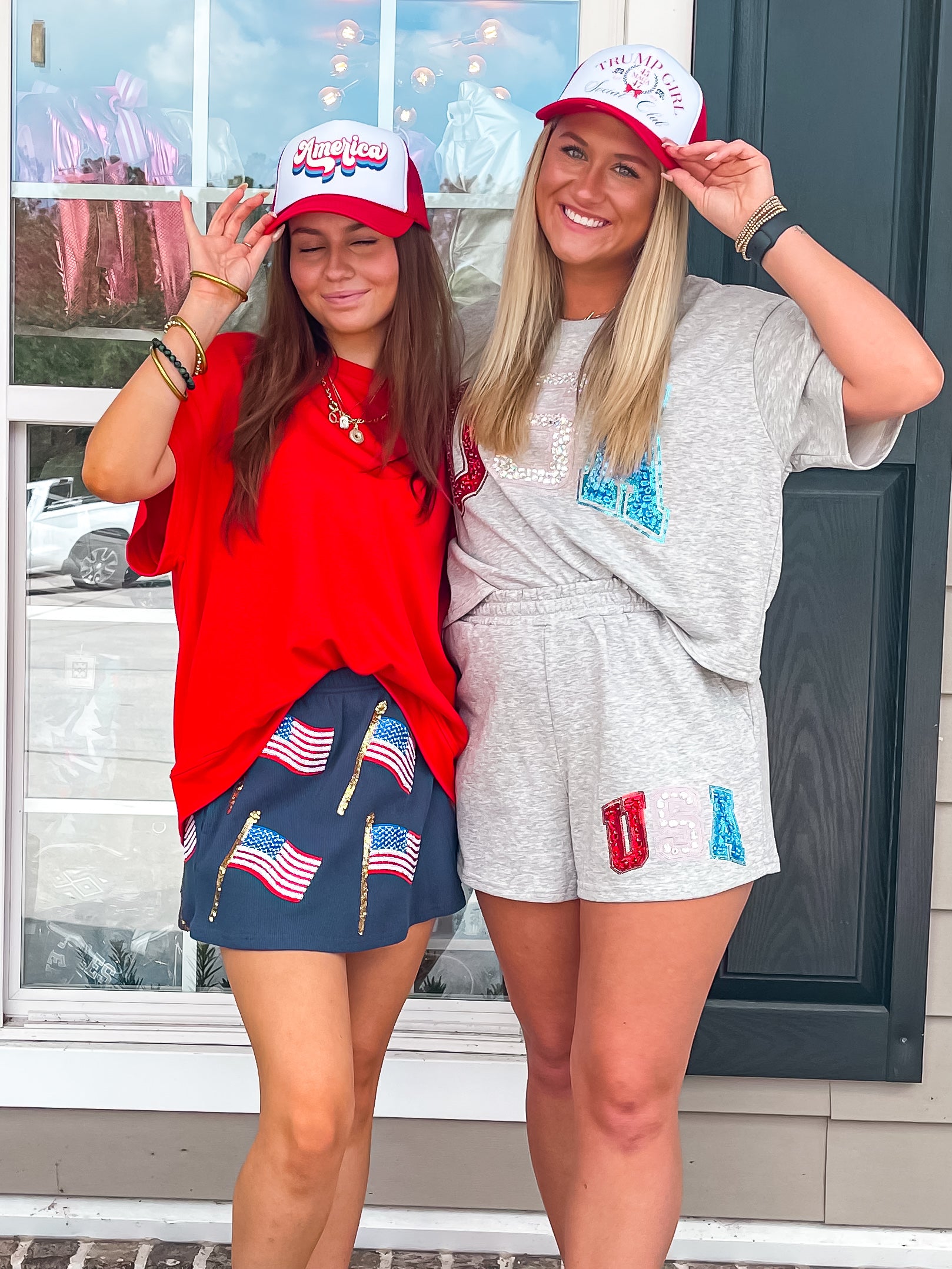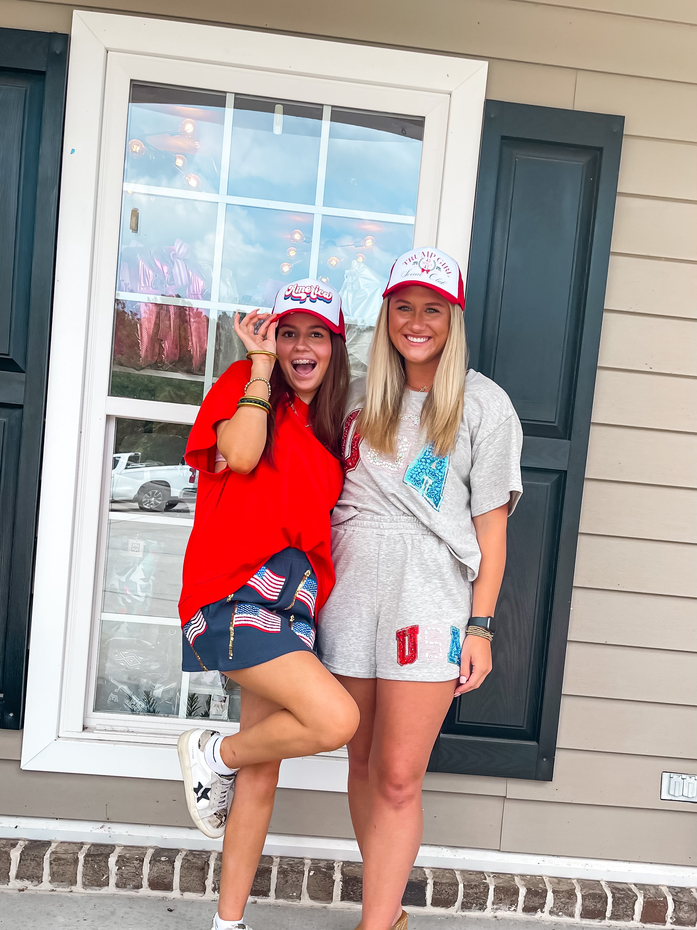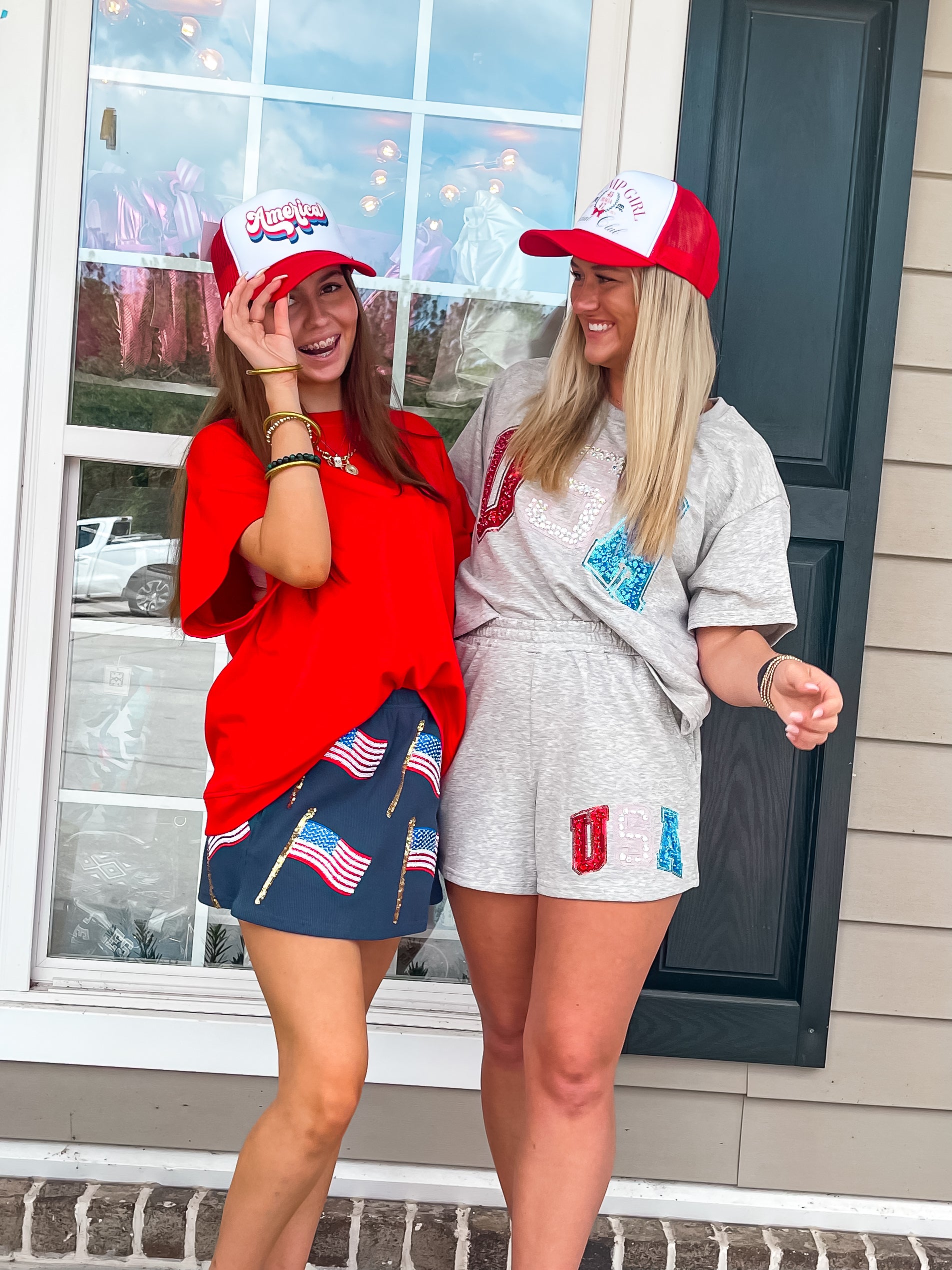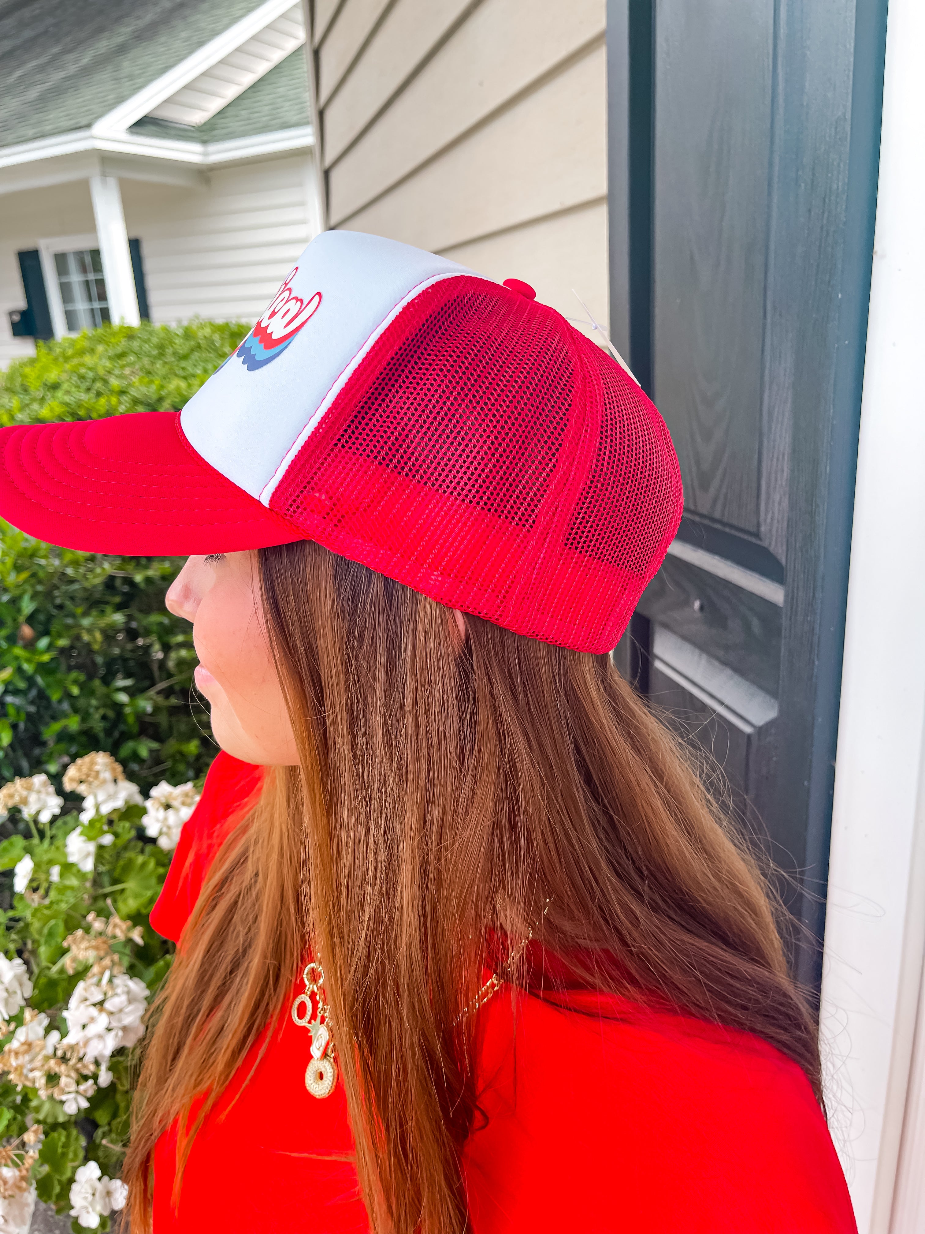 Retro inspried Red, White, & Blue America caps are perfect for Memorial Day, Fourth of July, or just when you are feeling patriotic!! This design is screen printed onto your favorite foam trucker or retro rope hat. Foam truckers have a foam front, mesh back, and adjustable snapback enclousre. Retro rope hats a nylon caps with a rope accent and adjustable snapback enclosure. Add a trucker hat chain and your patriotic look is ready!