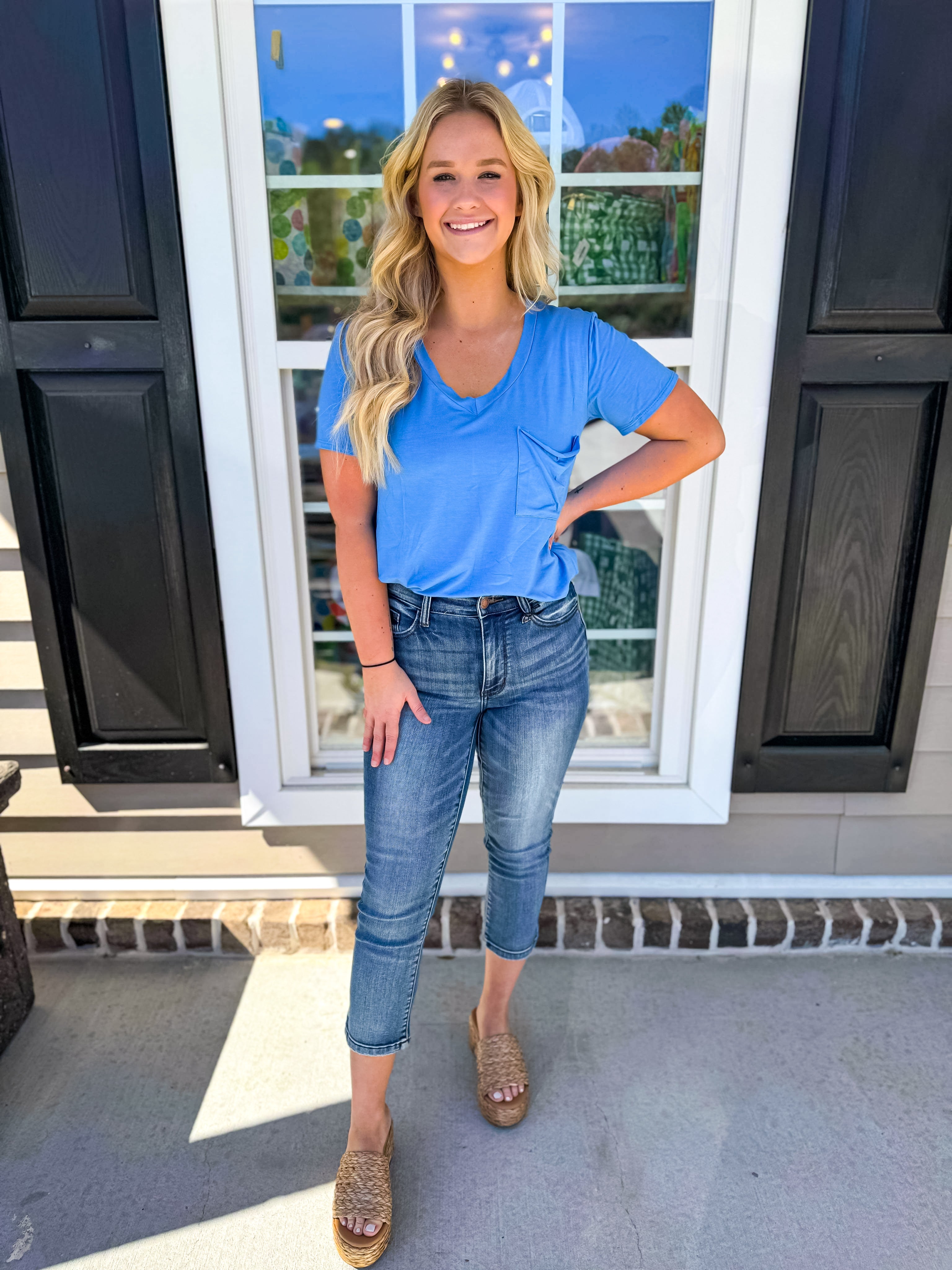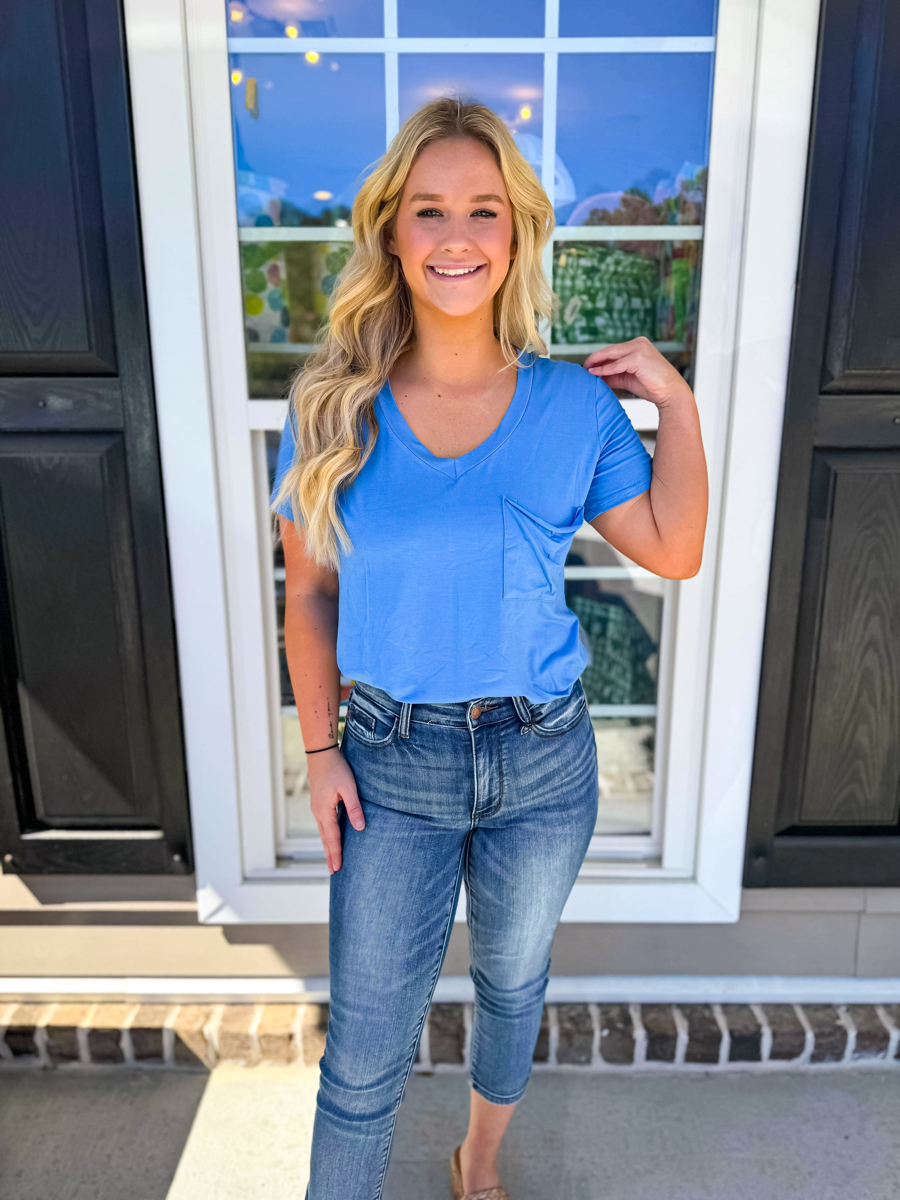 Modal pocket top! This is a great basic to have in your closet. It feels like butter and is a must have.