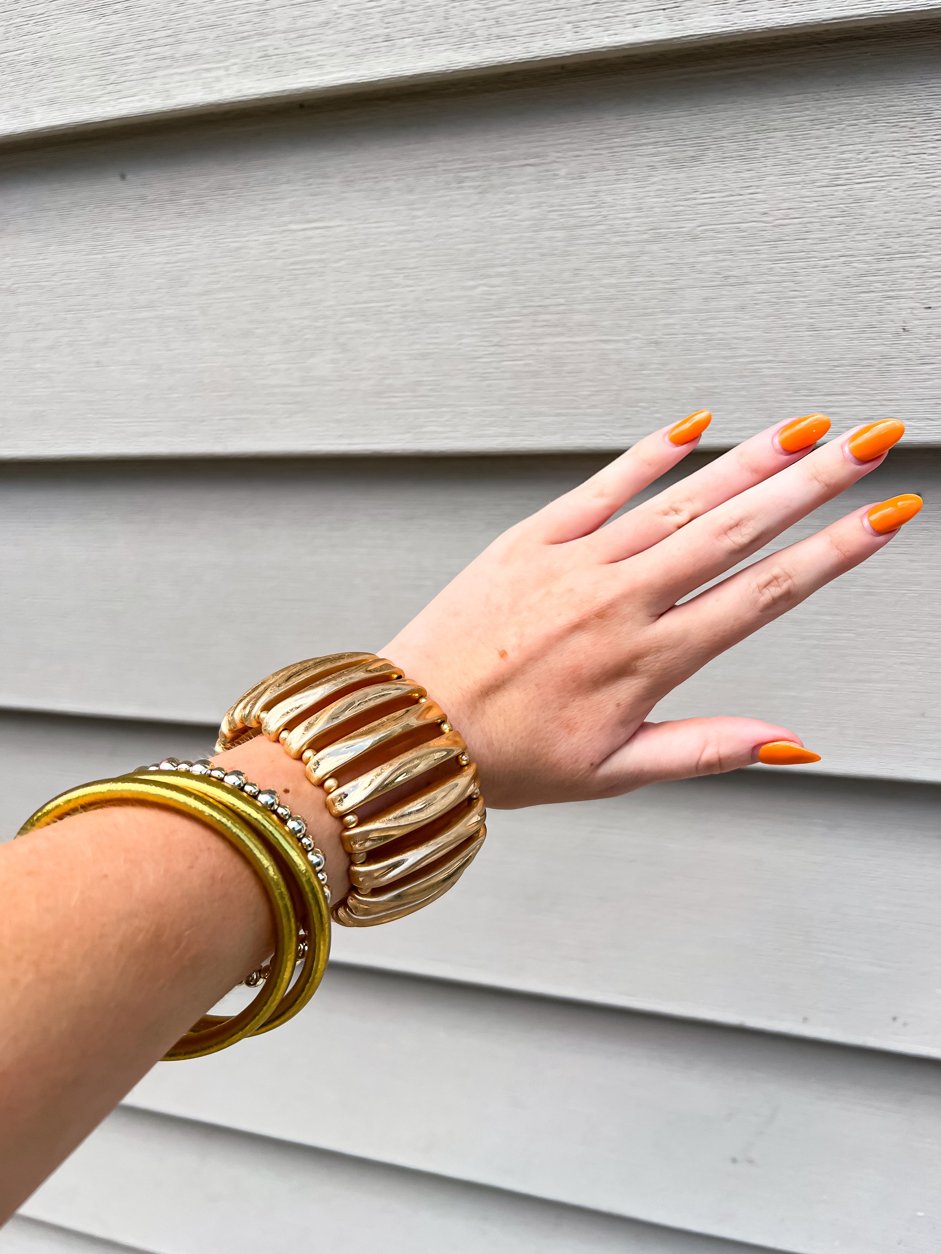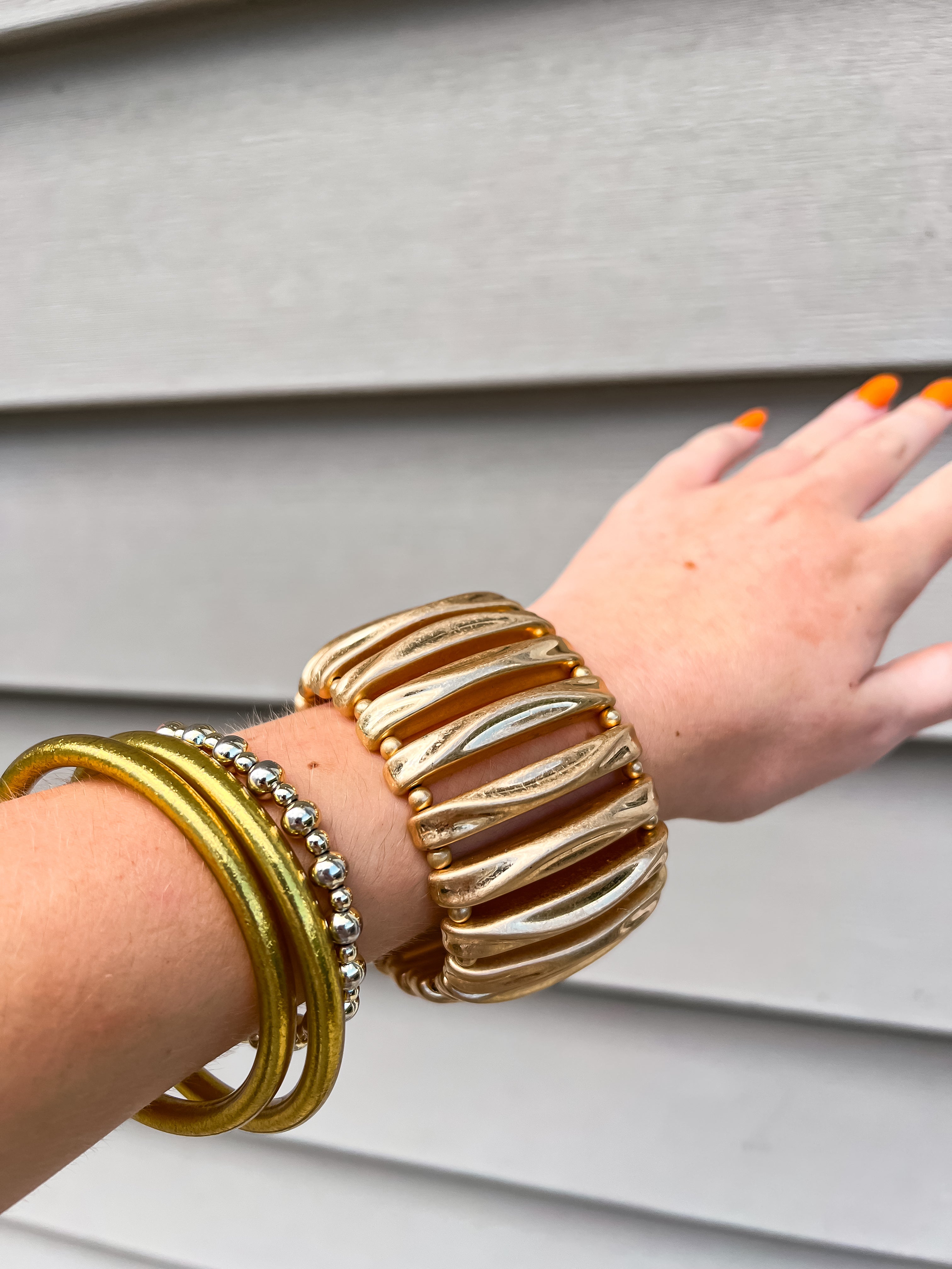 The best bracelet to add to your outfit. It does stretch for easy on and off.