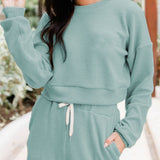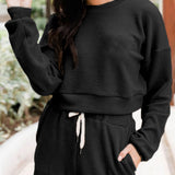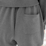 Ribbed Round Neck Long Sleeve Top and Shorts Set