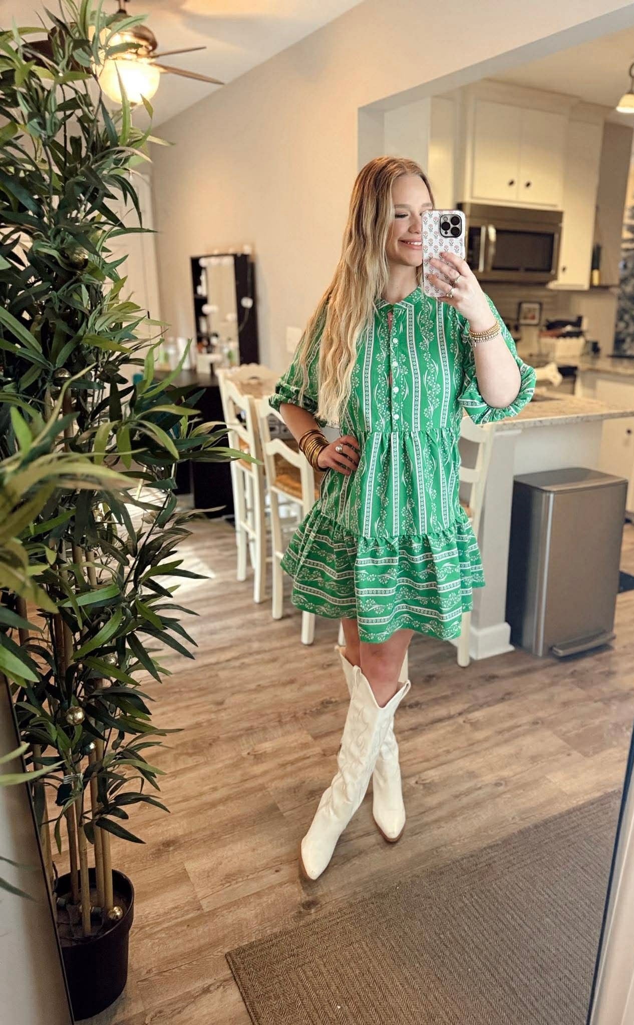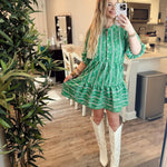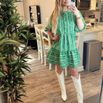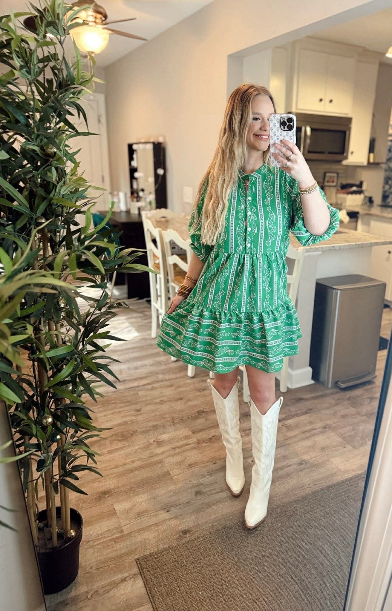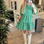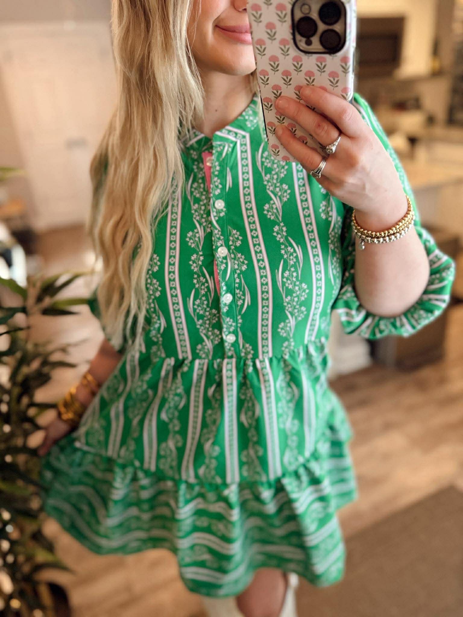 Meet the Riley Mini Dress: easygoing, charming, and ready for anything. Designed with comfy 3/4 sleeves finished with elastic and contrast grosgrain trim along the button placket, it’s all about thoughtful details. The tiered mini skirt adds soft movement and shape, while side pockets keep things effortlessly practical. A feel-good favorite you’ll reach for on repeat.
