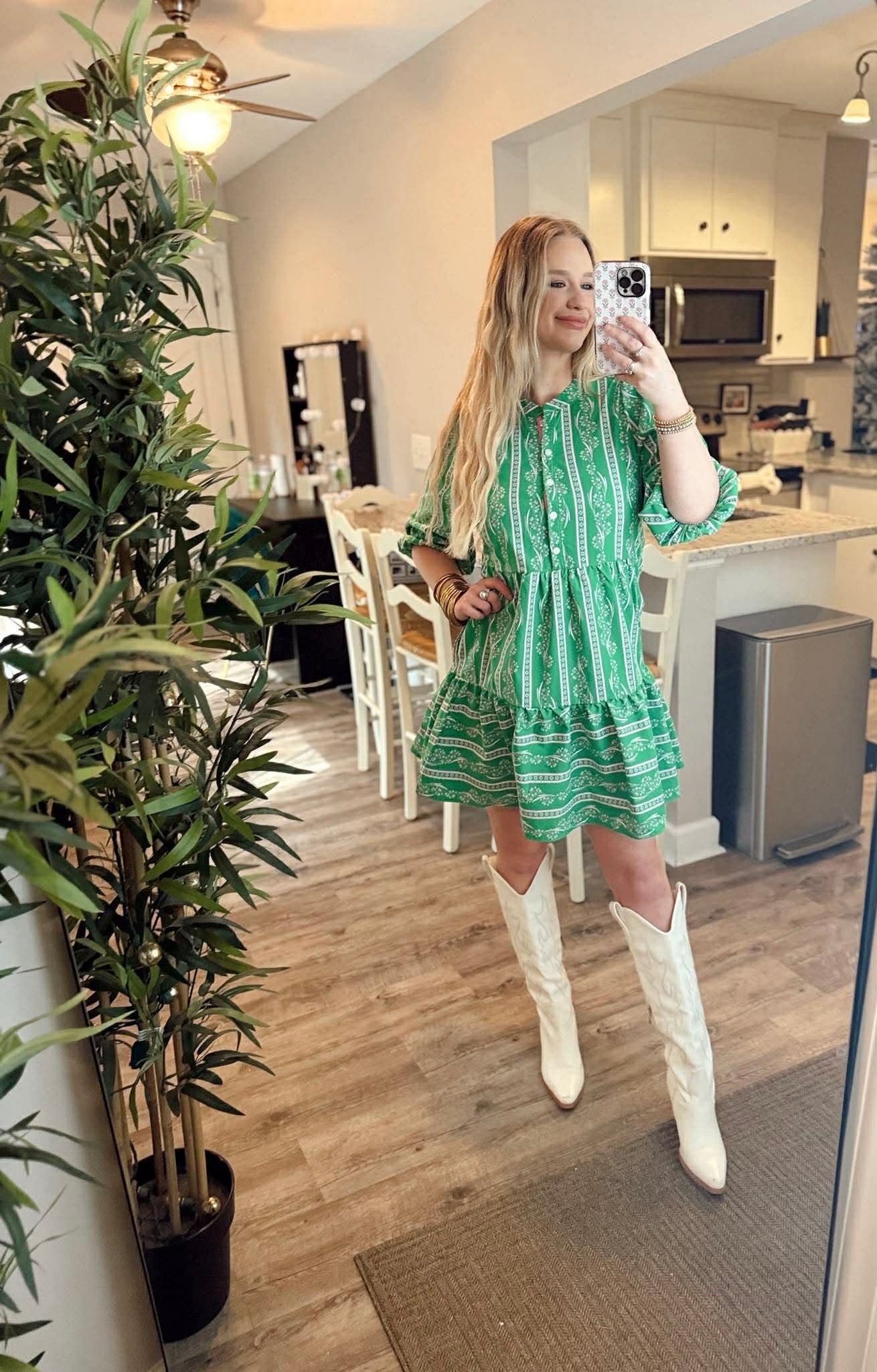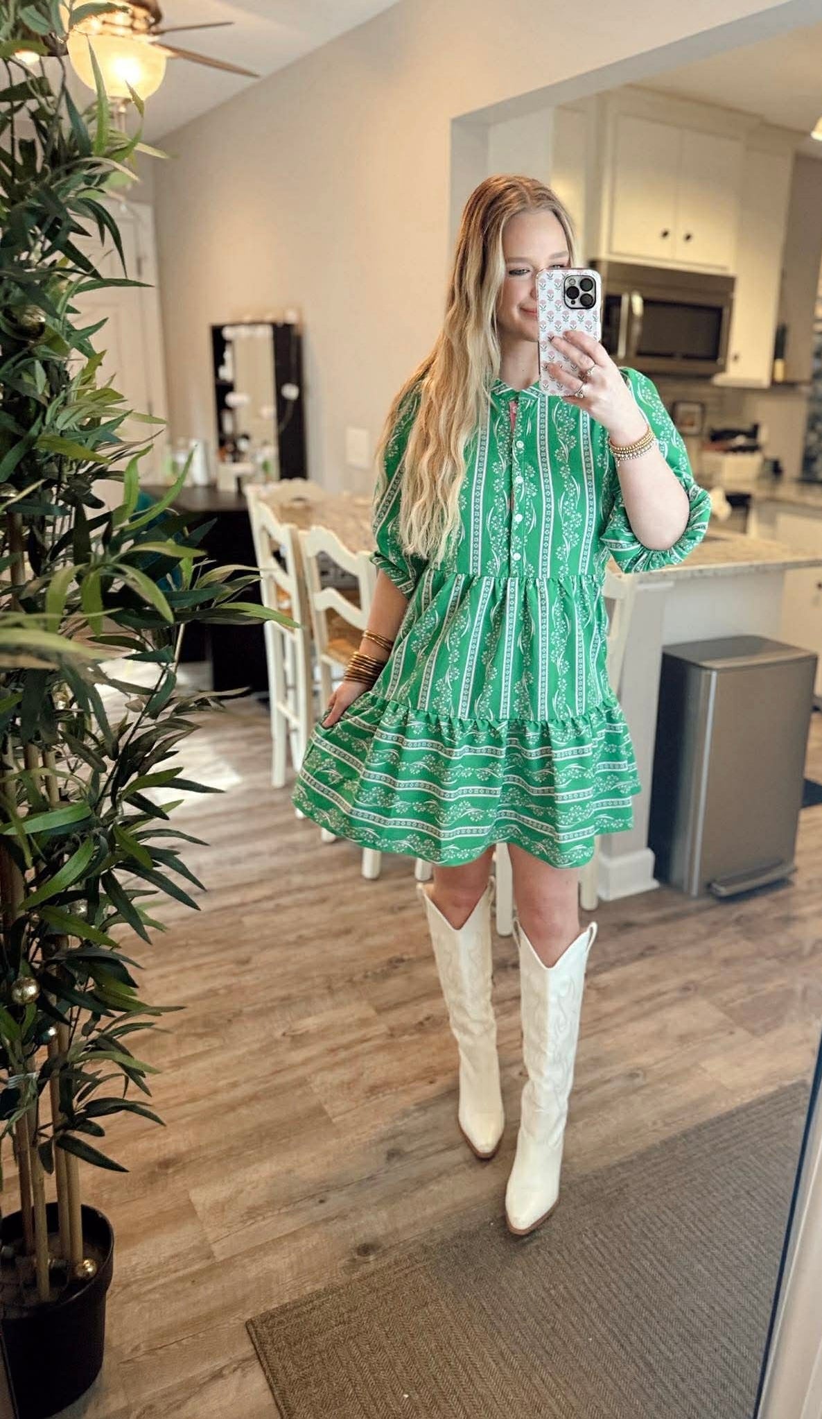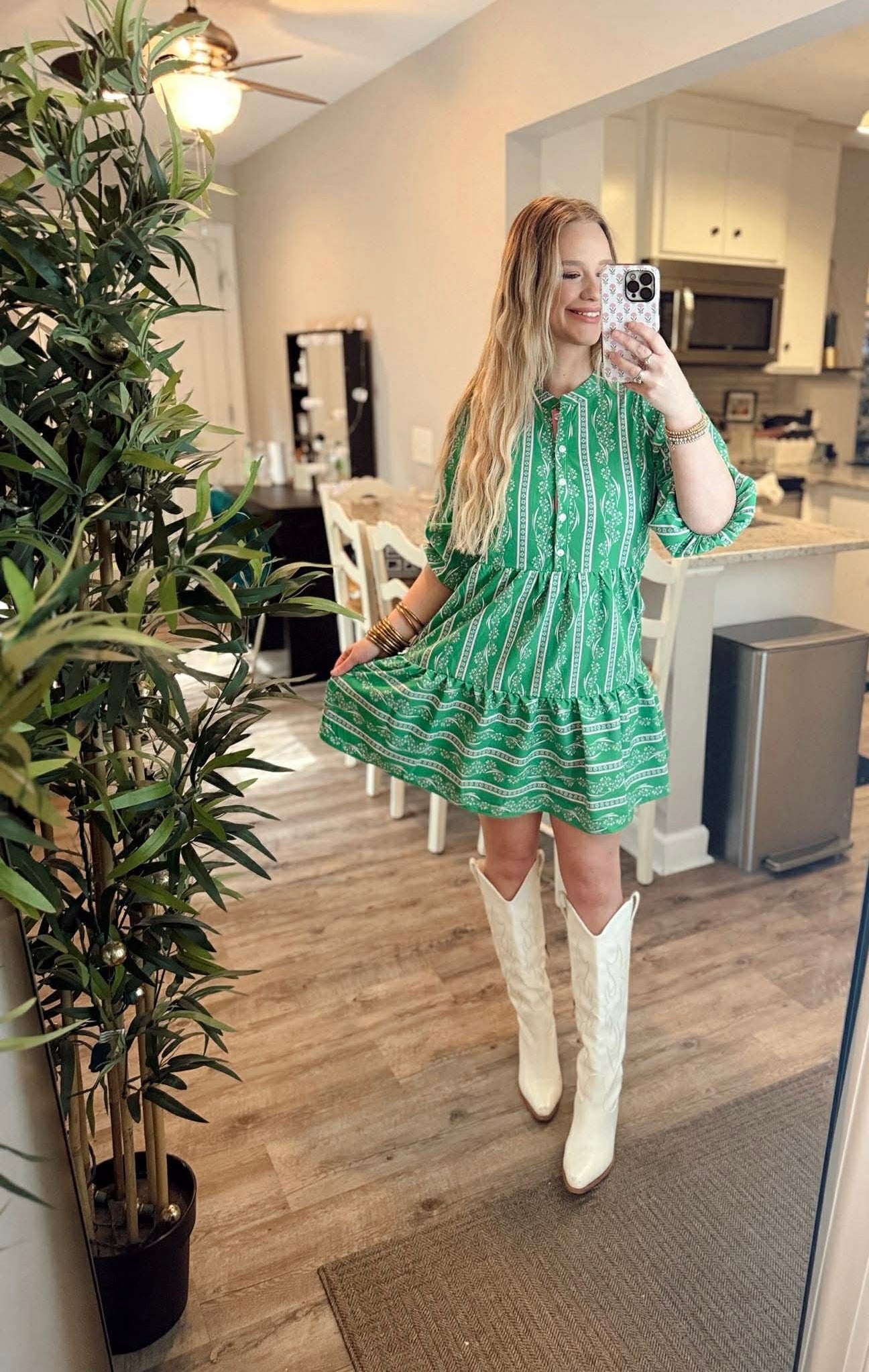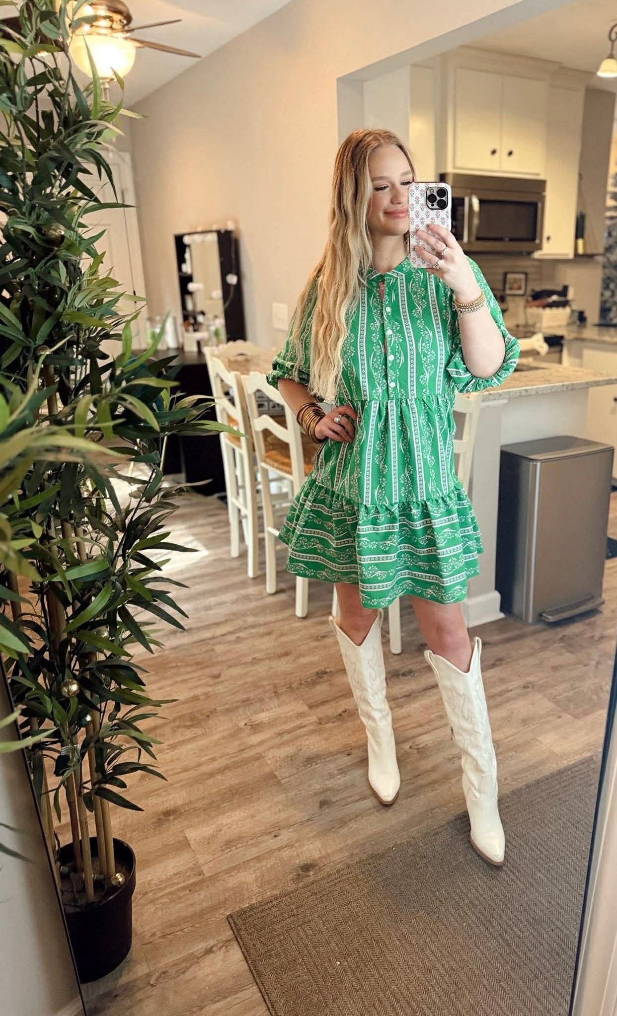Meet the Riley Mini Dress: easygoing, charming, and ready for anything. Designed with comfy 3/4 sleeves finished with elastic and contrast grosgrain trim along the button placket, it’s all about thoughtful details. The tiered mini skirt adds soft movement and shape, while side pockets keep things effortlessly practical. A feel-good favorite you’ll reach for on repeat.