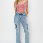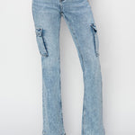 The high rise cargo flare jeans combine utility and style for a contemporary look! Featuring a flattering high-waisted design, these jeans enhance your silhouette while providing comfort. The cargo pockets add a functional element, making them perfect for storing essentials. With a flared leg, they create a trendy retro vibe that pairs well with both casual and dressy tops. Crafted from soft, durable fabric, they ensure all-day wearability. Embrace a bold fashion statement with these versatile cargo flare jeans!