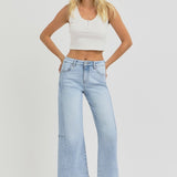 RISEN Full Size High Rise Seamed Detail Wide Leg Crop Jeans
