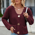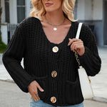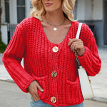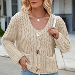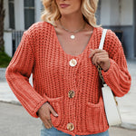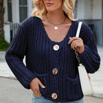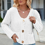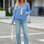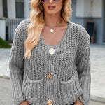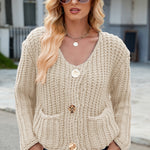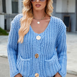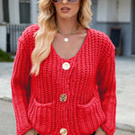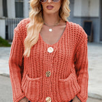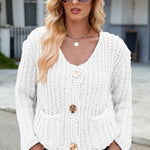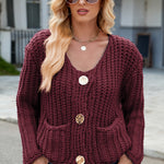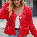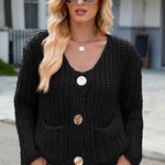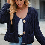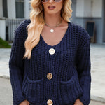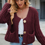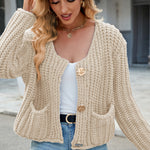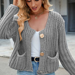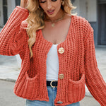 Round Neck Button Up Cardigan with Pockets