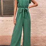 Ruffled Surplice Cap Sleeve Jumpsuit