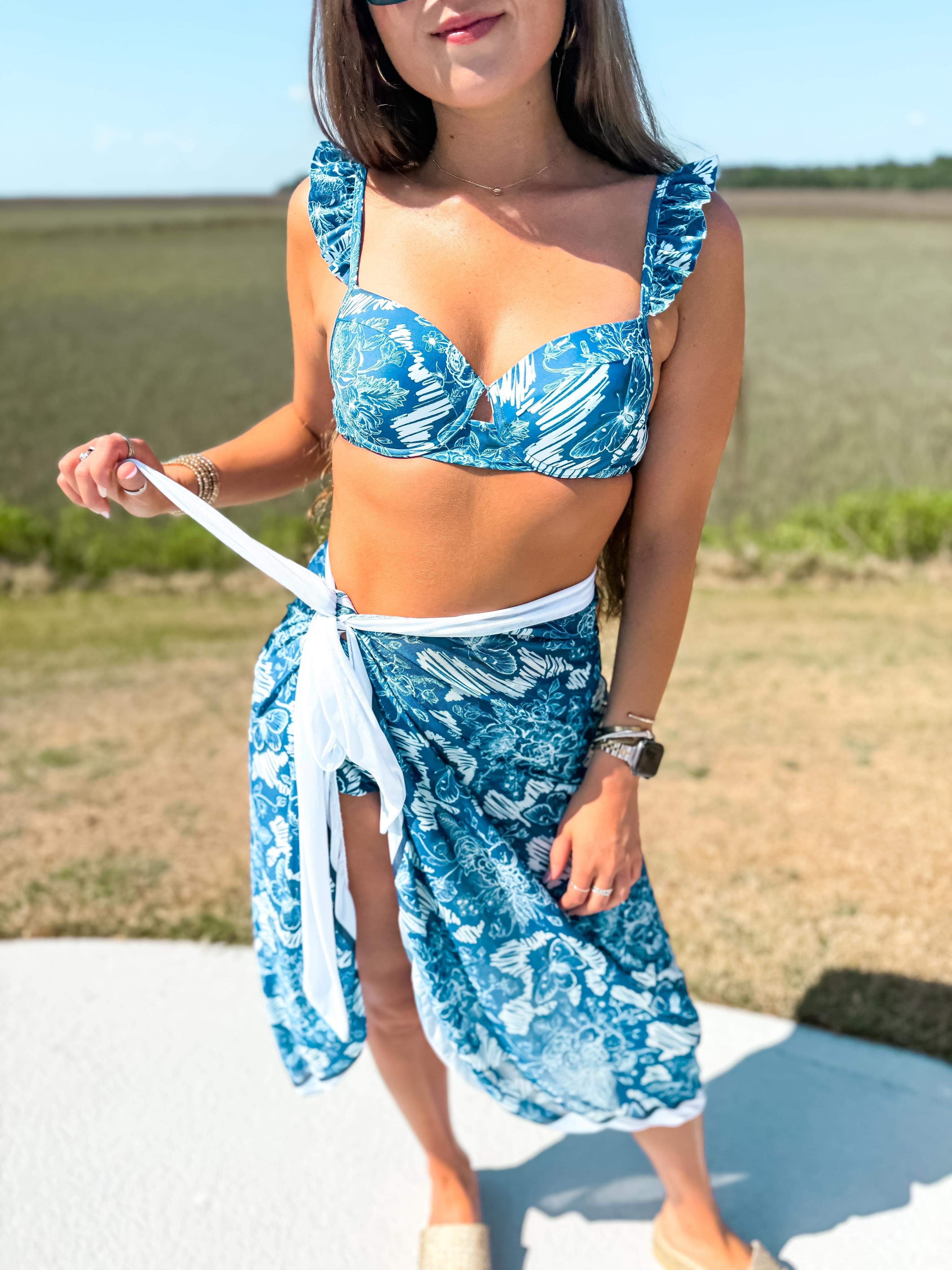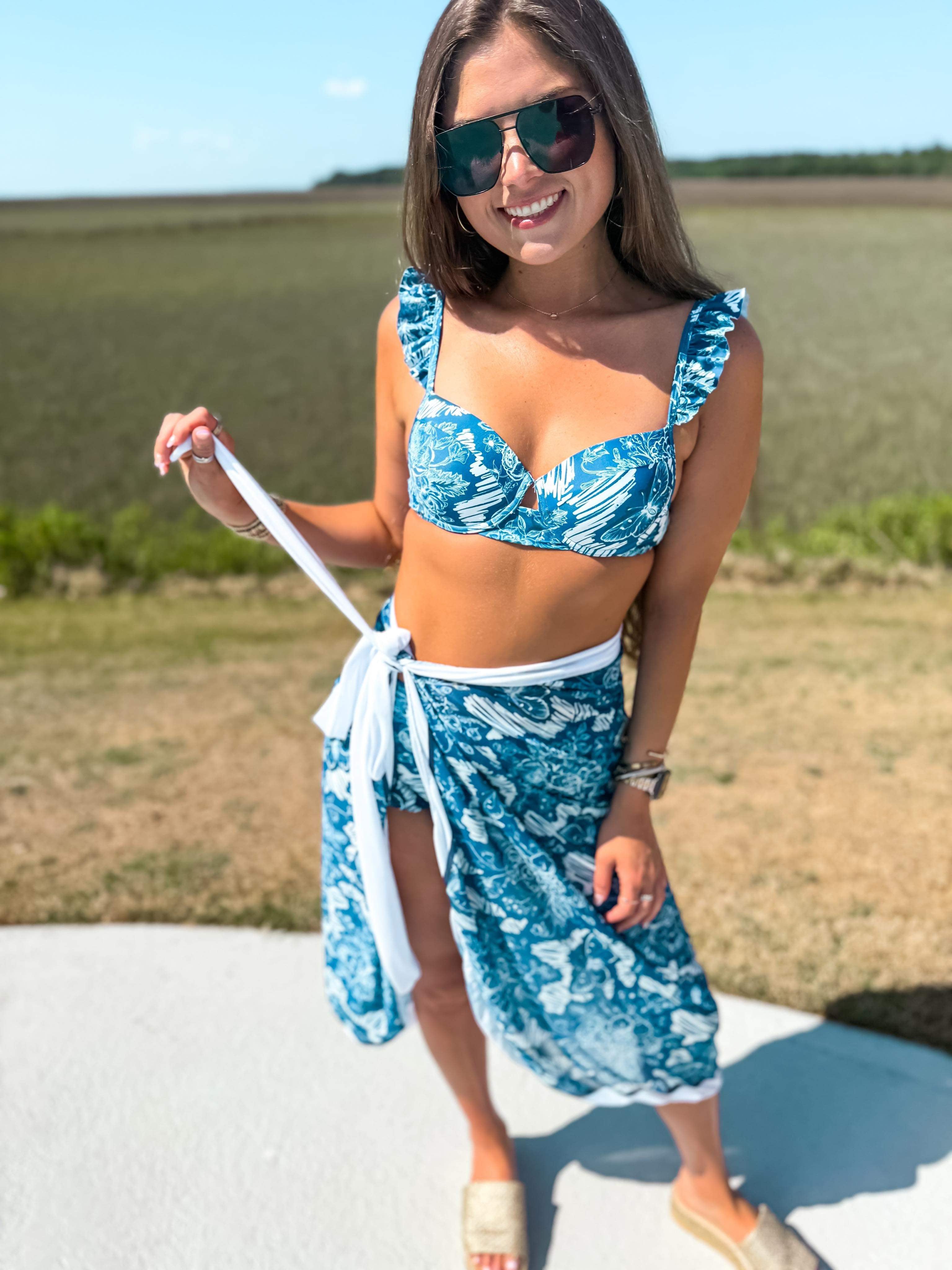Ruffled Two Piece Bikini & Wrap Skirt