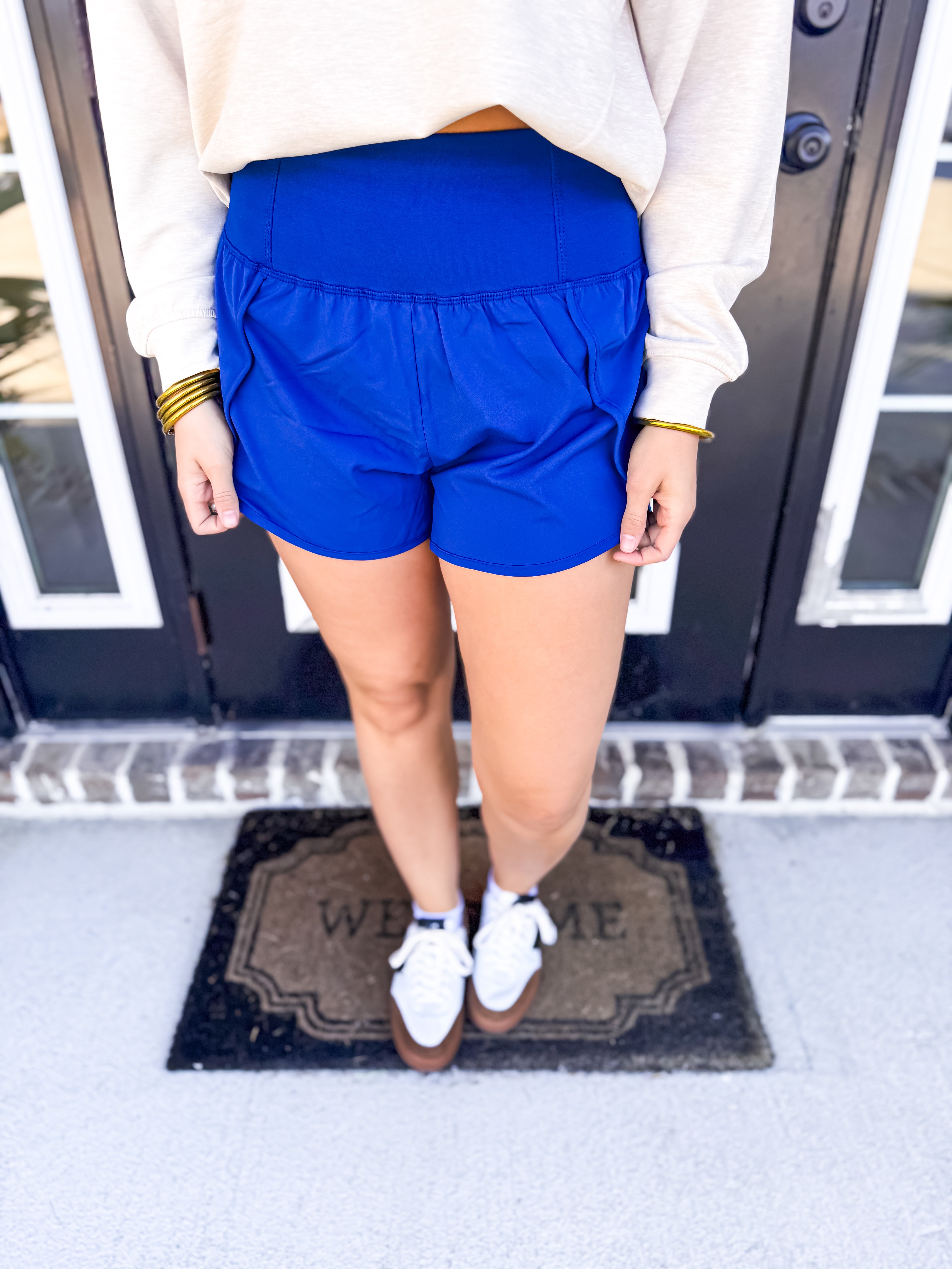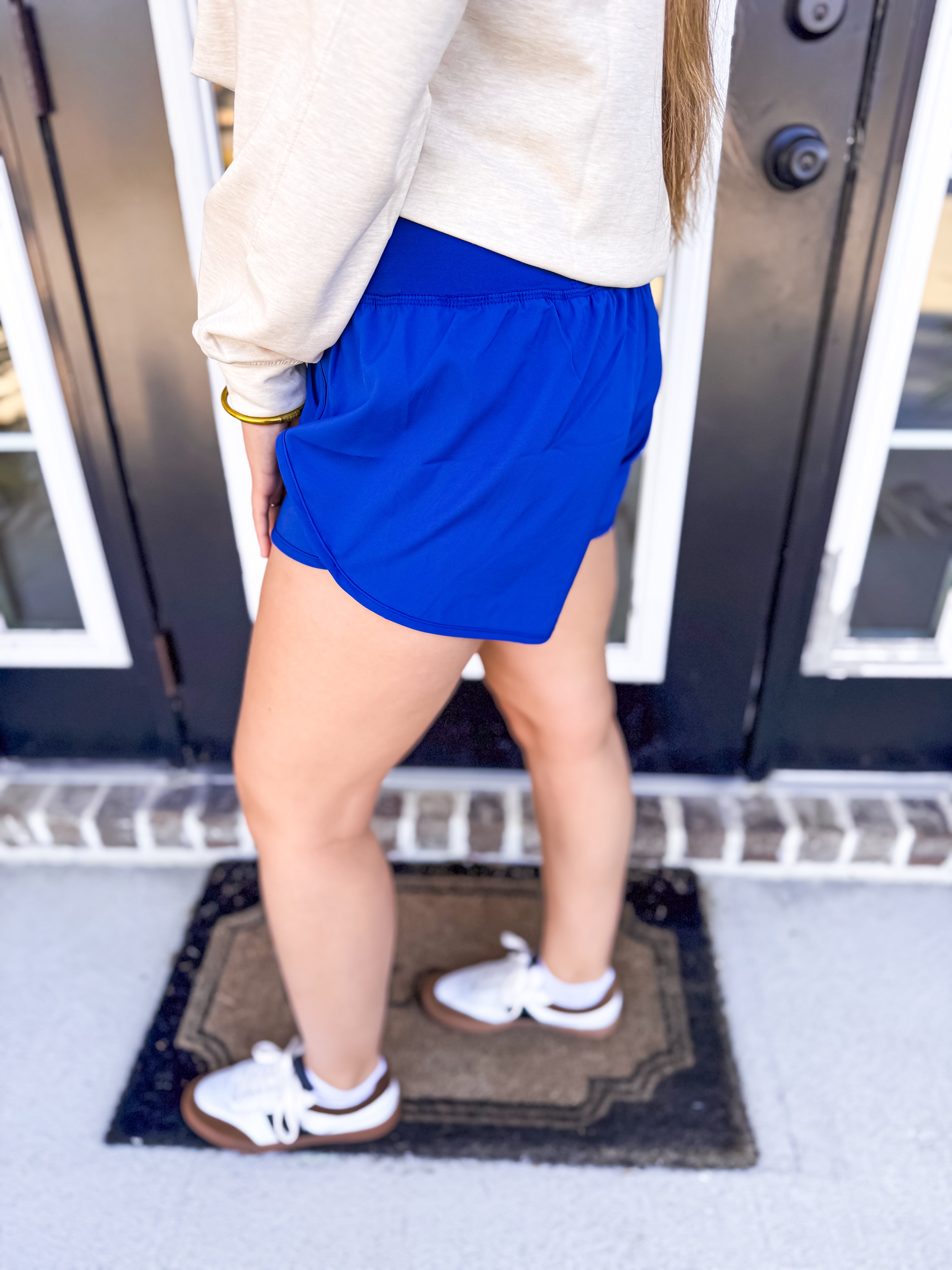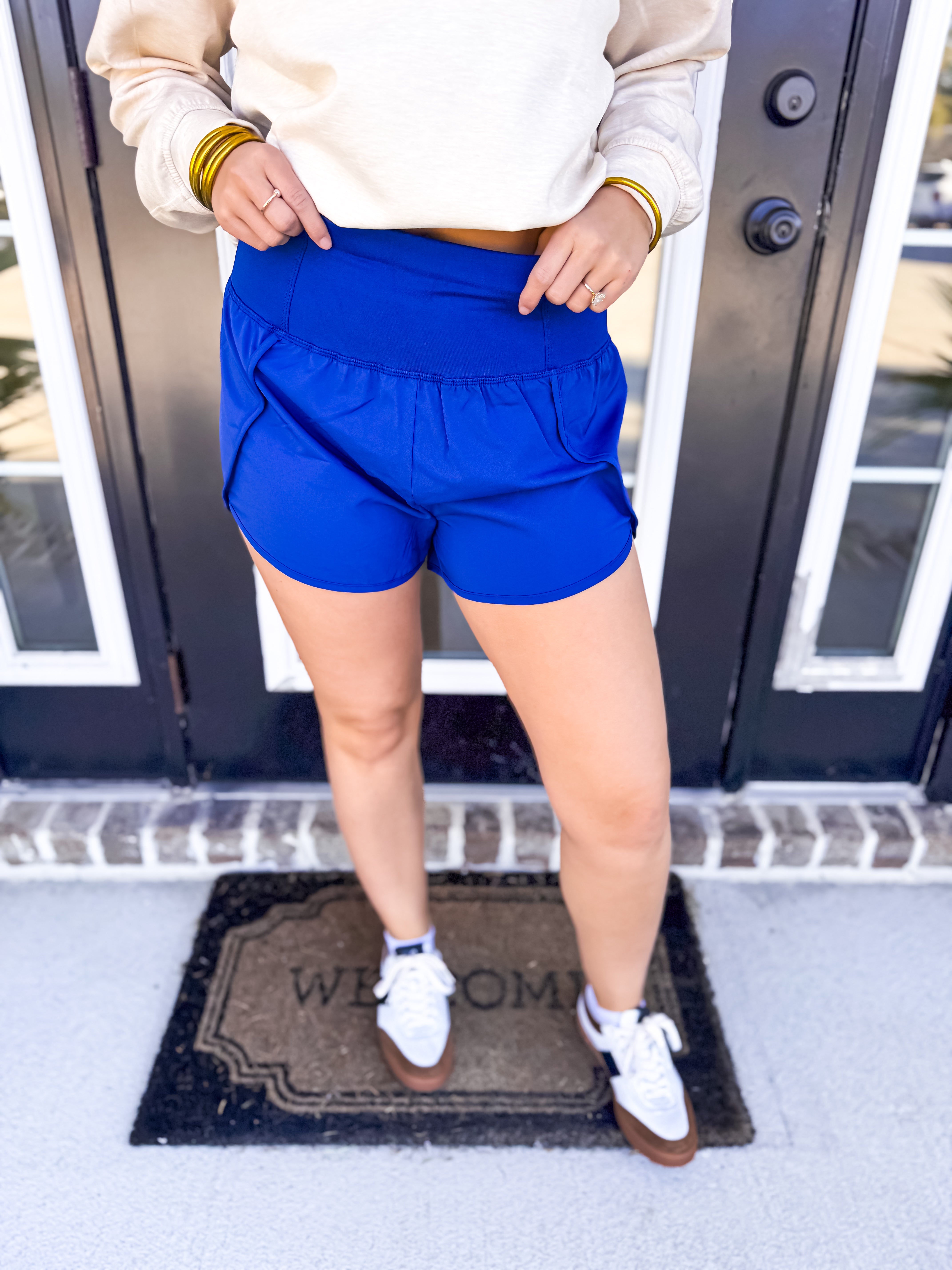 HIGH WAISTED ZIPPERED BACK POCKET RUNNING SHORTS
