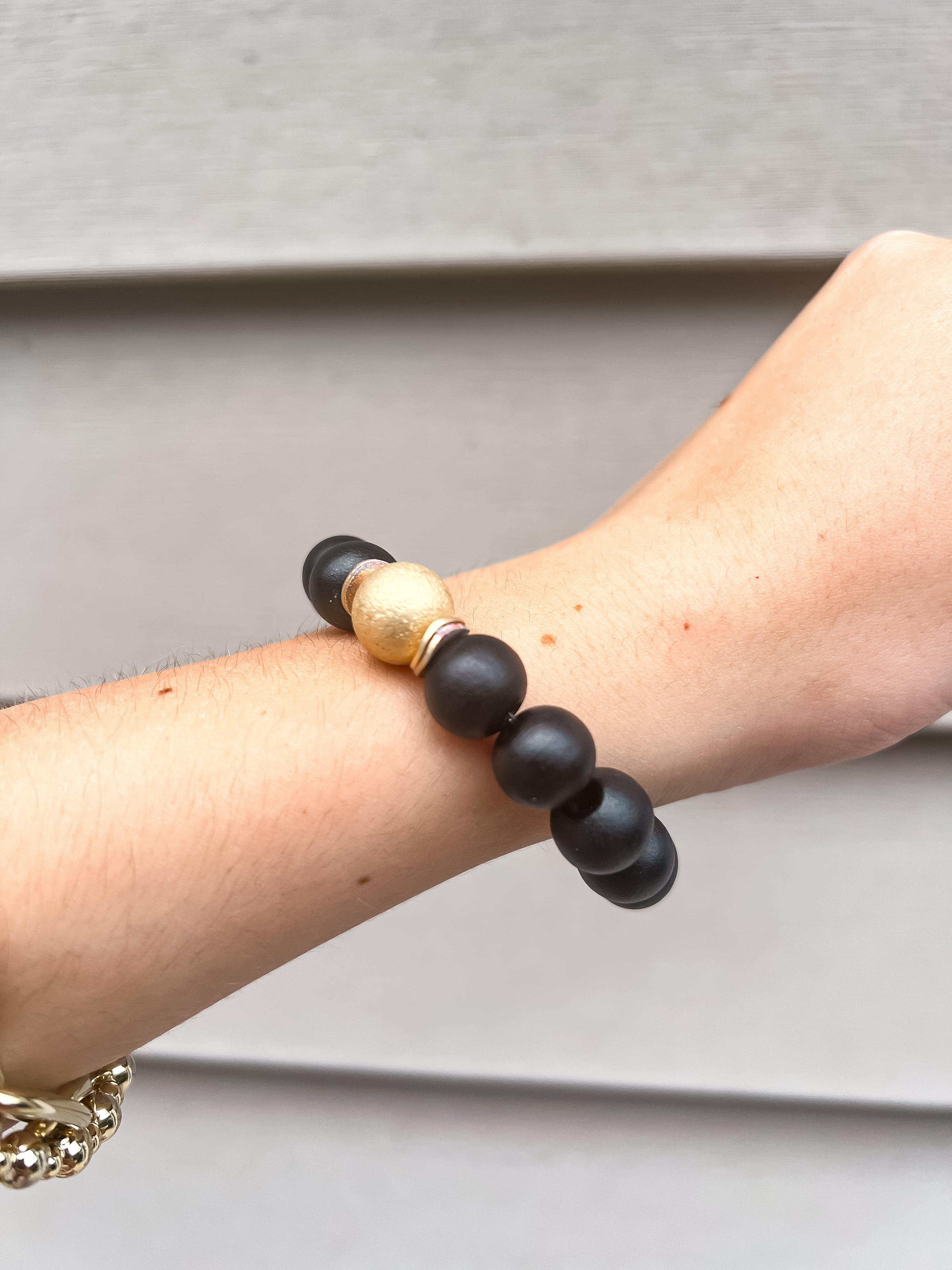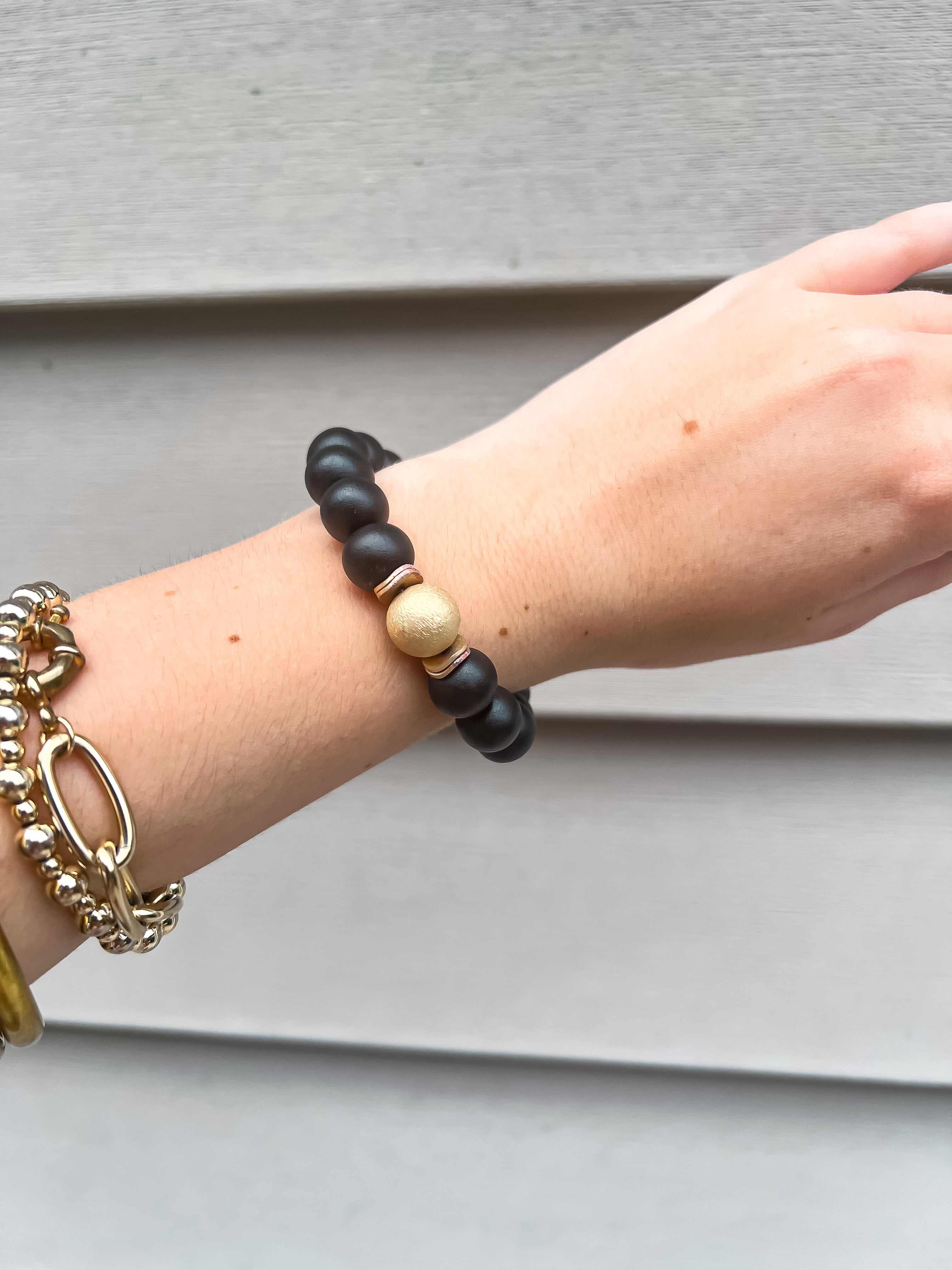 7" Stretch Wood Beaded Bracelets with Gold Accents