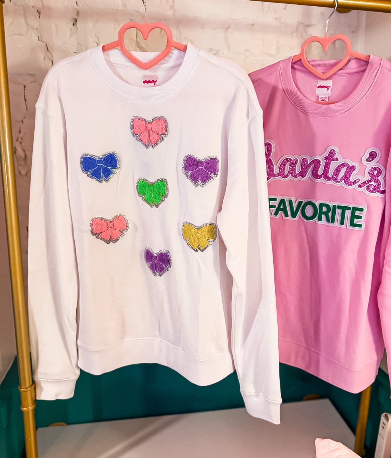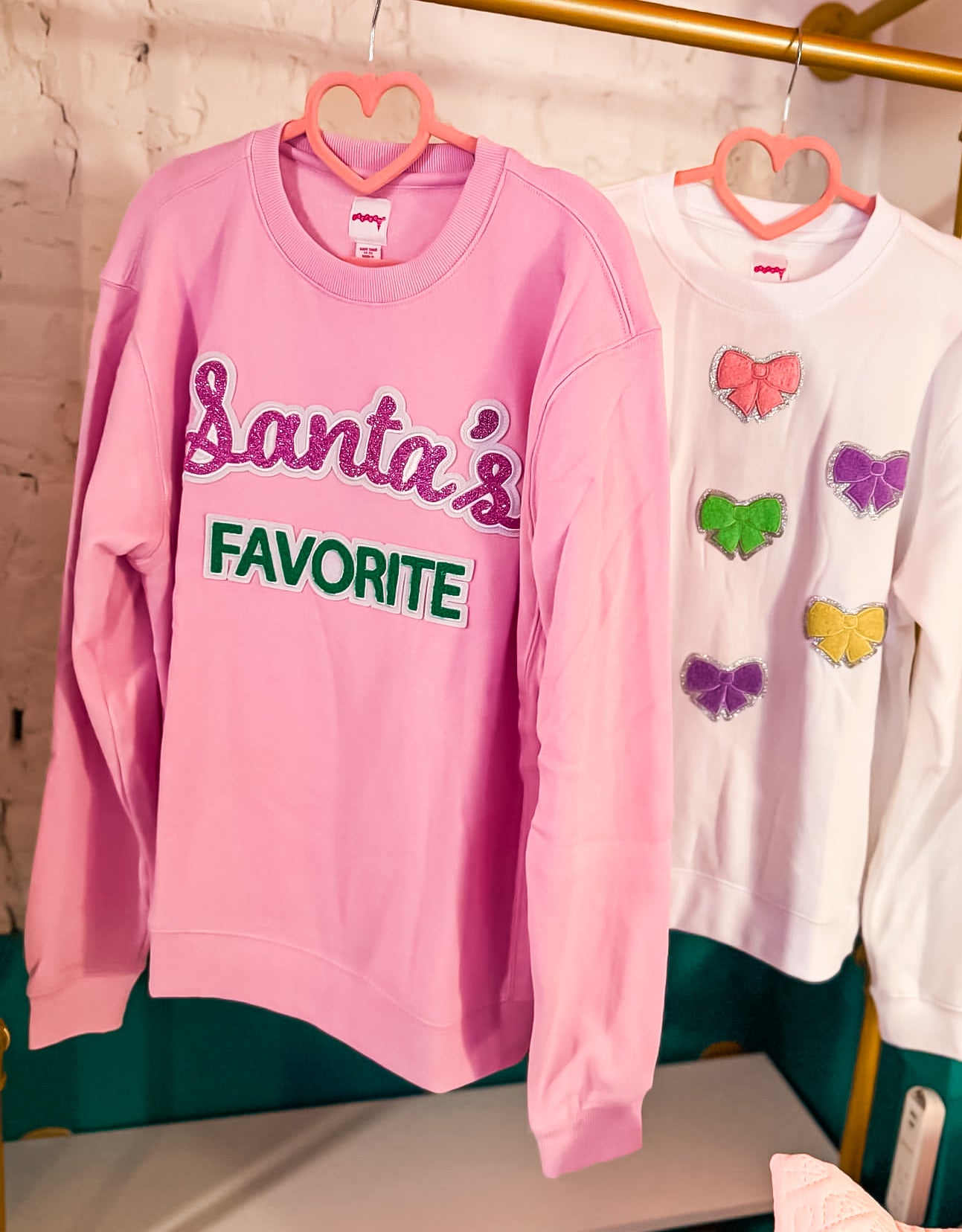 - "Santa's Favorite" block-letter chenille patches on the front