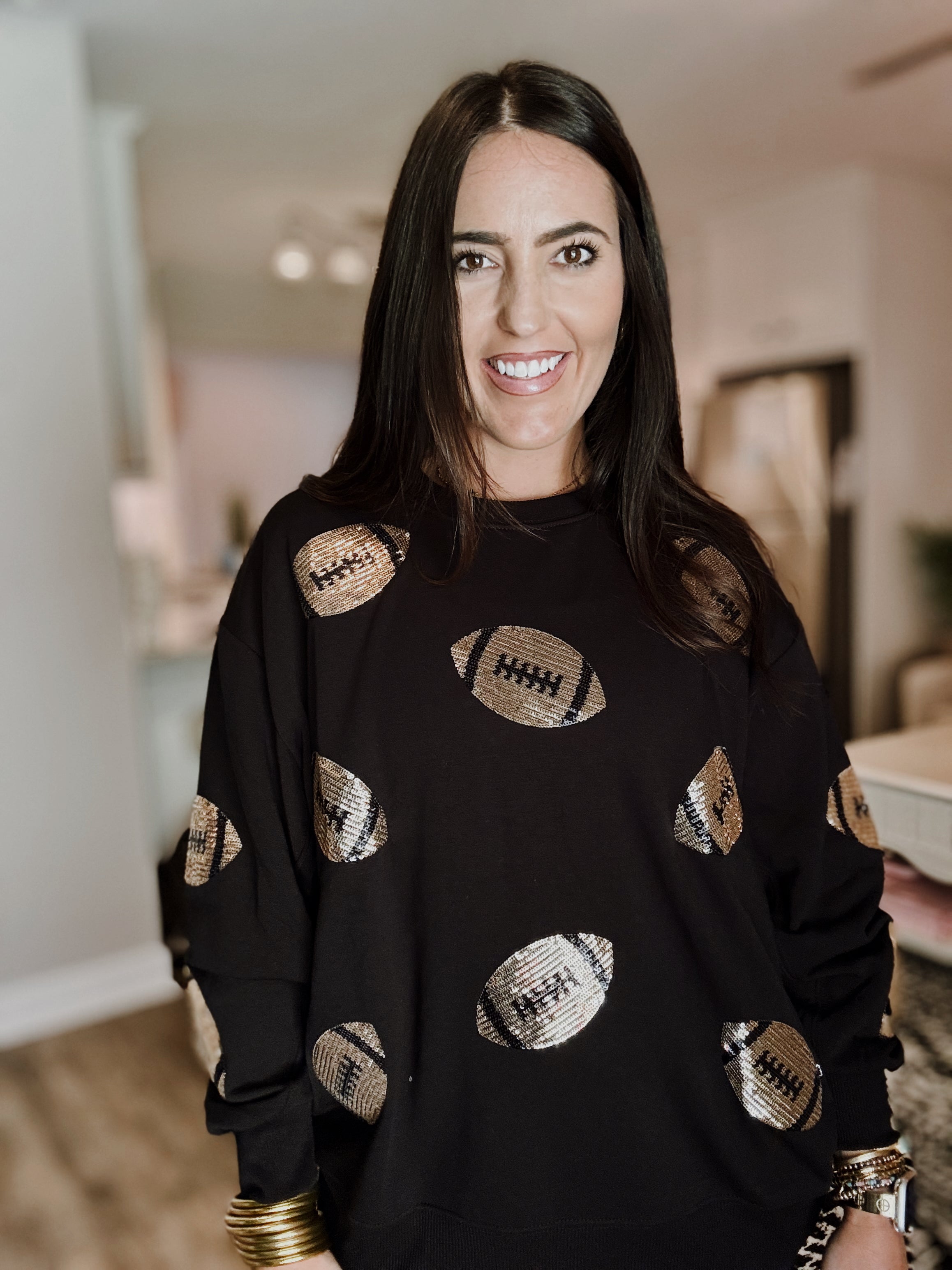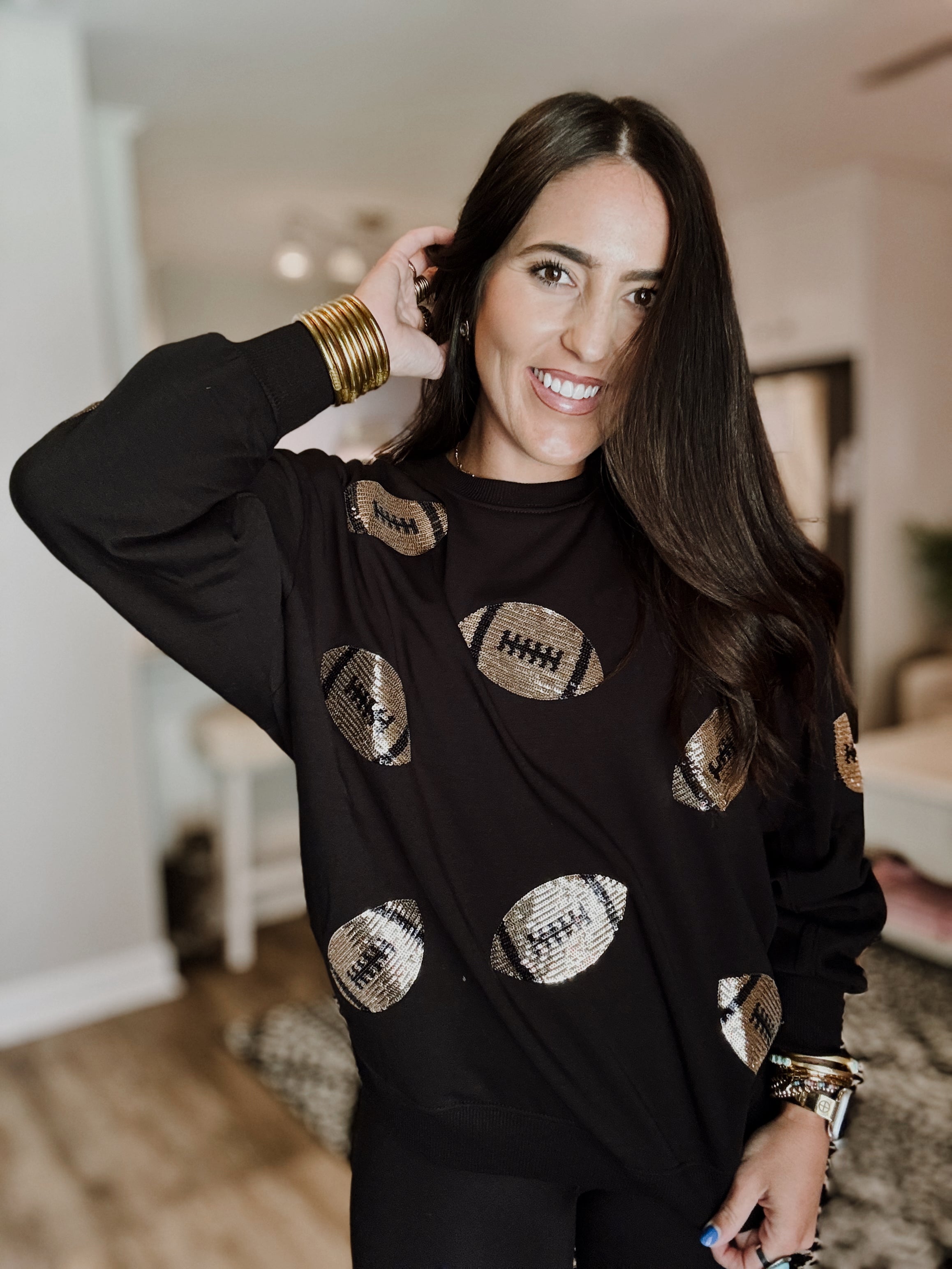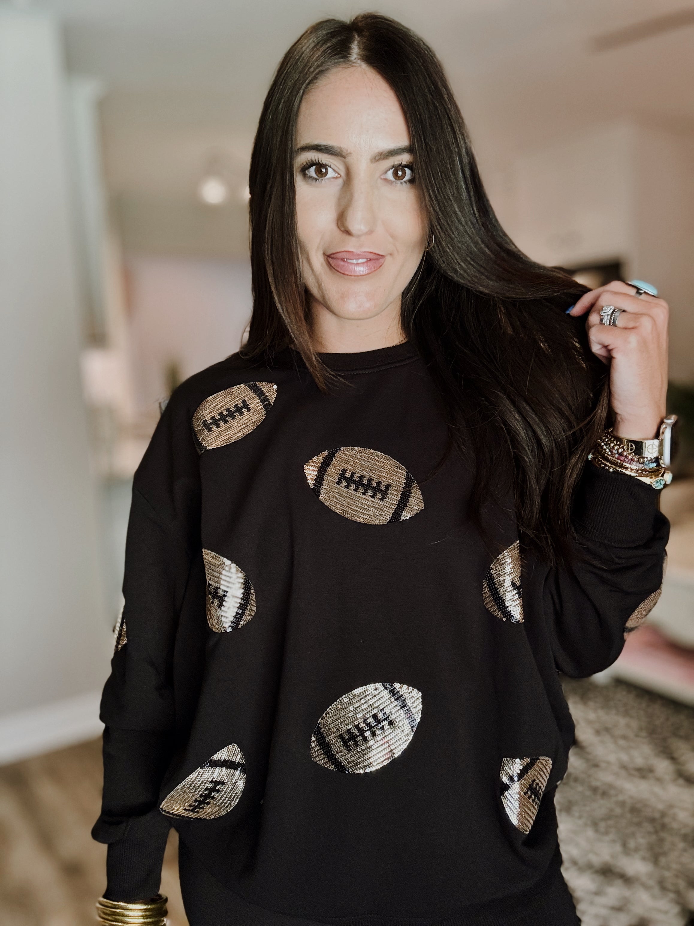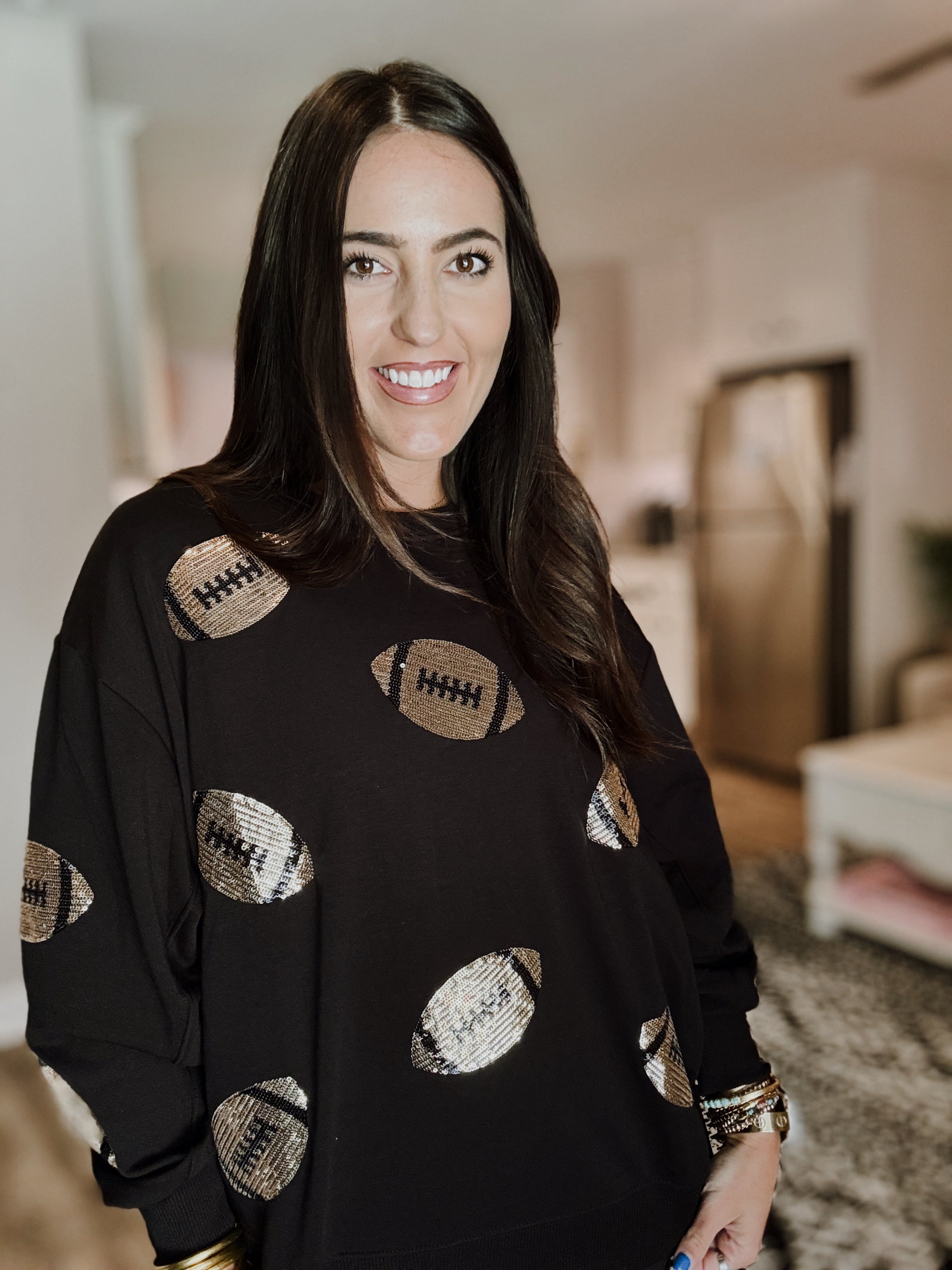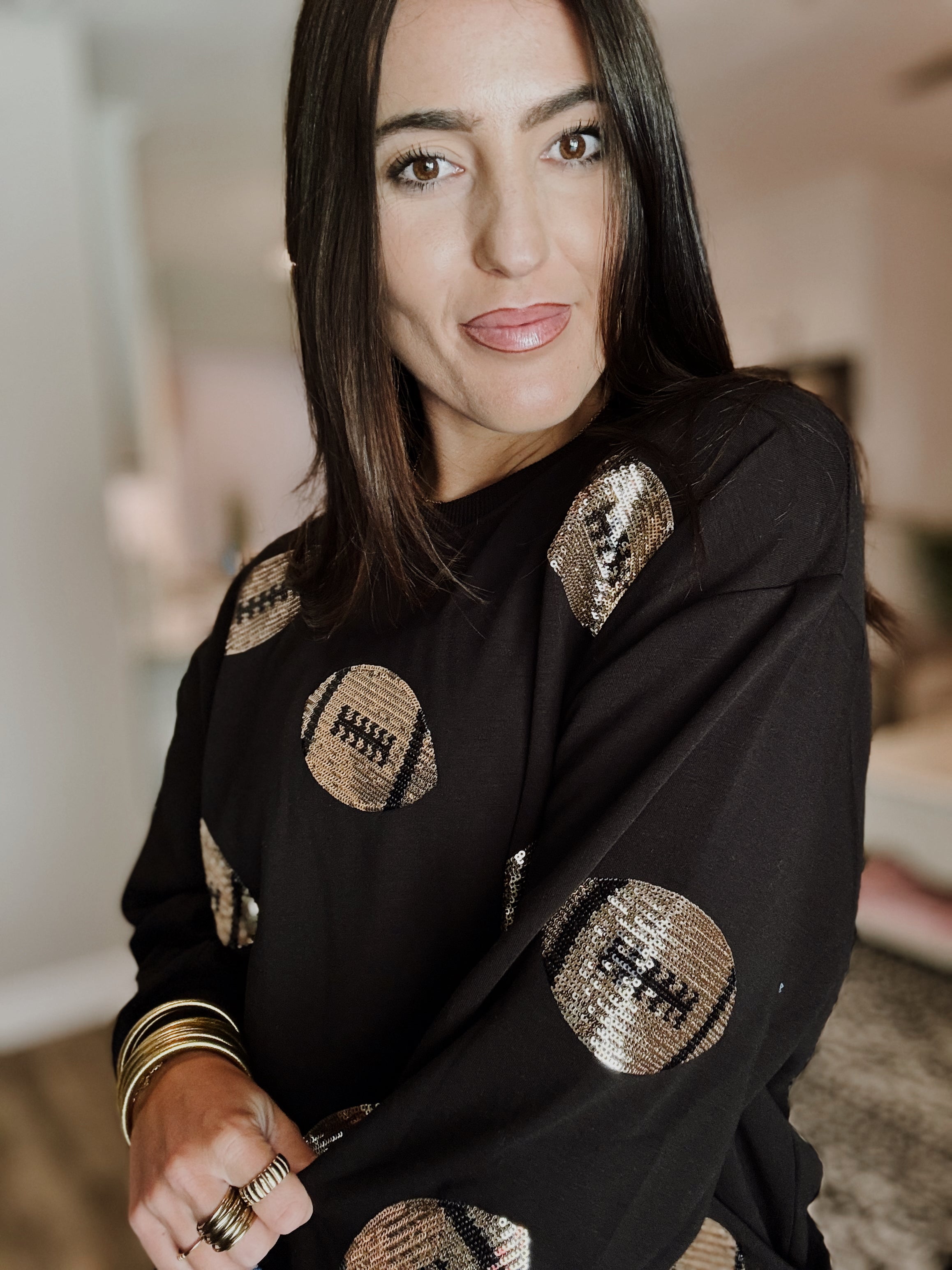 Sarah Sequin Football Sweatshirt - Black