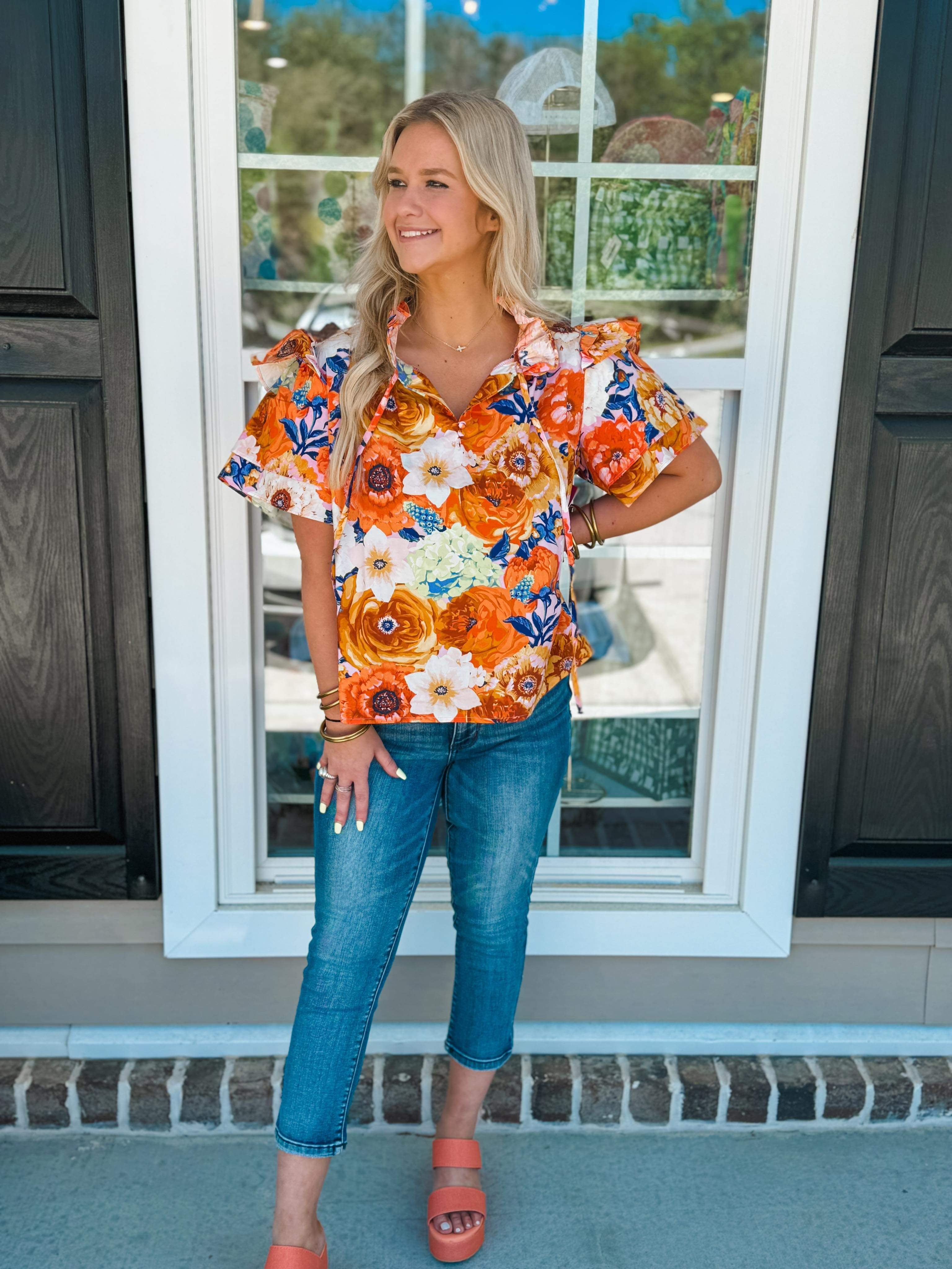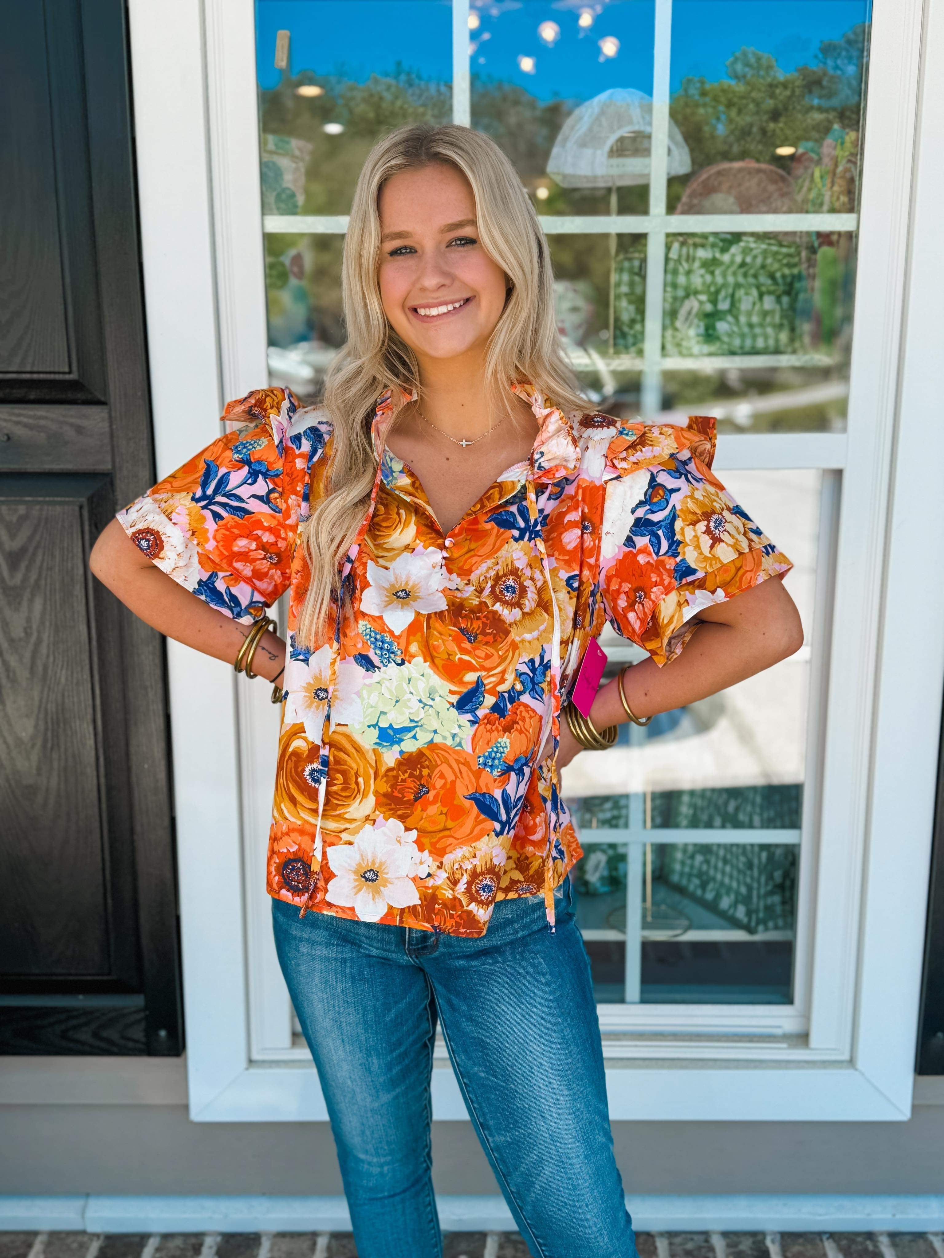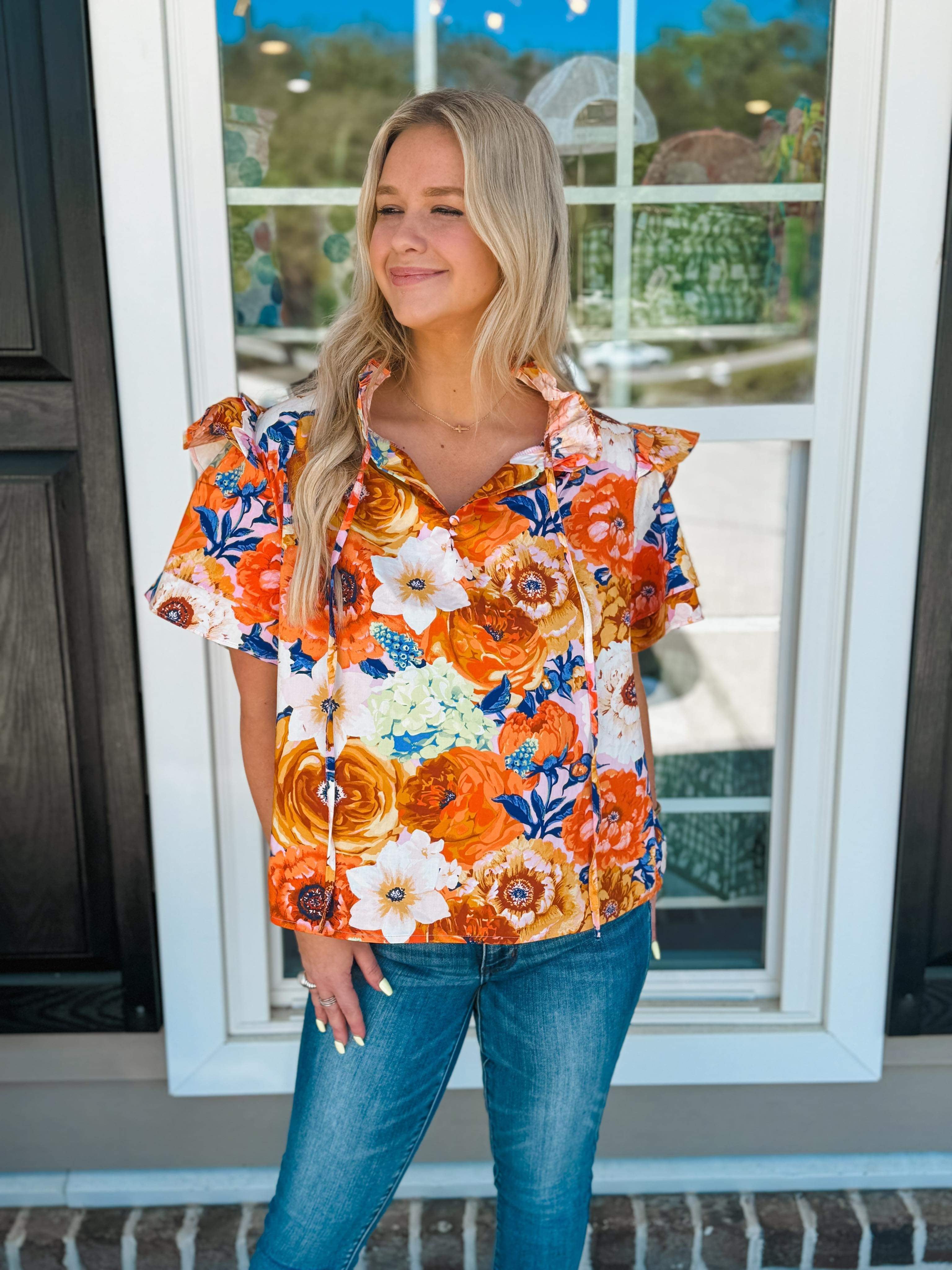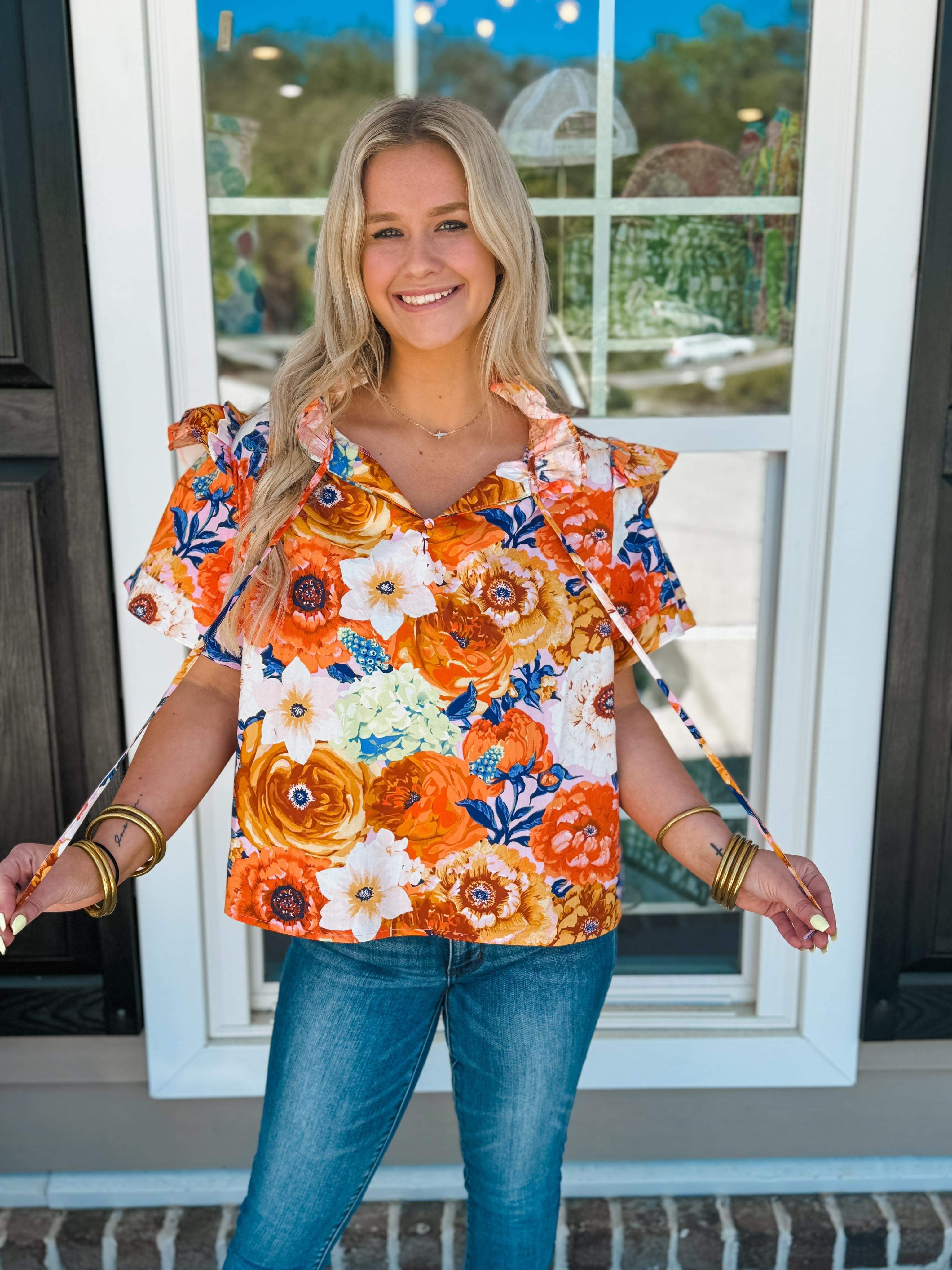 Adding a little flair to our easy going silhouettes has never looked better! Our Shauna Top is the perfect piece for your closet! She features a loose fitting silhouette, ruffle shoulder details, and neckties for an adjusted neckline! Pair her with your favorite pants for a office look, or with shorts for a shopping day with your girls!