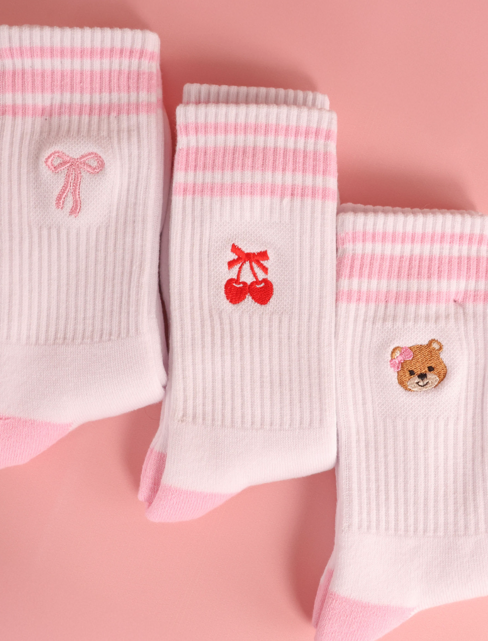 Simply | (8 STYLES) Embroidered Crew Socks - Final Sale