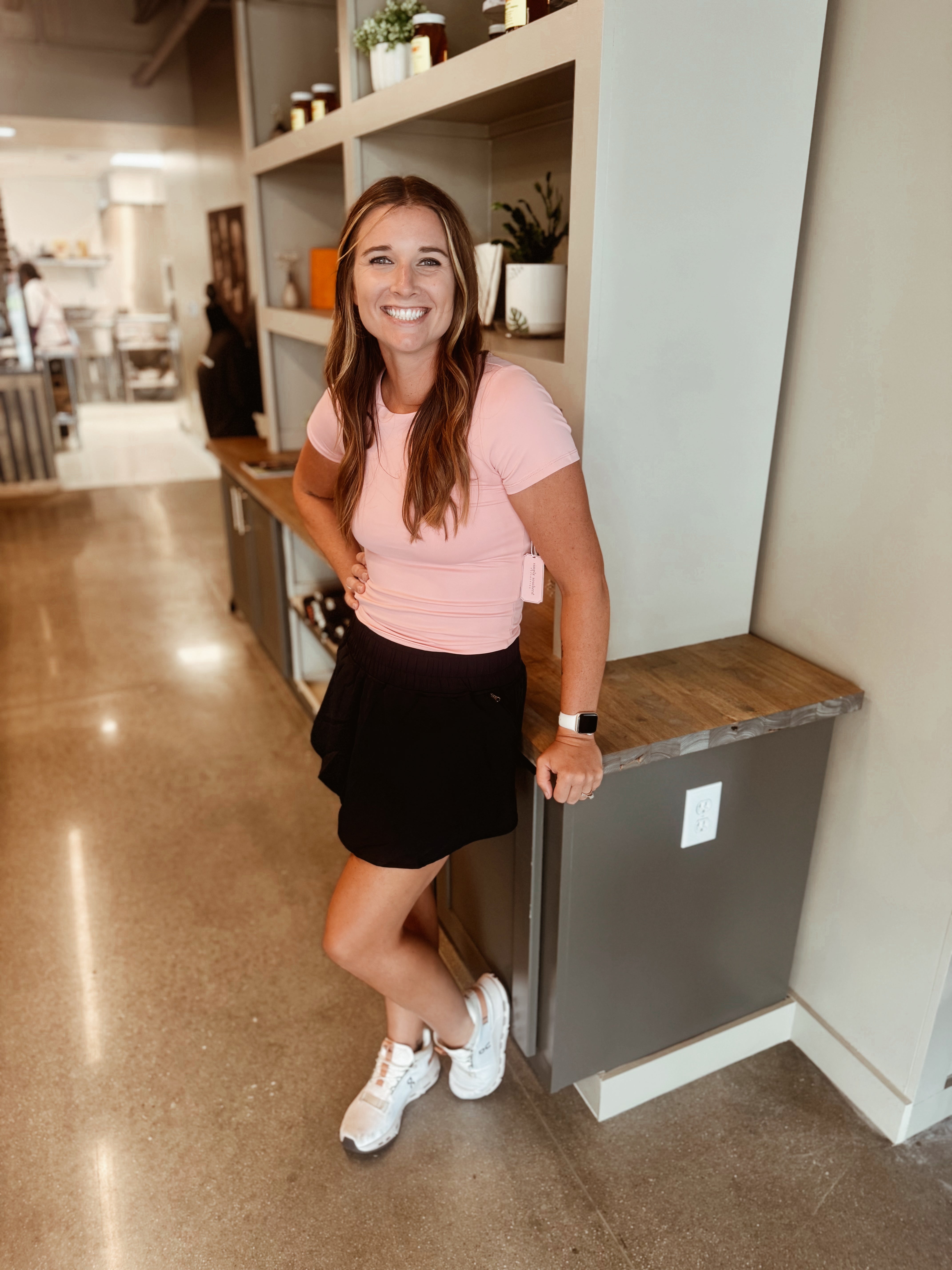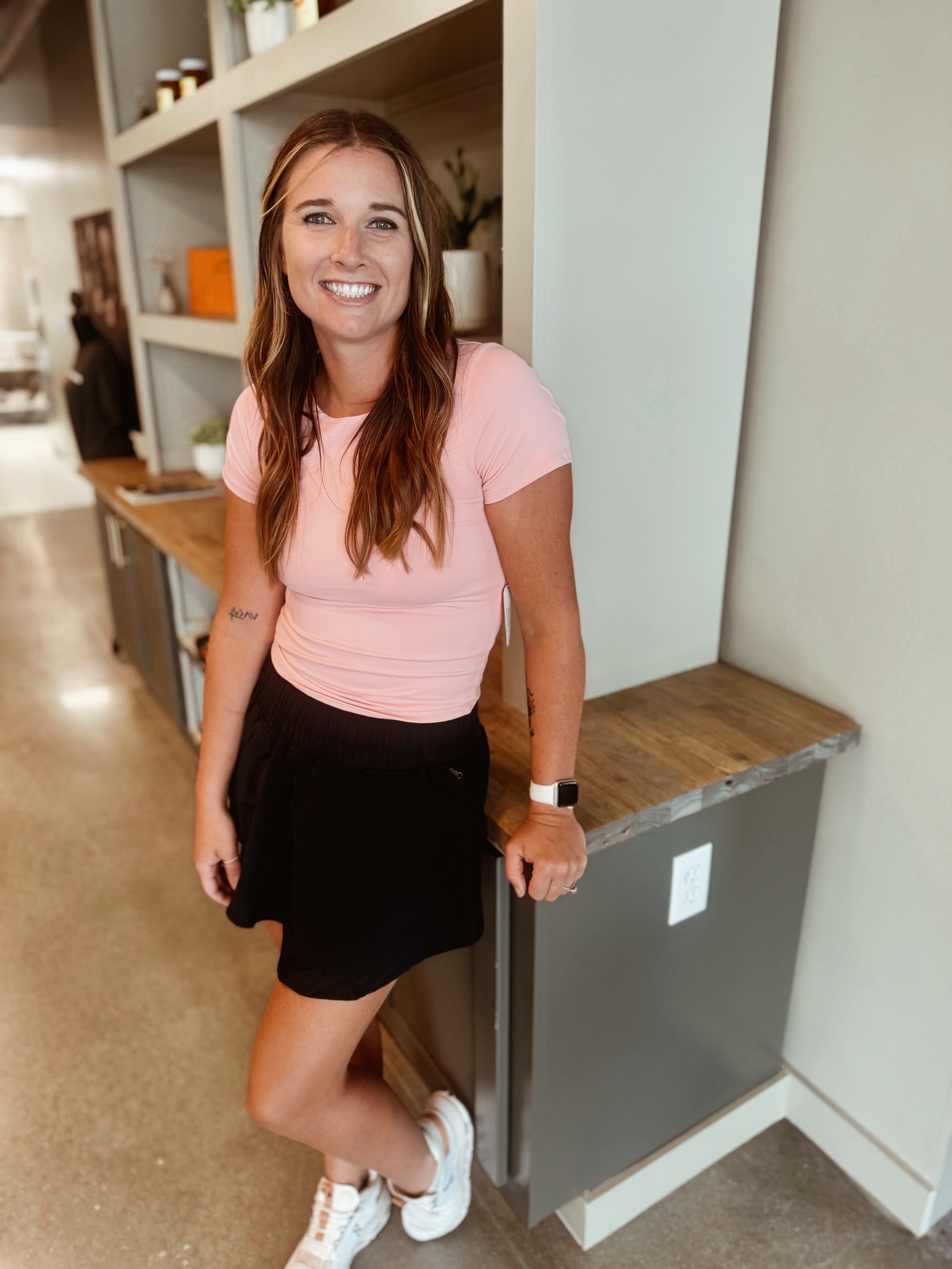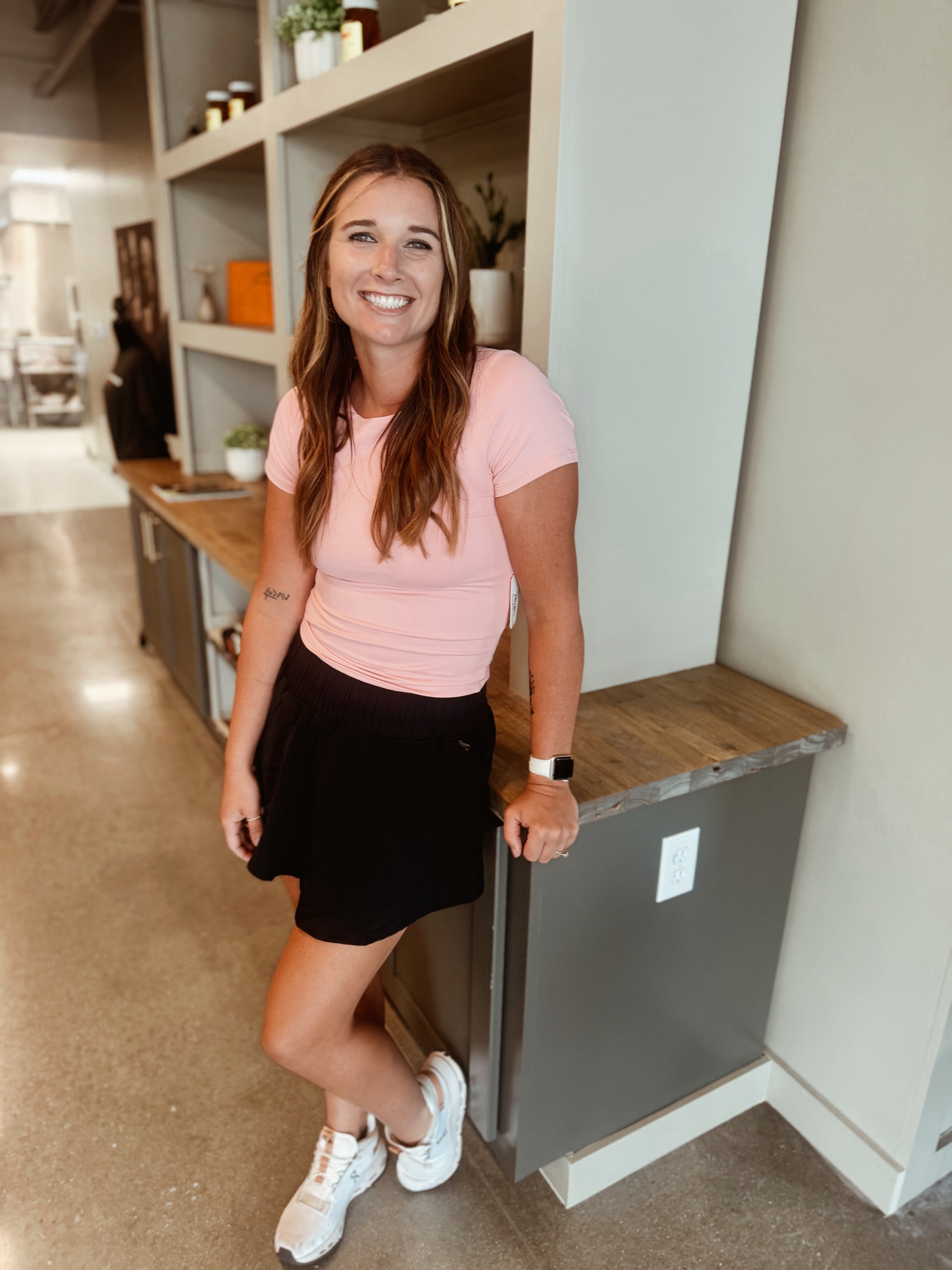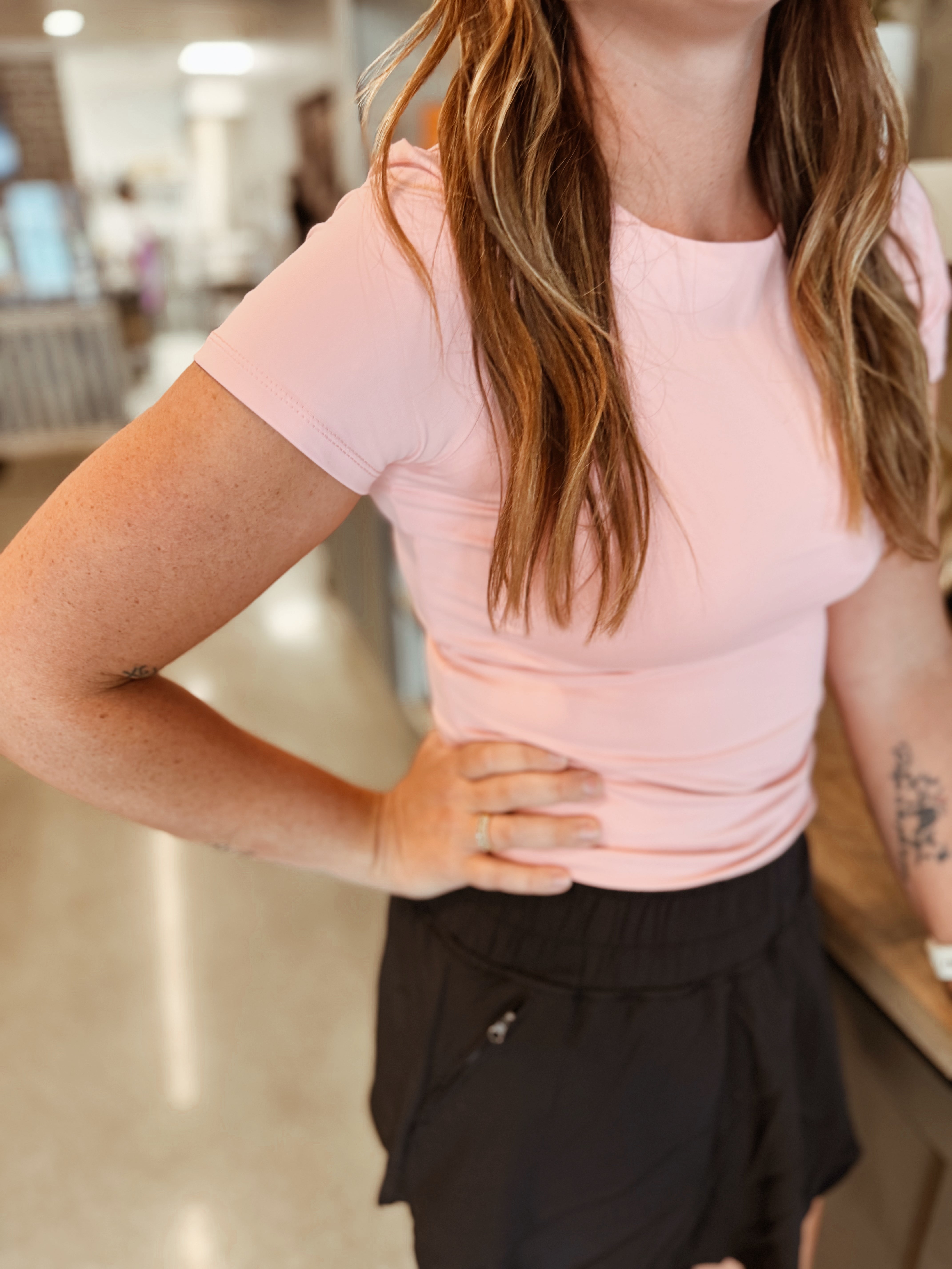 The double layer teeis the perfect blend of style and comfort, ideal for any activity from lounging at home to hitting the gym. Made of stretchy fabric, this tee provides a snug and supportive fit while allowing a full range of motion. Made of 80% nylon 20% elastane.