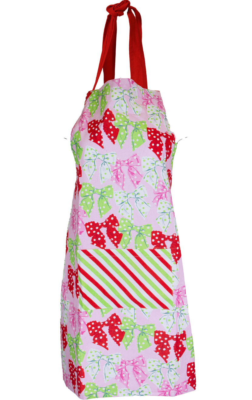 Spruce up your time baking and cooking with this apron. Featuring a fun design, front pocket, amd straps that tie around the back.