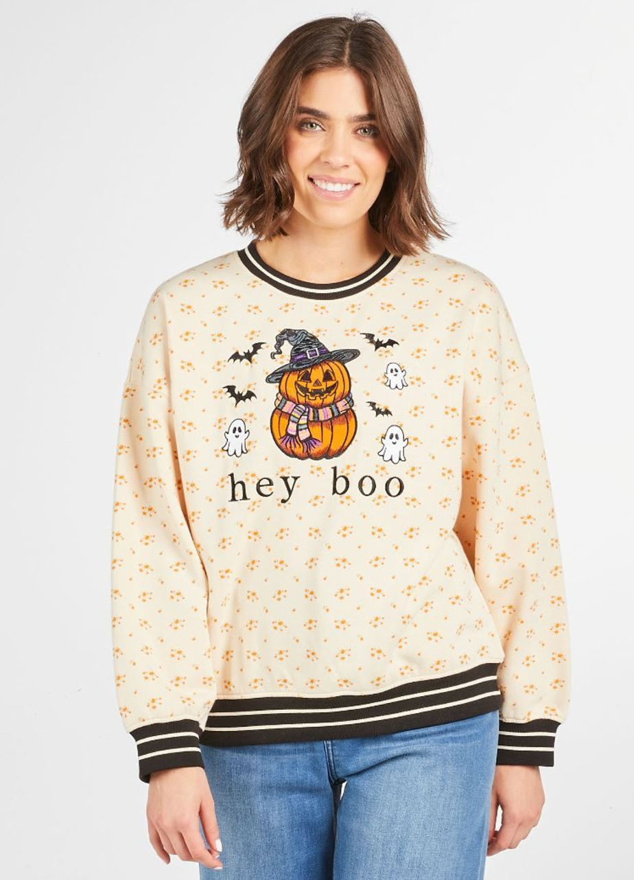 Simply | Pumpkin Varsity Crewneck Pullover - Final Sale